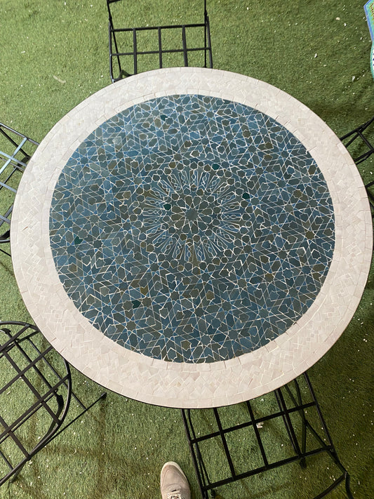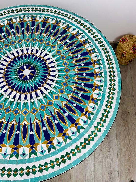 Handmade Moroccan Zellige Mosaic Table – Ocean-Inspired Beauty