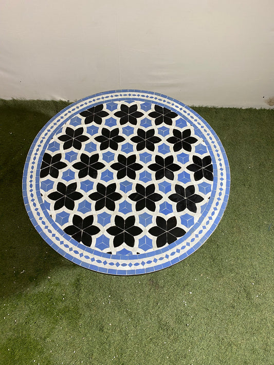 Handmade Moroccan Zellige Mosaic Table – Timeless Black & Blue Floral Design