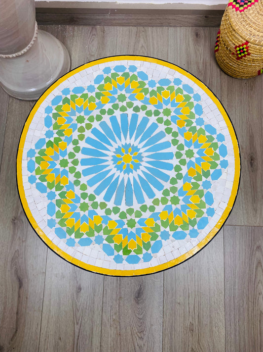 Handmade Moroccan Zellige Mosaic Side Table – Sunburst Charm