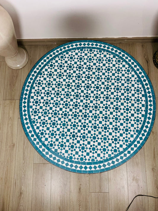 Handmade Moroccan Zellige Mosaic Table – Classic Turquoise Elegance