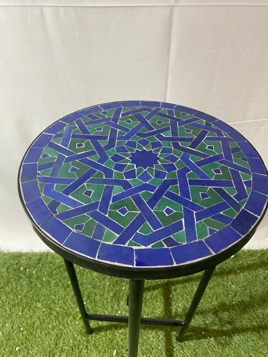 Handmade Moroccan Zellige Mosaic Table – Classic Blue & Green Star Pattern