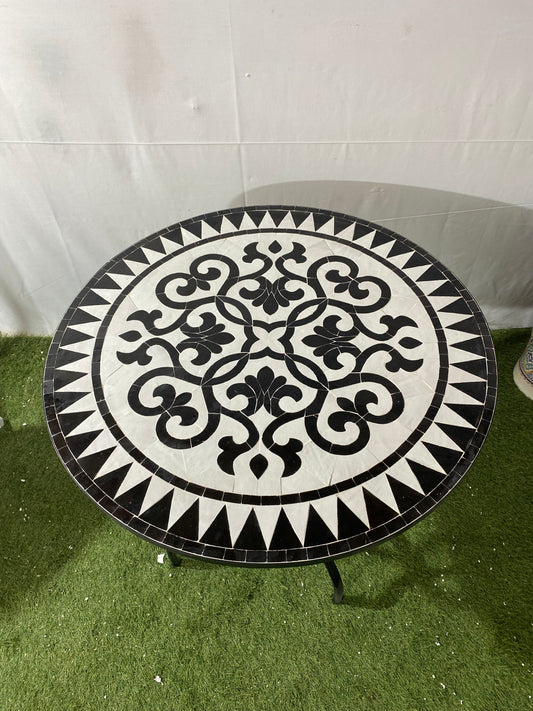 Elegant Black & White Moroccan Zellige Mosaic Table