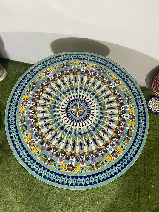 Handmade Moroccan Zellige Mosaic Table – Elegant Blue & Green Starburst Design