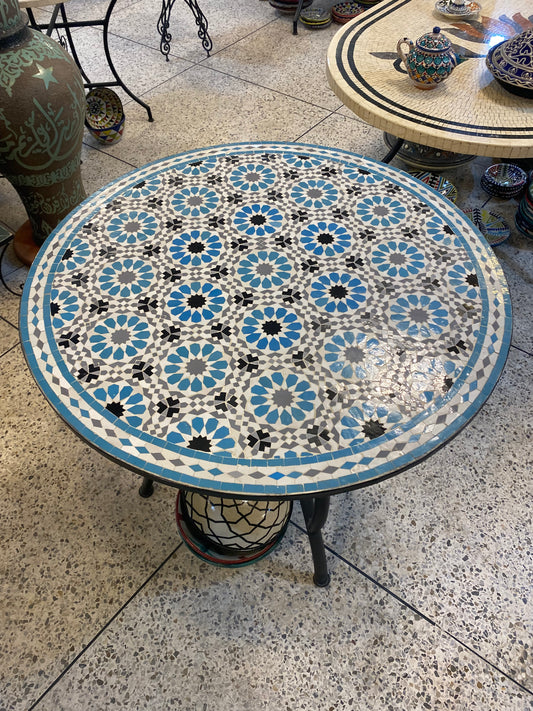 Handmade Moroccan Zellige Mosaic Table – Elegant Blue & White Geometric Design