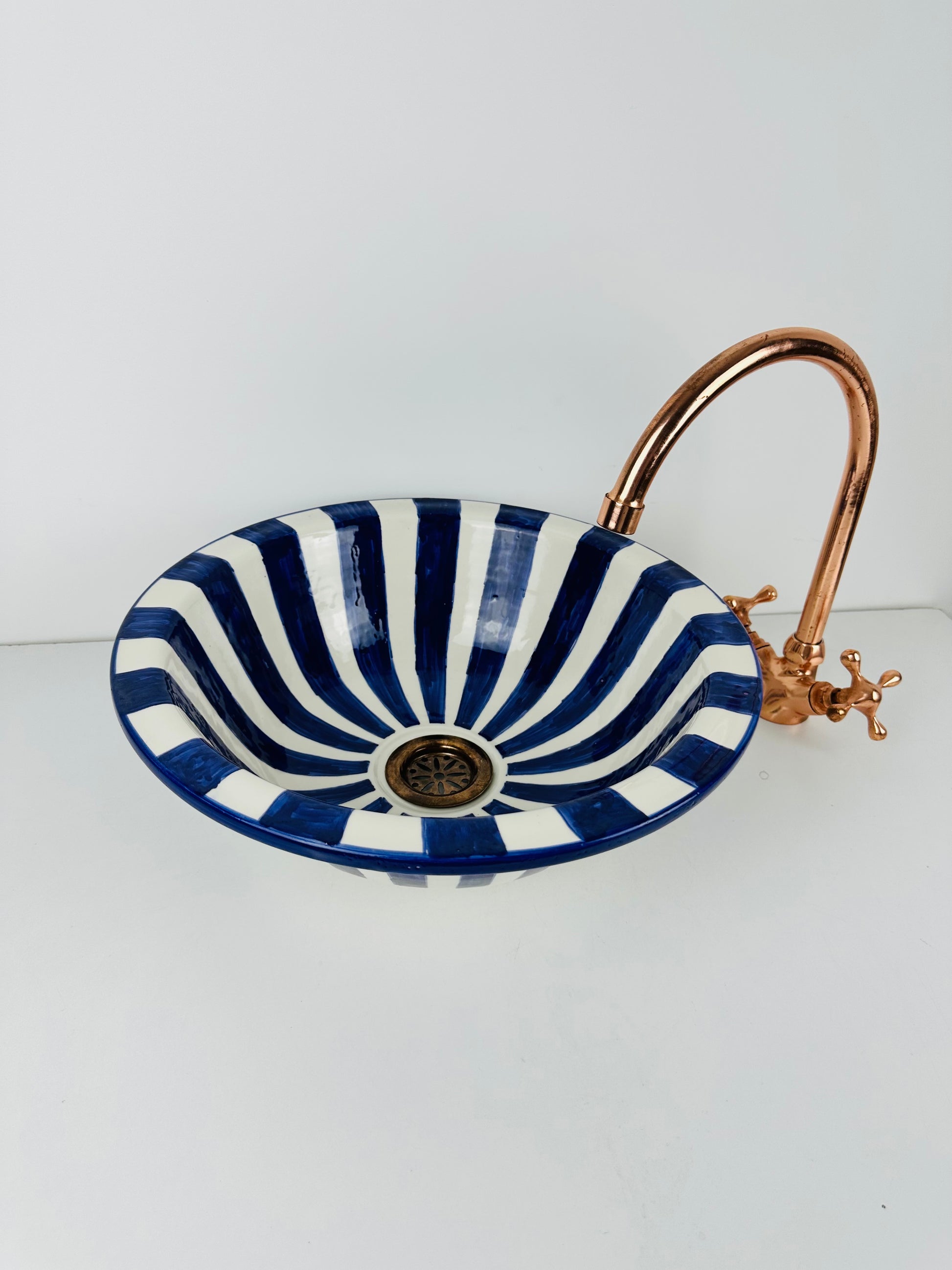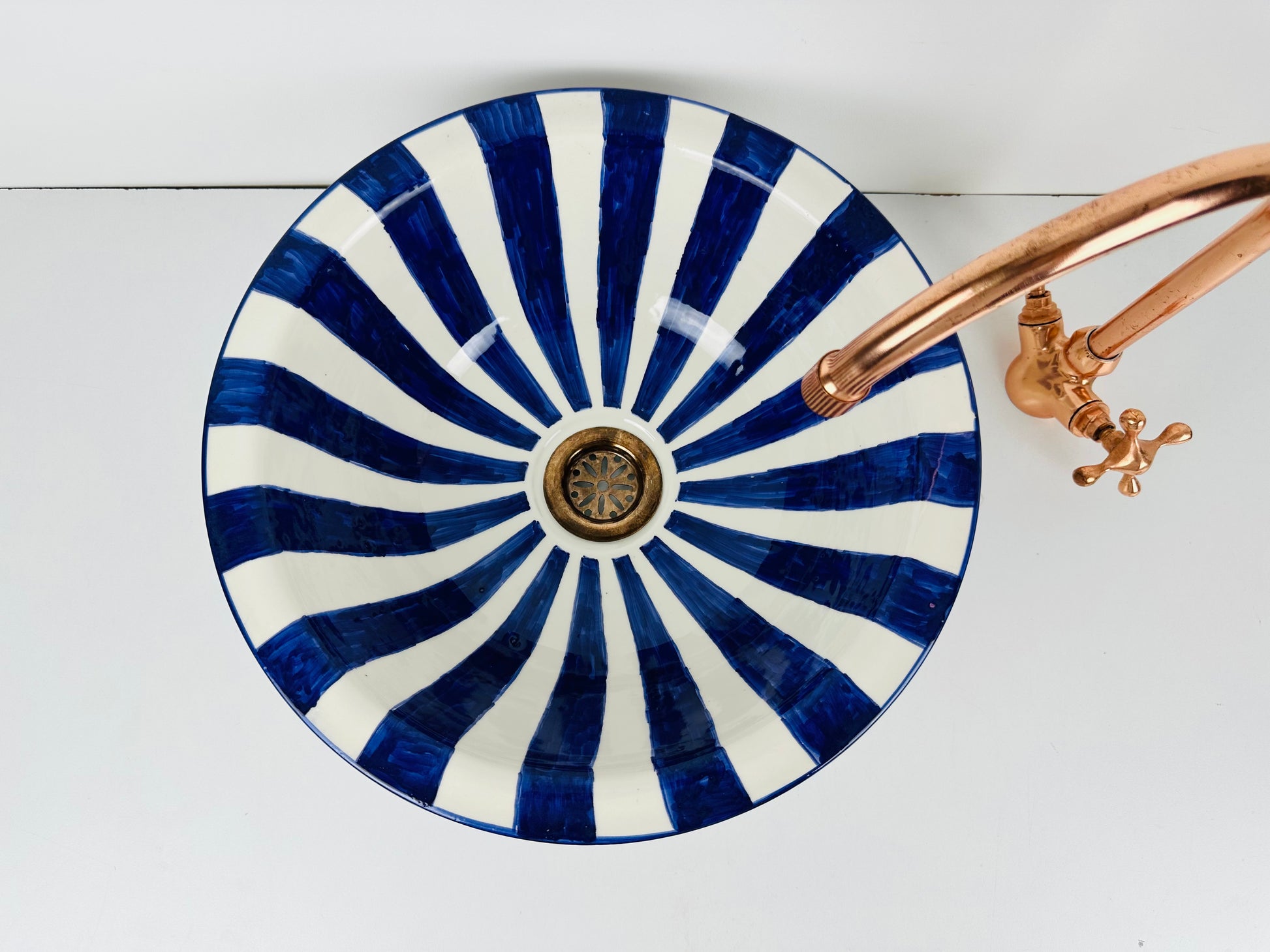 Barcode Blue: Handcrafted Ceramic Sink with Barcode-Inspired Design in Blue