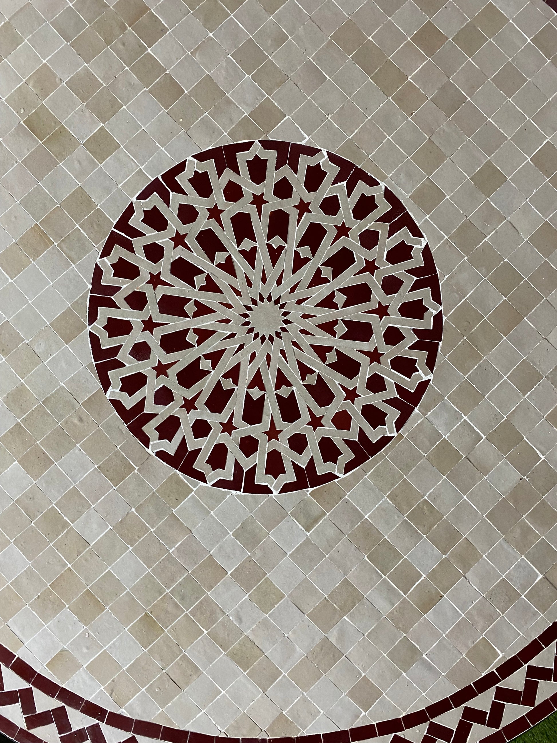 - TABLES : Mosaic, tiles, Clay, Iron, legs cap, metal base.