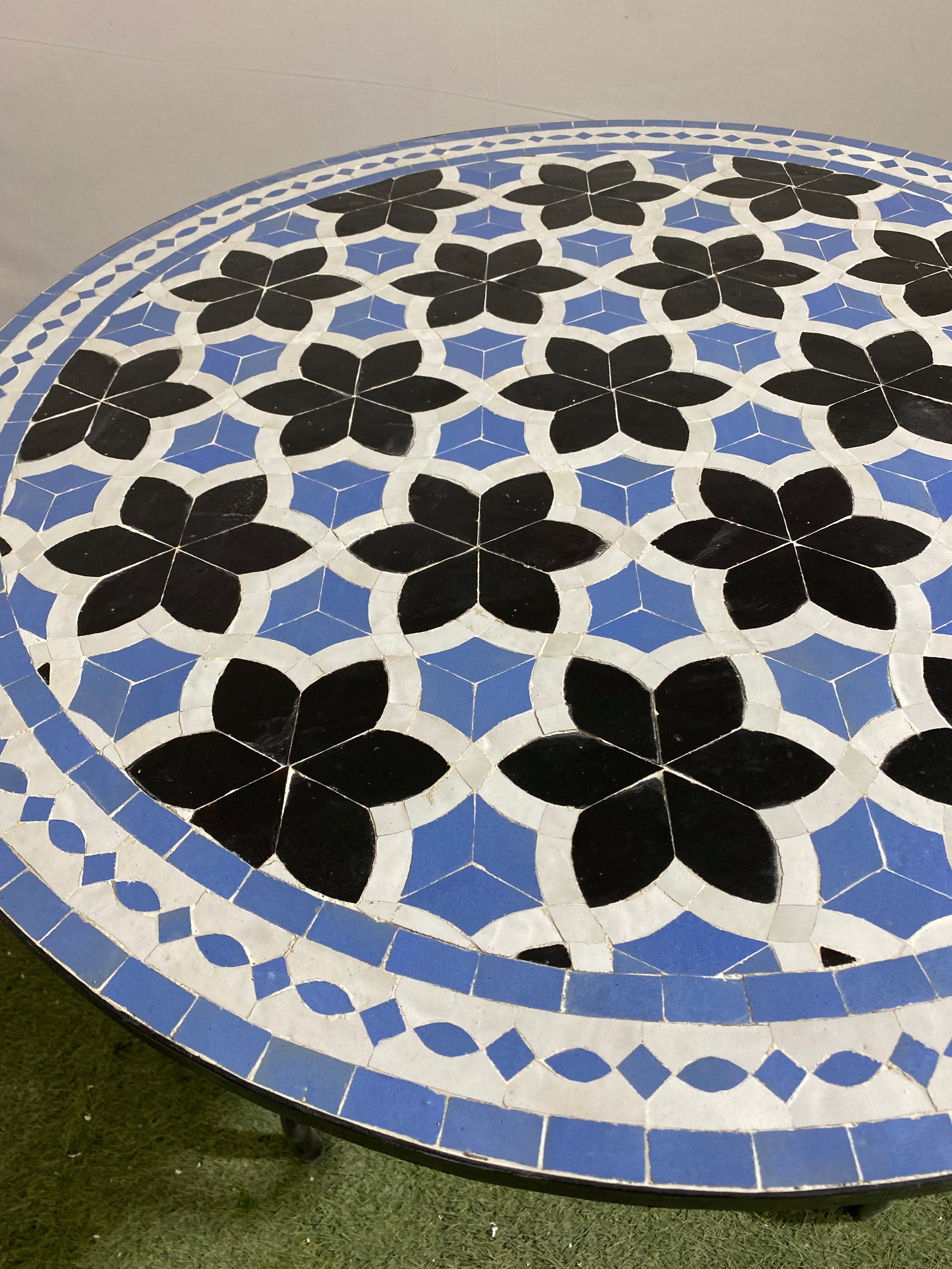 Handmade Moroccan Zellige Mosaic Table – Timeless Black & Blue Floral Design