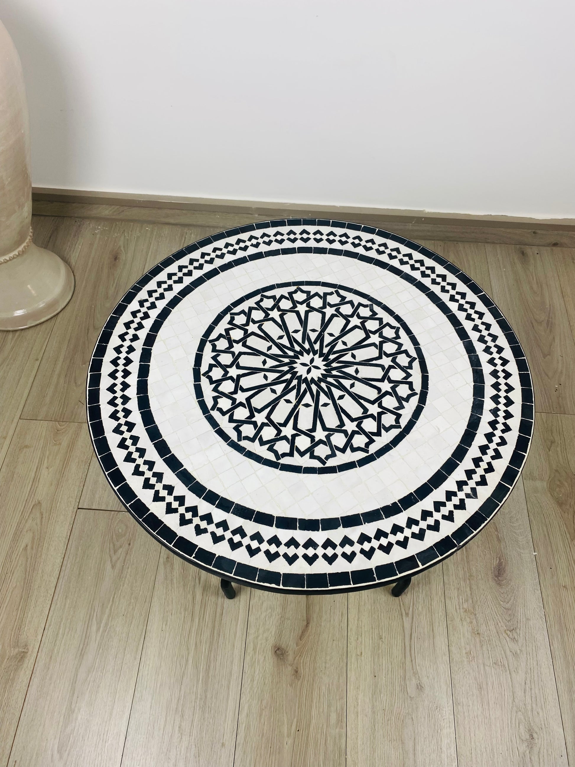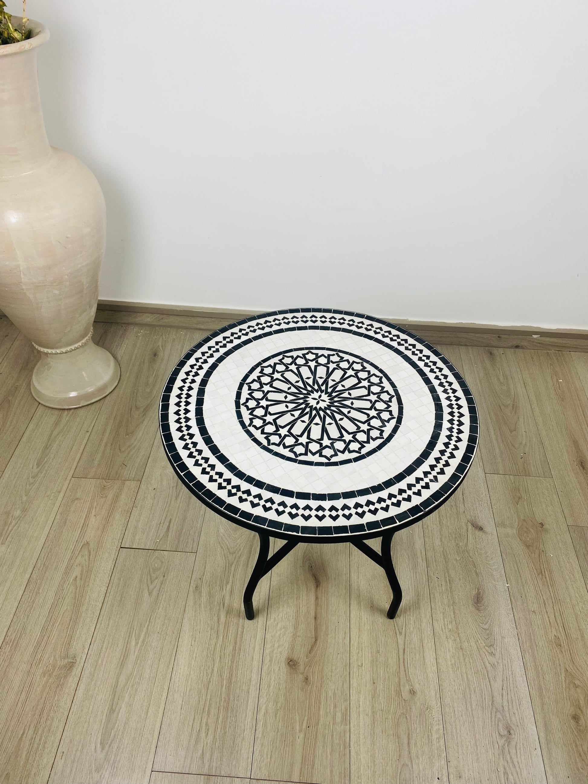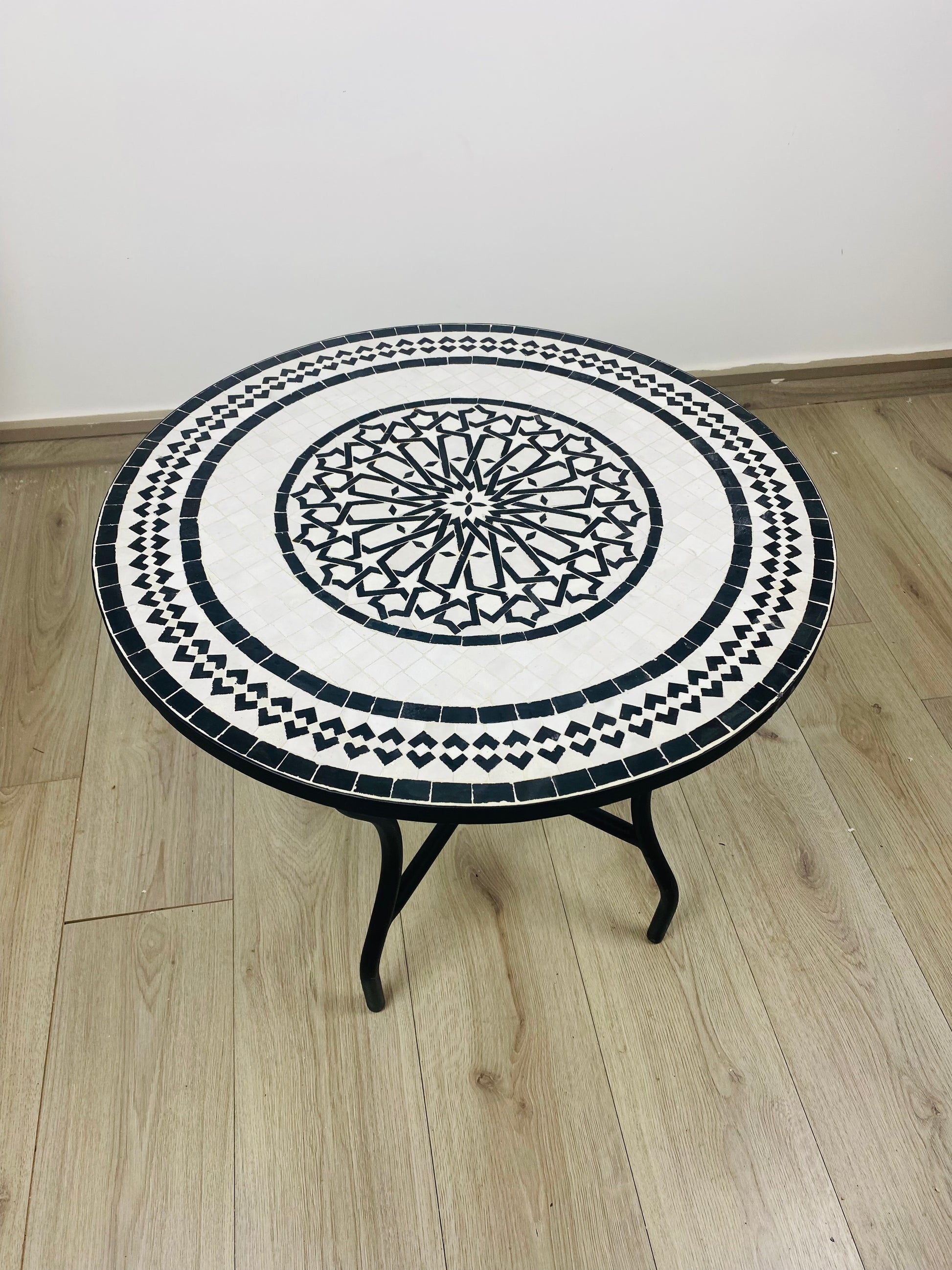 Handmade Moroccan Zellige Mosaic Table – Black & White Elegance