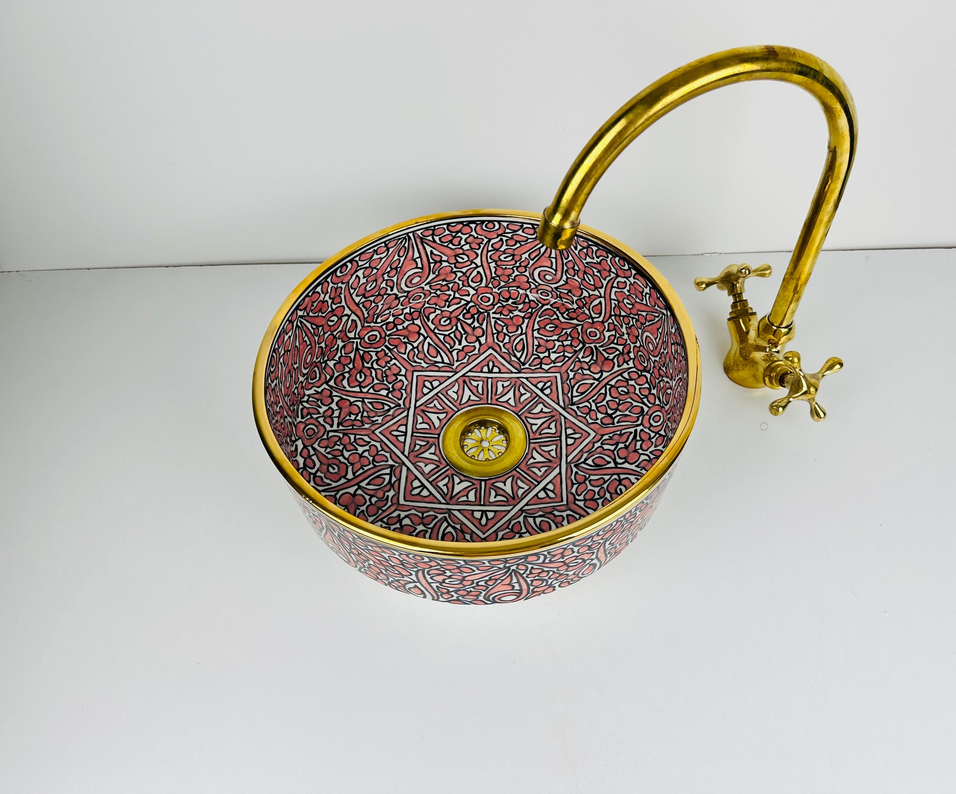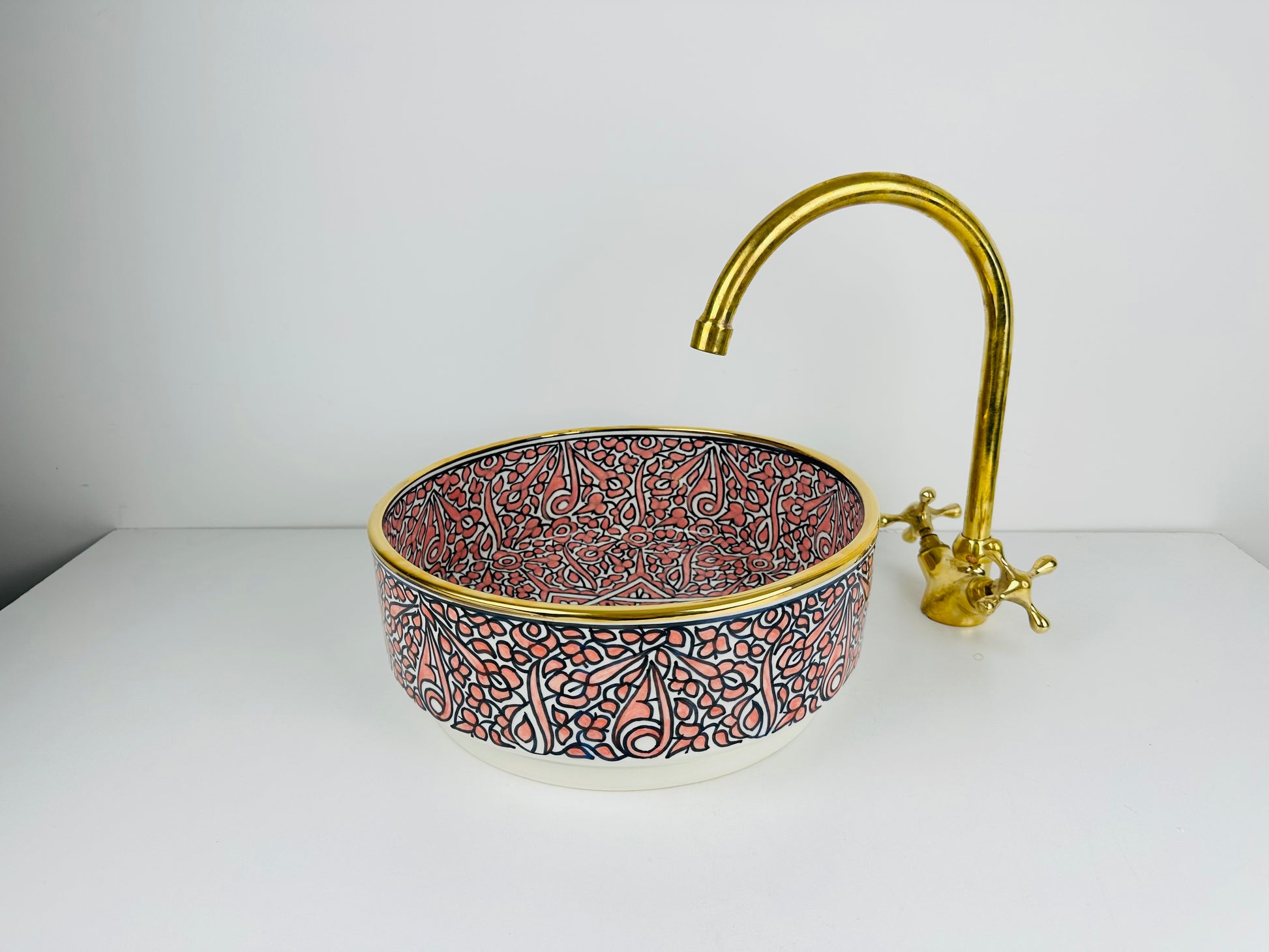 14K gold Peachy Perfection: Handcrafted Ceramic Sink in Peach Color