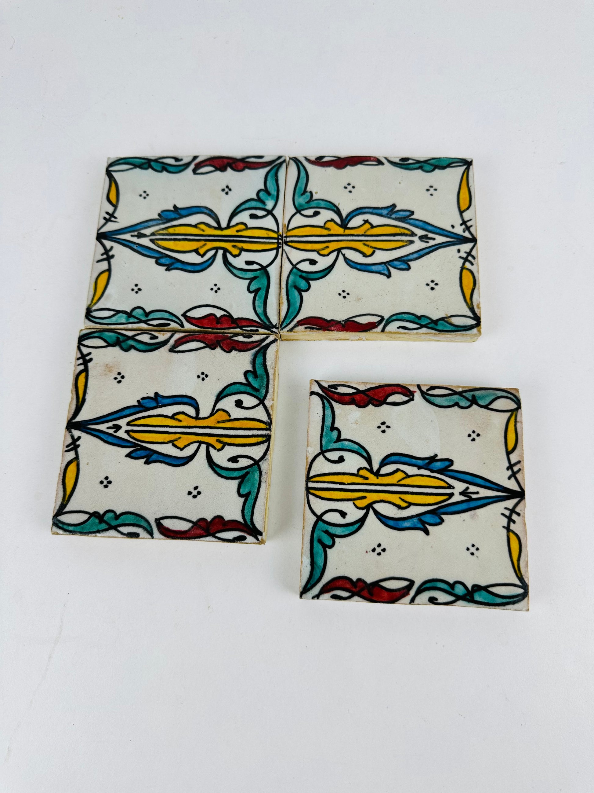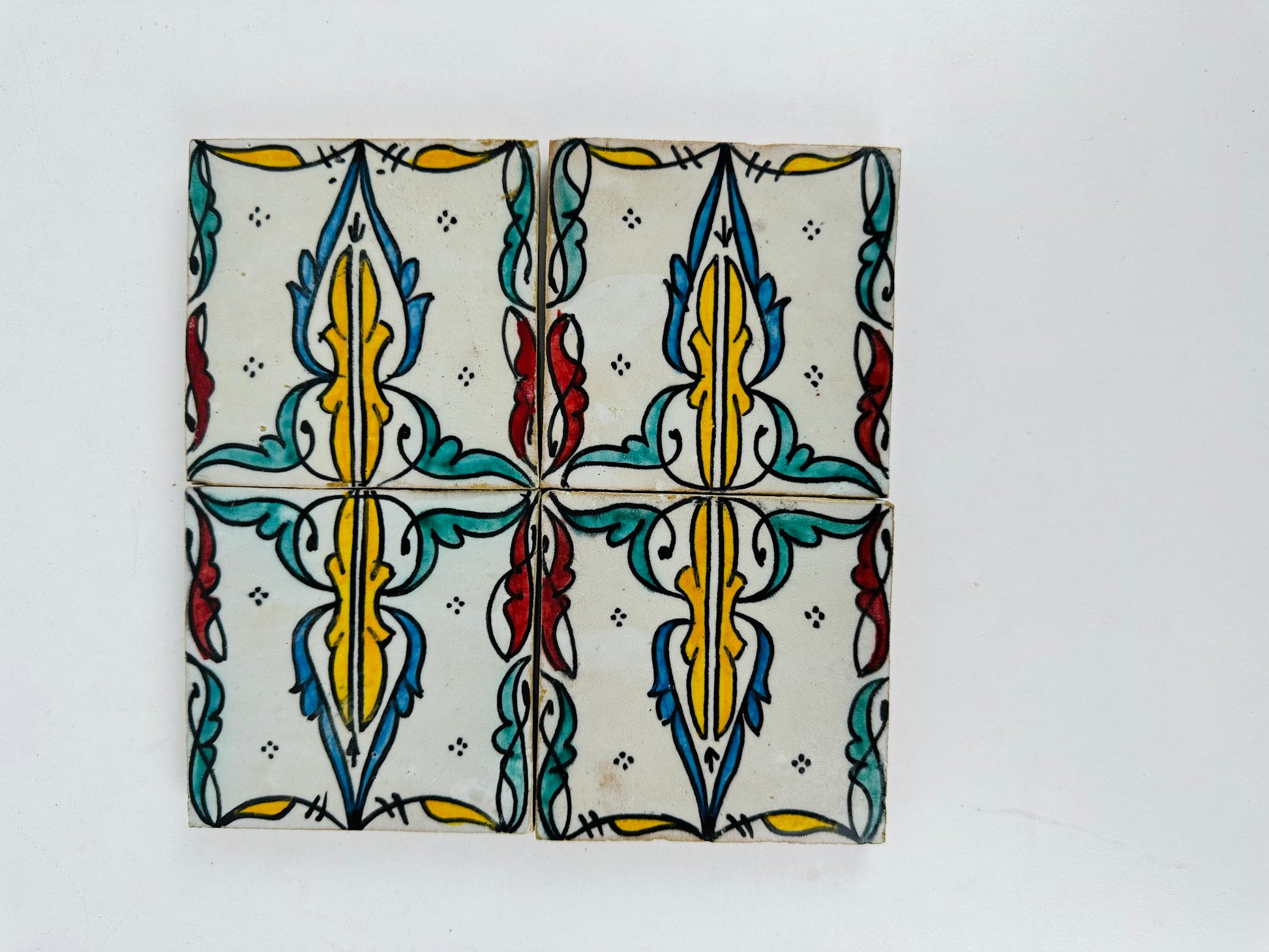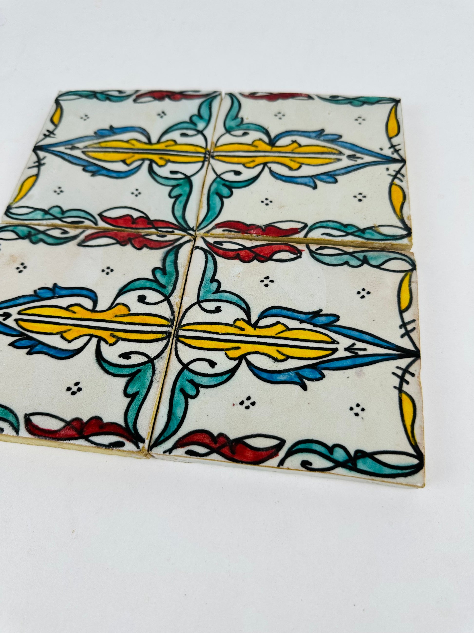 Bring the charm of Andalusian artistry into your space with these exquisite handmade and hand-painted ceramic tiles. Featuring a delicate floral motif with intricate scrollwork and vibrant hues of turquoise, mustard yellow, deep red, and black, these tiles capture the essence of Moorish and Mediterranean design.
