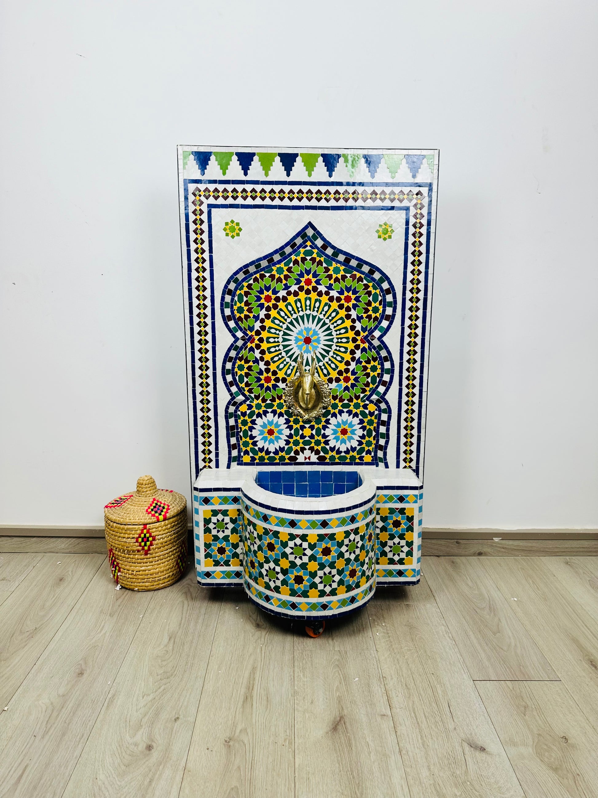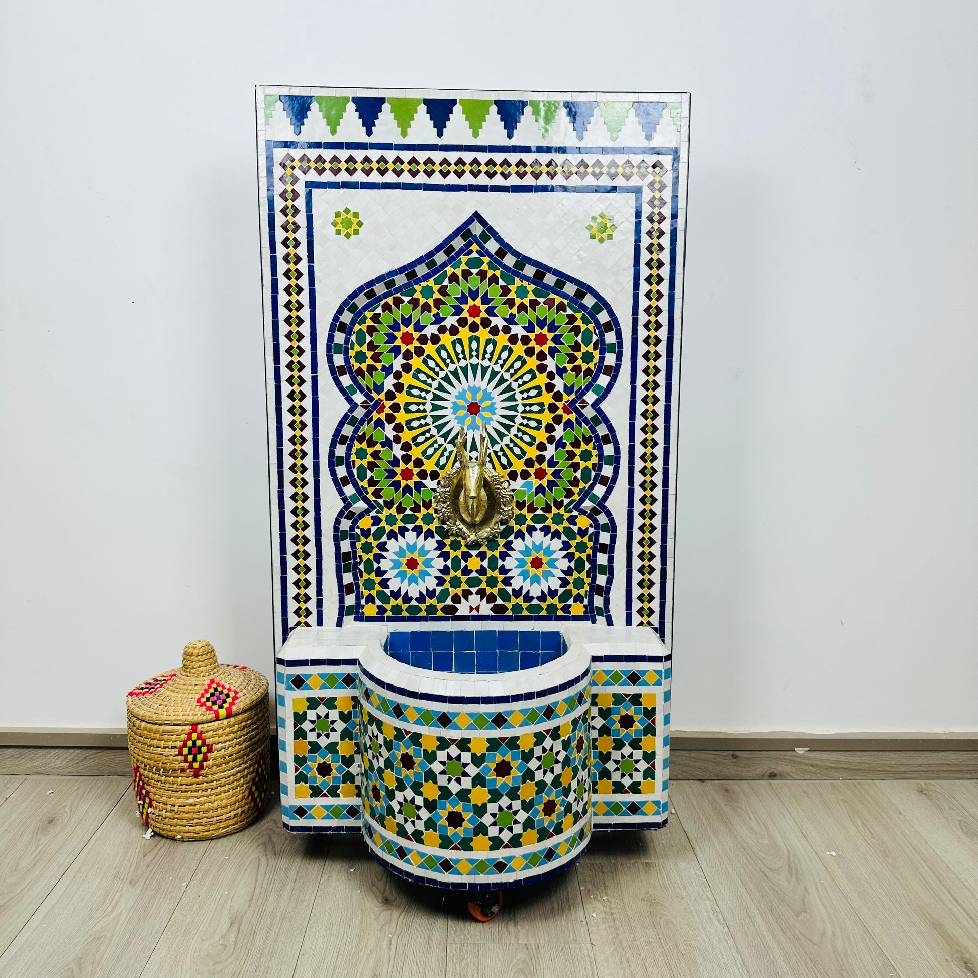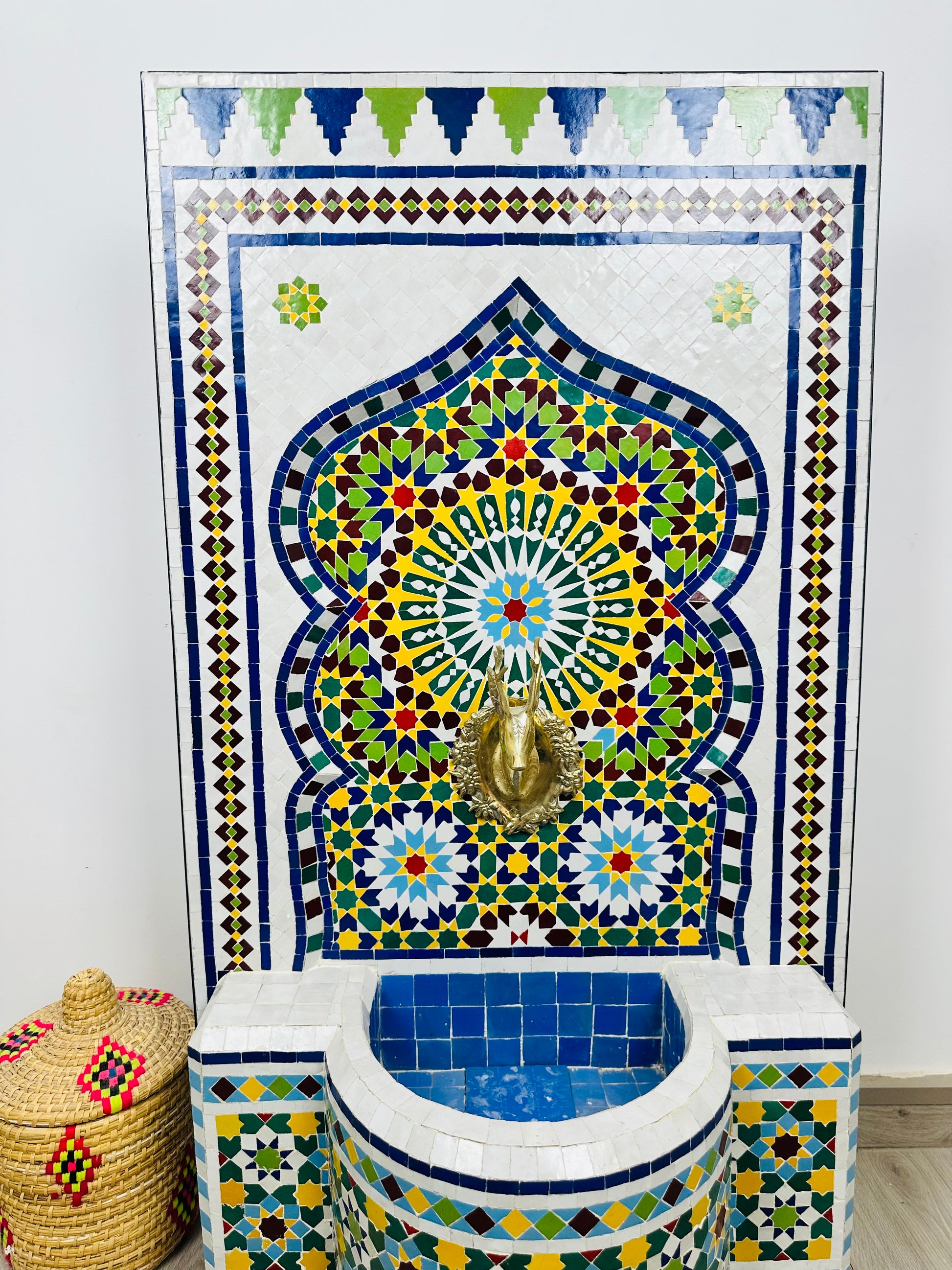 ✔ Authentic Moroccan Craftsmanship: Made with Zellige tiles, natural clay, brass, and quality ceramic