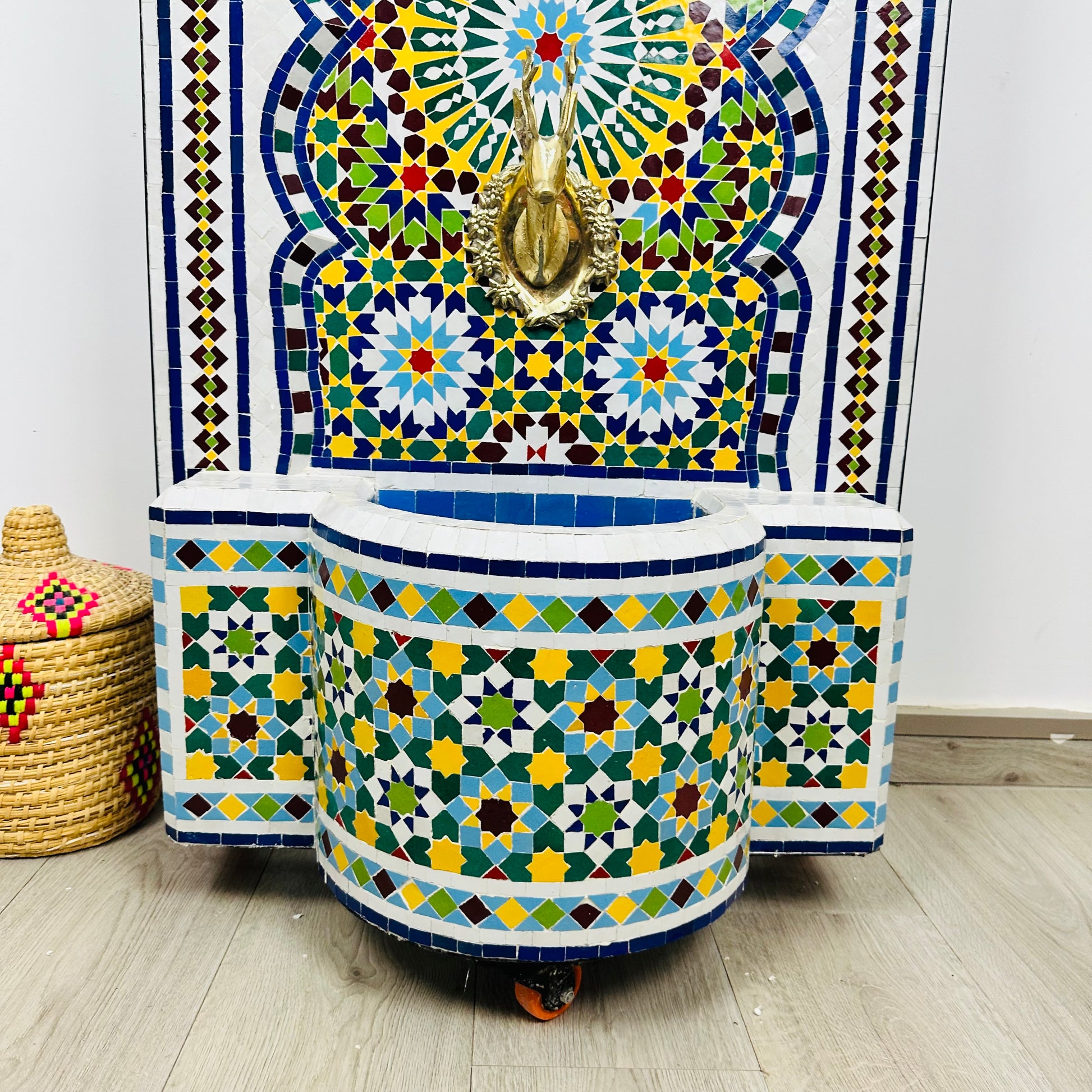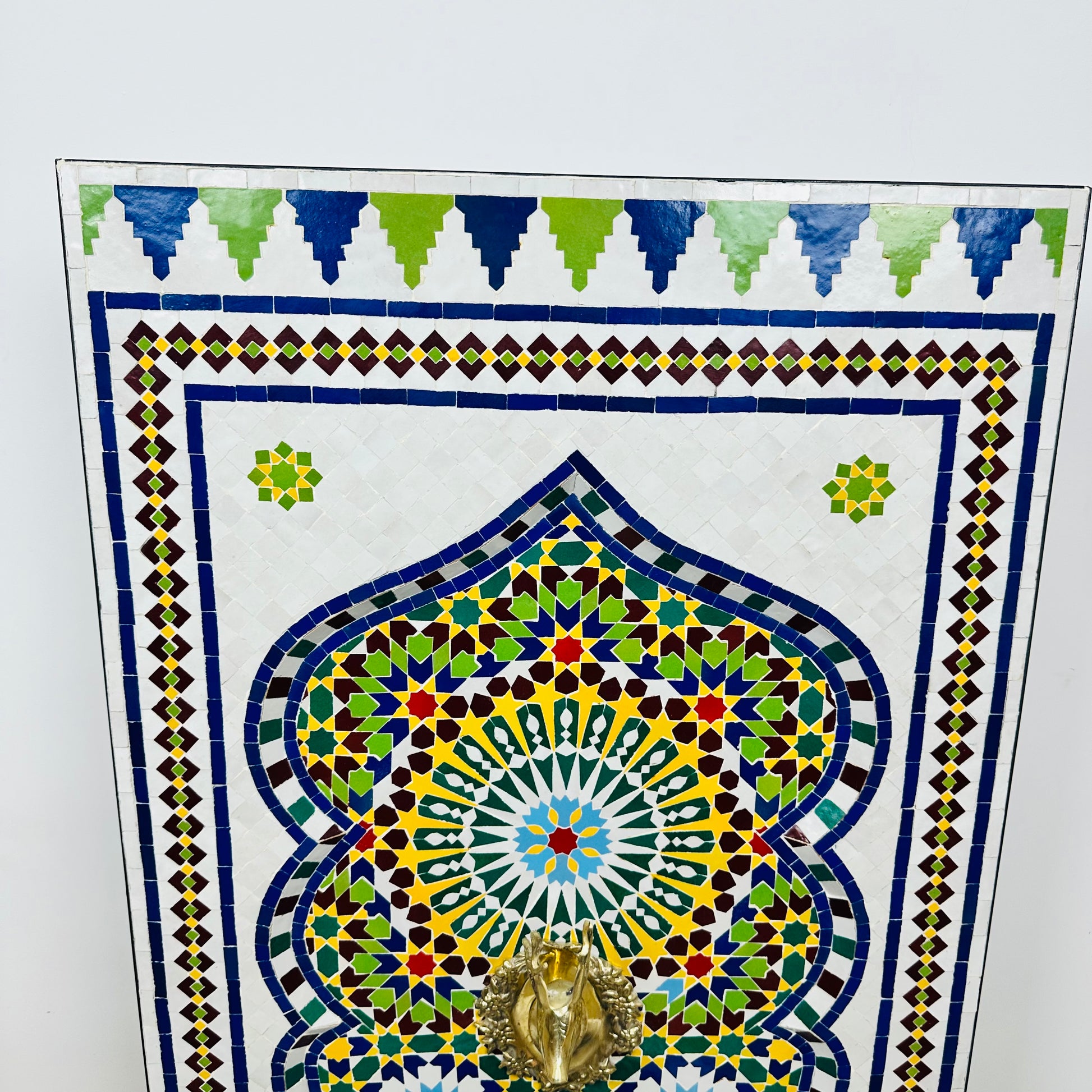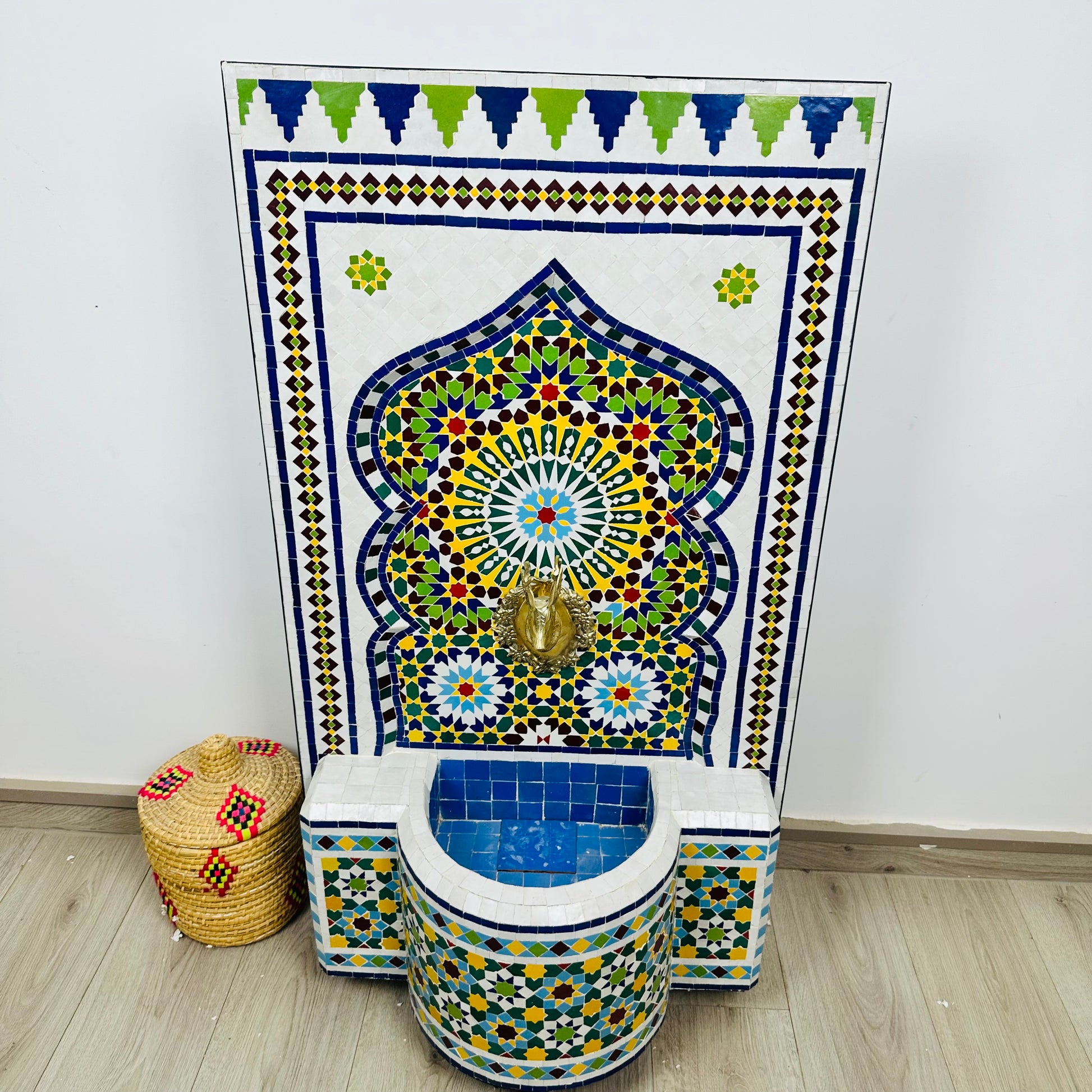 ✔ Authentic Moroccan Craftsmanship: Made with Zellige tiles, natural clay, brass, and quality ceramic