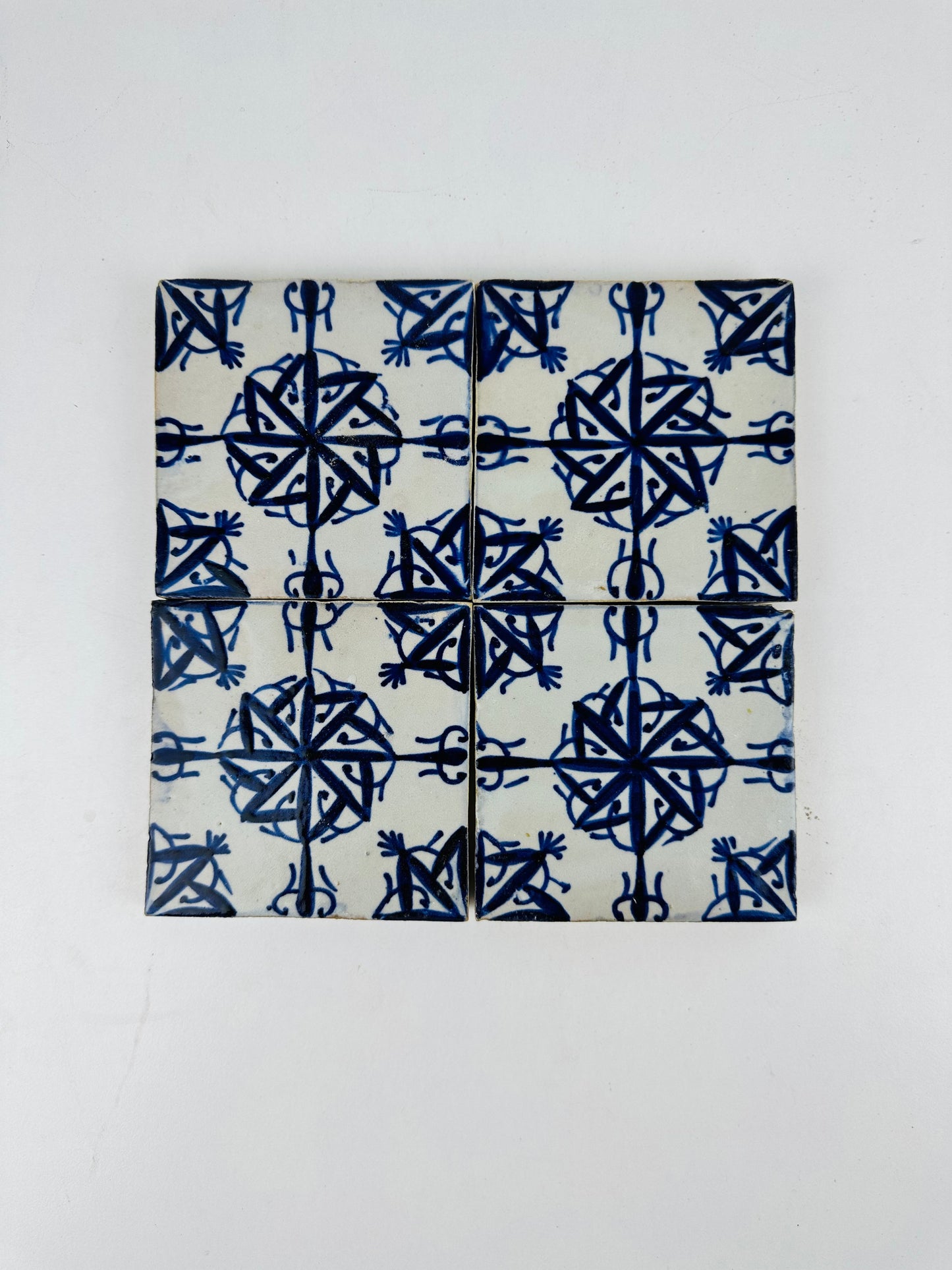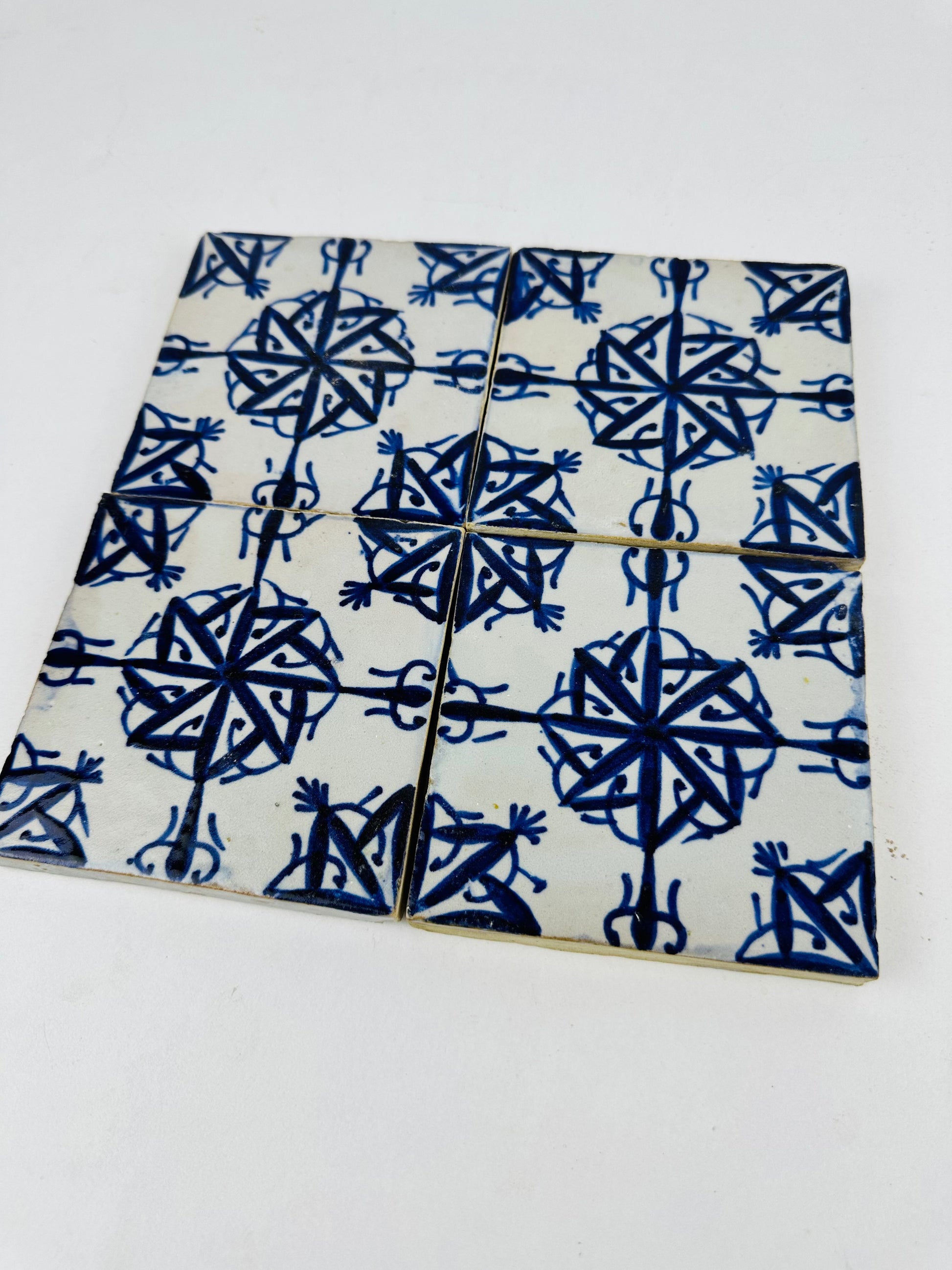 The Sapphire Geometry Moroccan Tile is a stunning representation of traditional Moroccan patterns, featuring deep cobalt blue geometric motifs arranged in a delicate symmetrical formation. Inspired by the classic Andalusian and Moorish tilework, this piece combines cultural heritage with artistic craftsmanship. The clean white background enhances the bold blue designs, making it a perfect fit for both contemporary and traditional spaces.