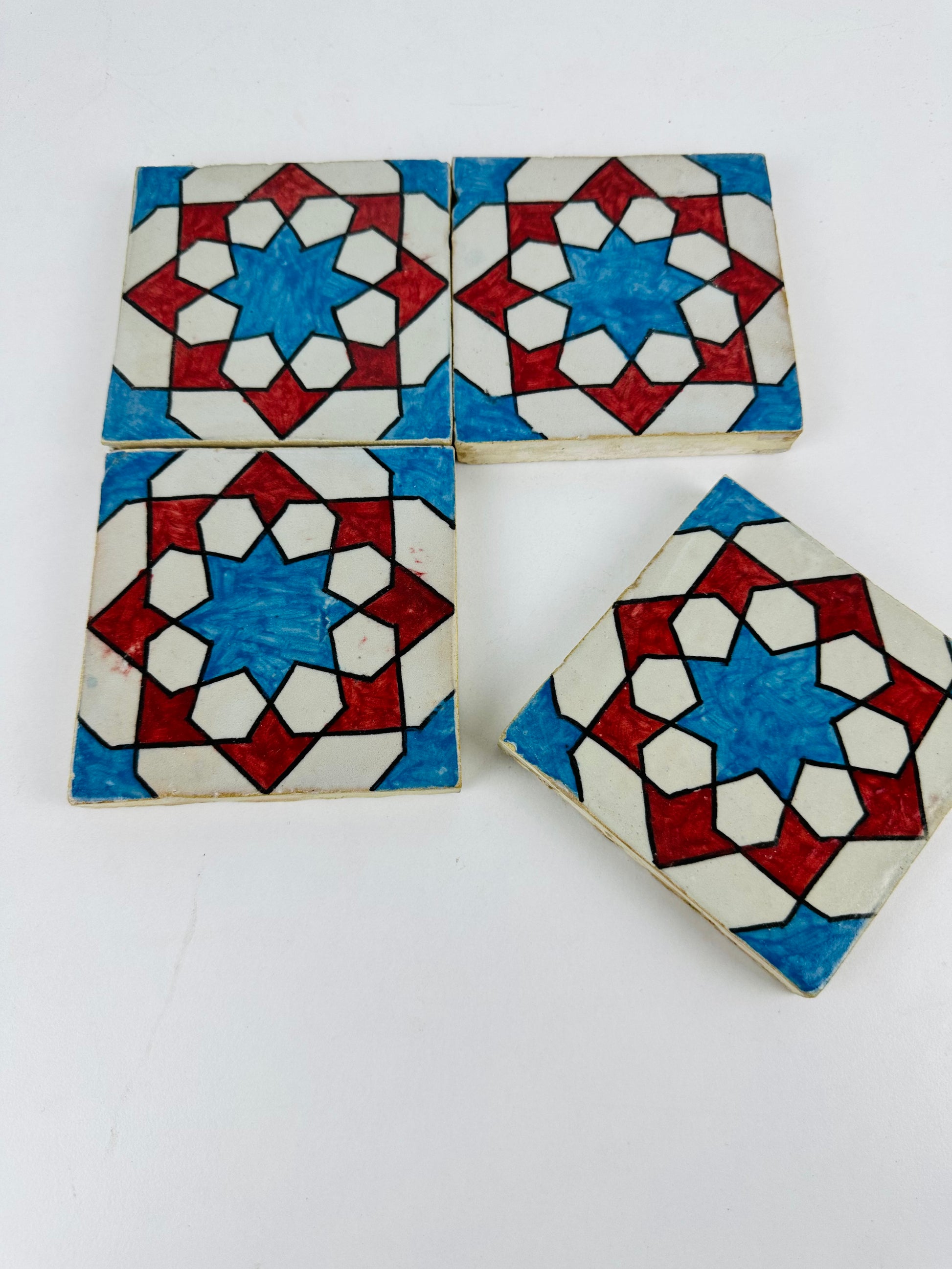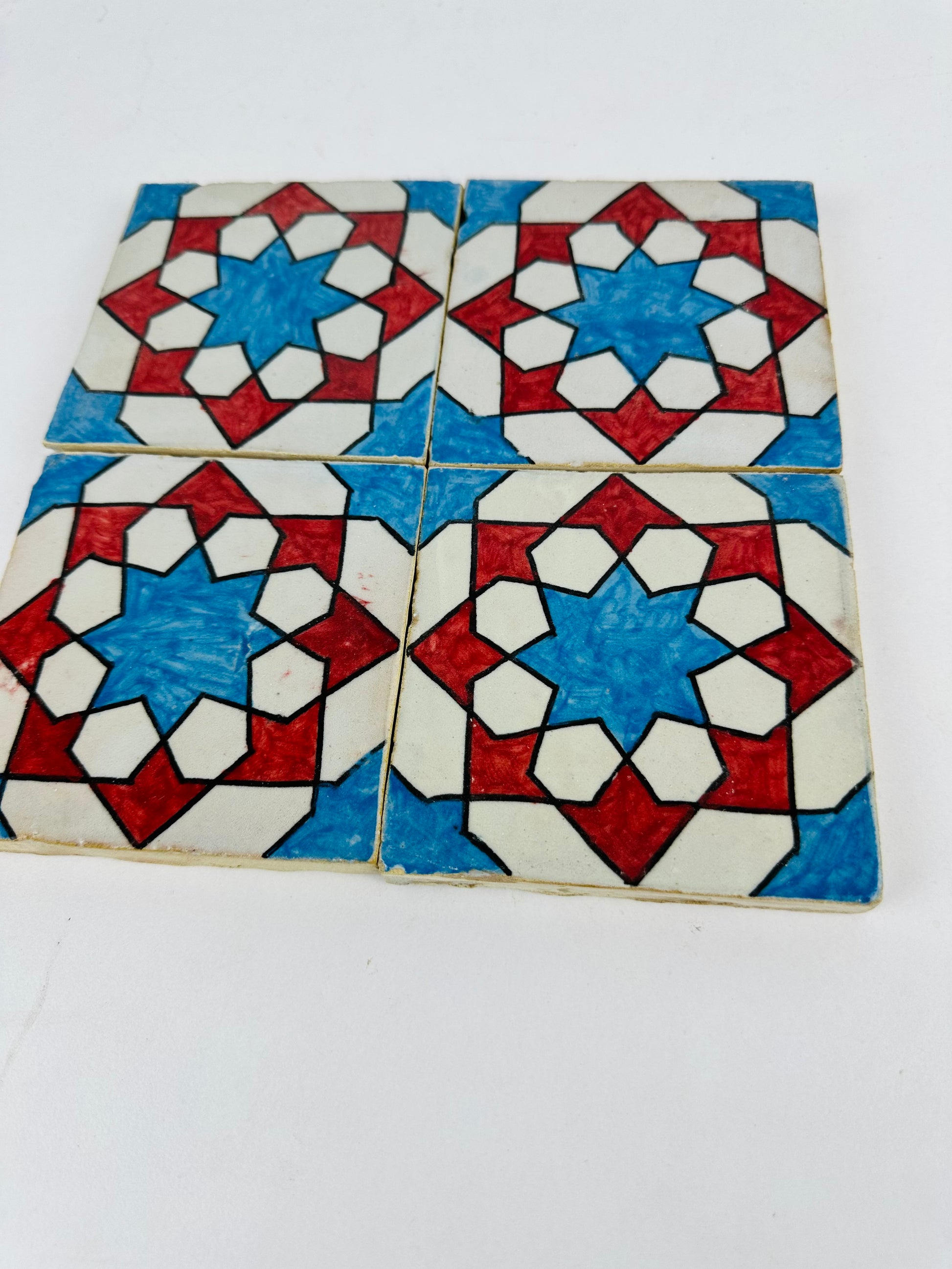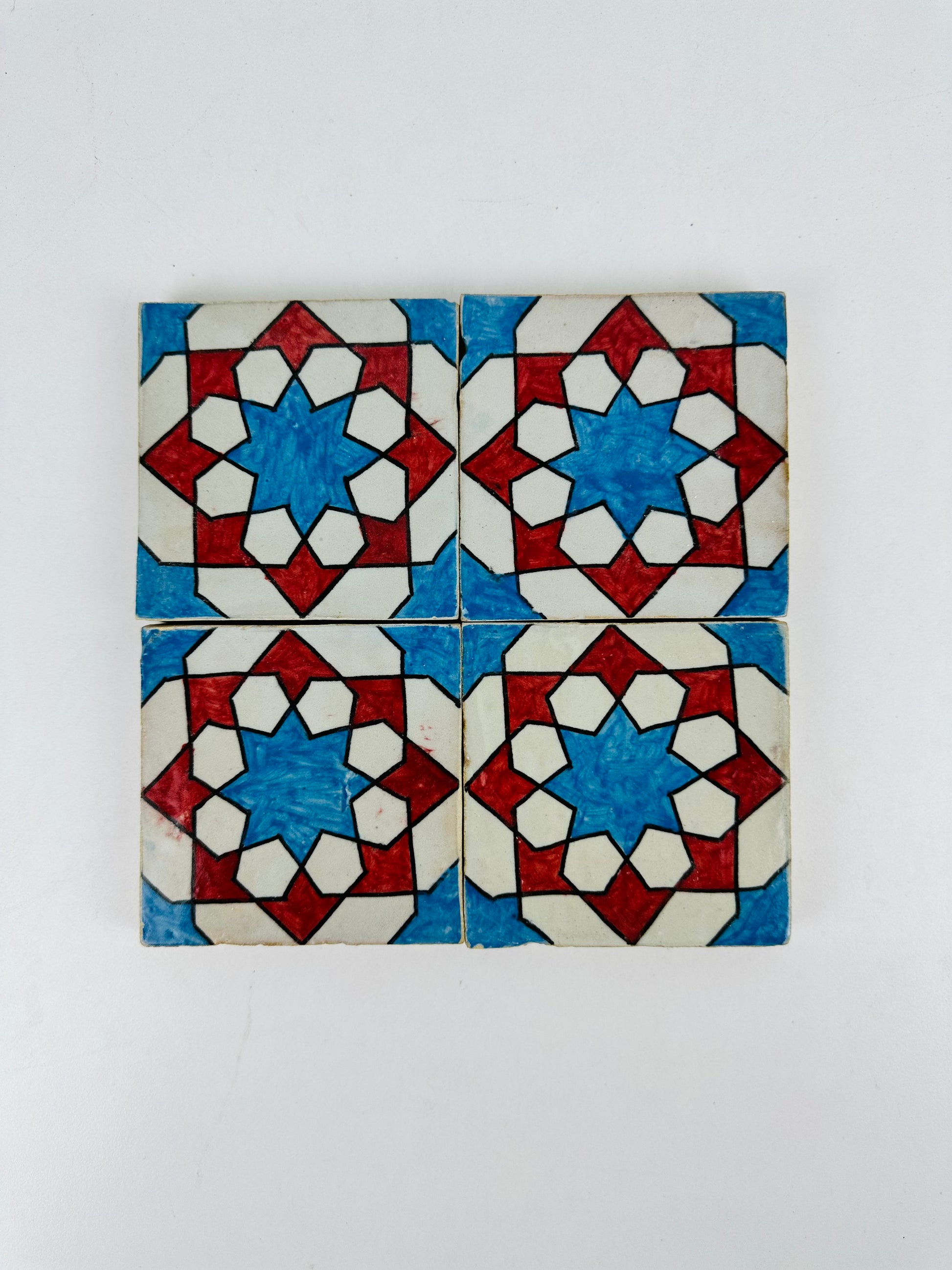 Bring the essence of Moroccan artistry to your home with the Timeless Star tile collection. Featuring an intricate interlocking geometric star pattern in bold red, white, and blue, this hand-painted tile radiates a sense of tradition and symmetry, inspired by centuries-old Moorish designs.
