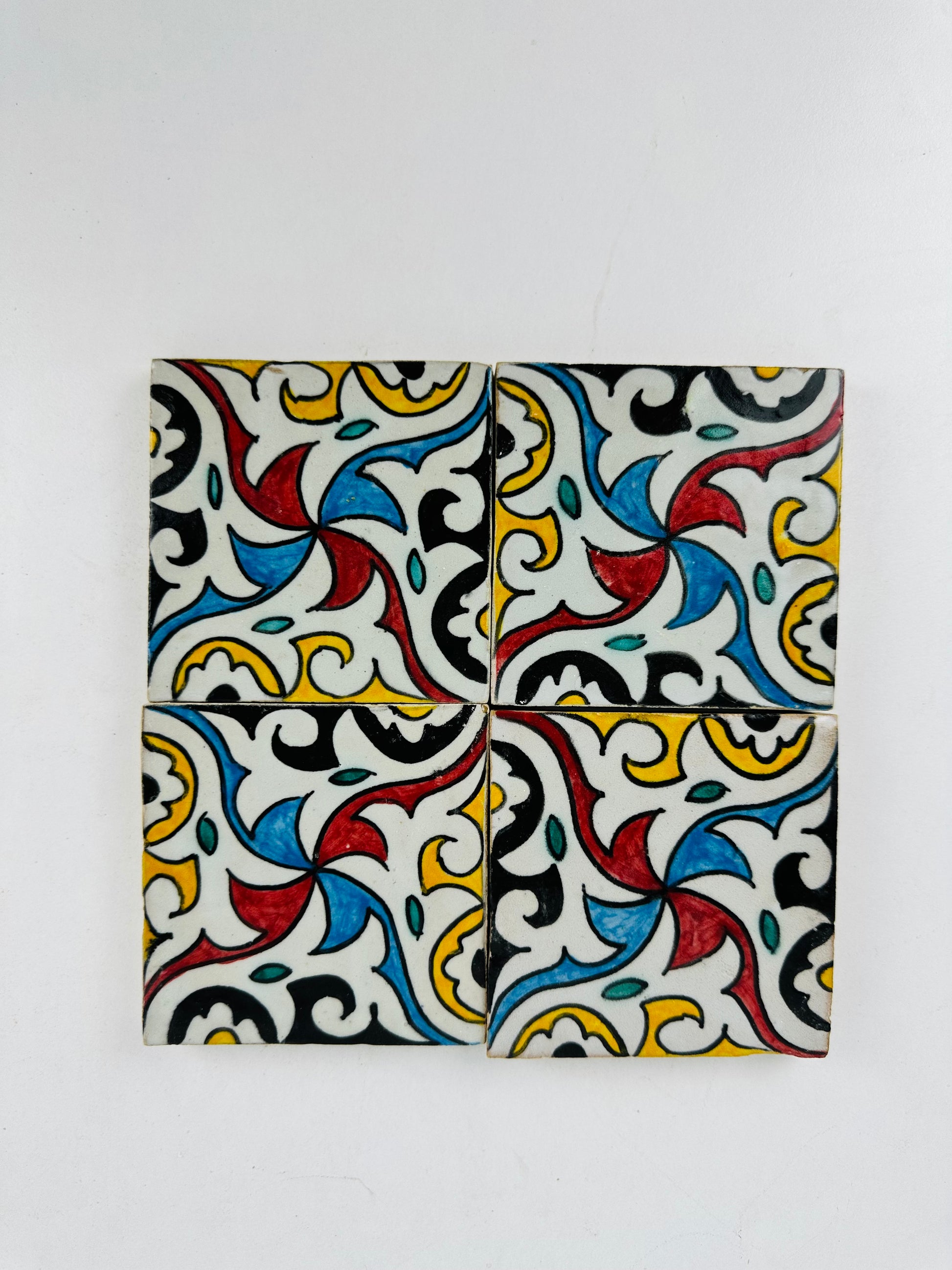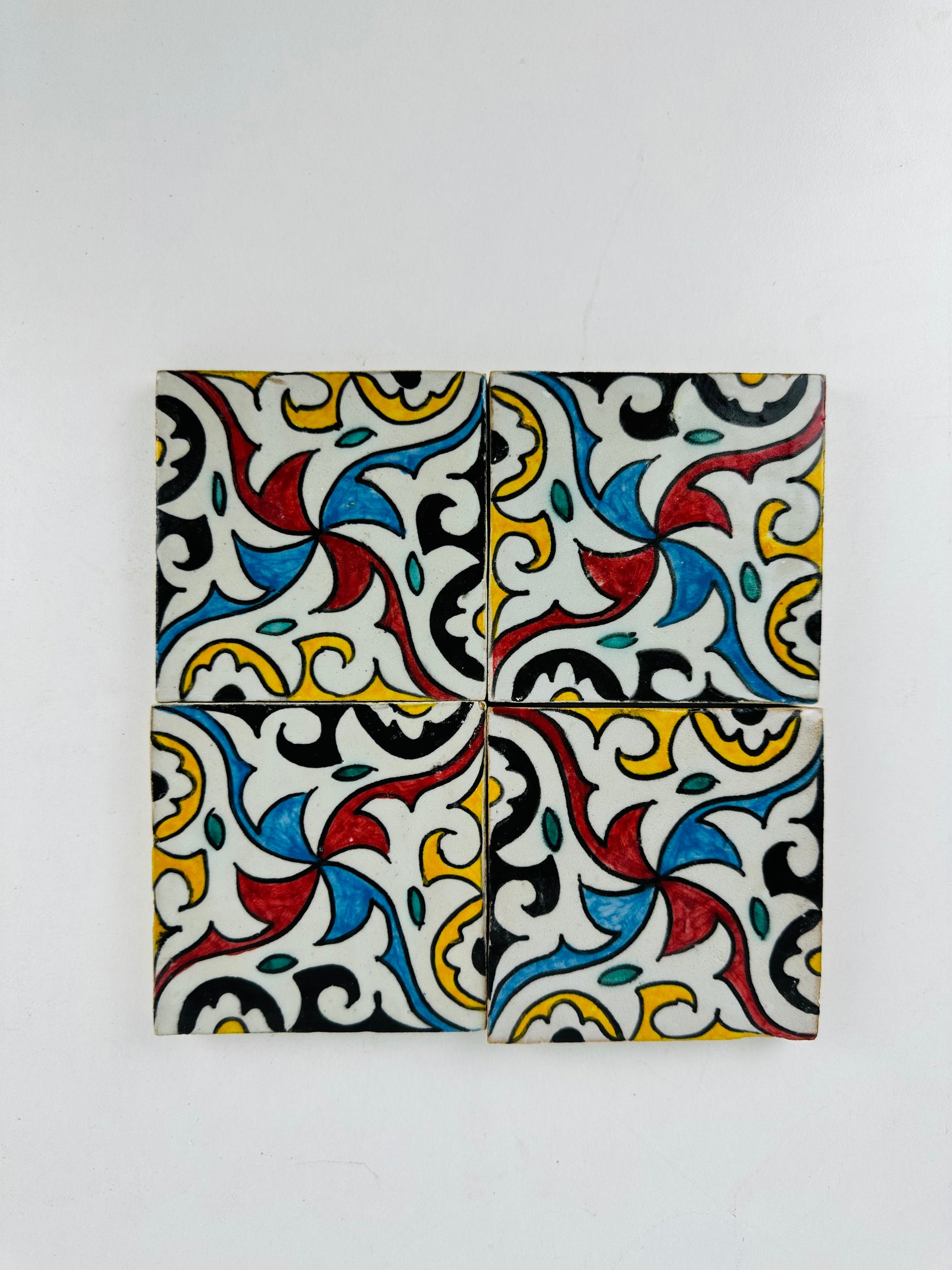 The Arabesque Swirl Moroccan Zellige Tiles feature a mesmerizing pattern of swirling red, blue, yellow, and black hues, inspired by traditional Moroccan arabesque designs. These hand-painted tiles bring a dynamic and lively aesthetic to any space, making them a perfect blend of classic and contemporary. Crafted using time-honored techniques, they add a unique artistic touch to walls, floors, and accent areas.