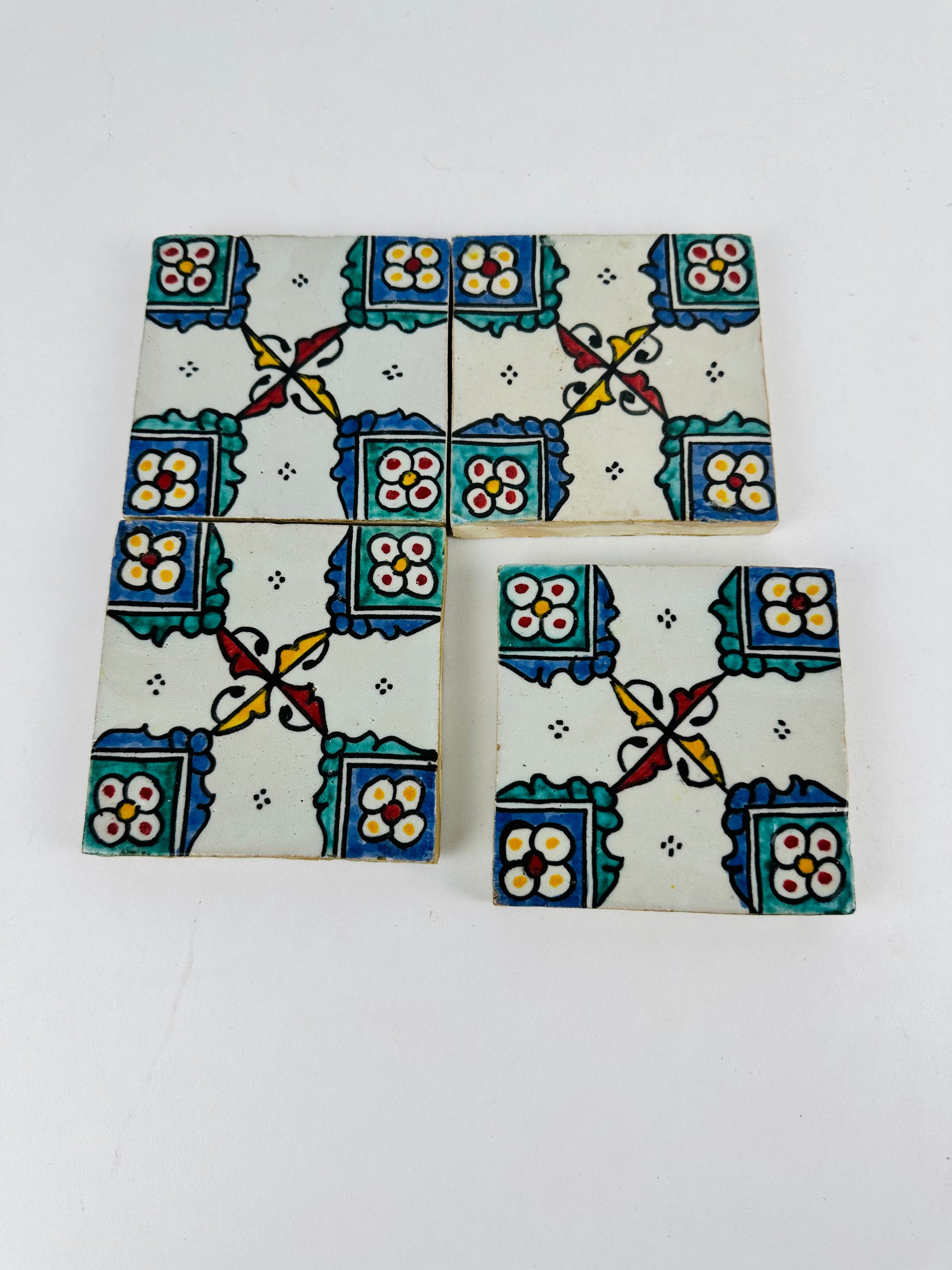 The Andalusian Blossom Moroccan Zellige Tiles feature a delicate floral-inspired motif with elegant geometric accents, capturing the essence of Moorish artistry. The balanced combination of soft cream tones with vibrant blue, green, red, and yellow detailing makes these tiles perfect for adding an air of sophistication and charm to any space. Each tile is hand-painted and crafted using centuries-old Moroccan techniques, ensuring authenticity and uniqueness in every piece.