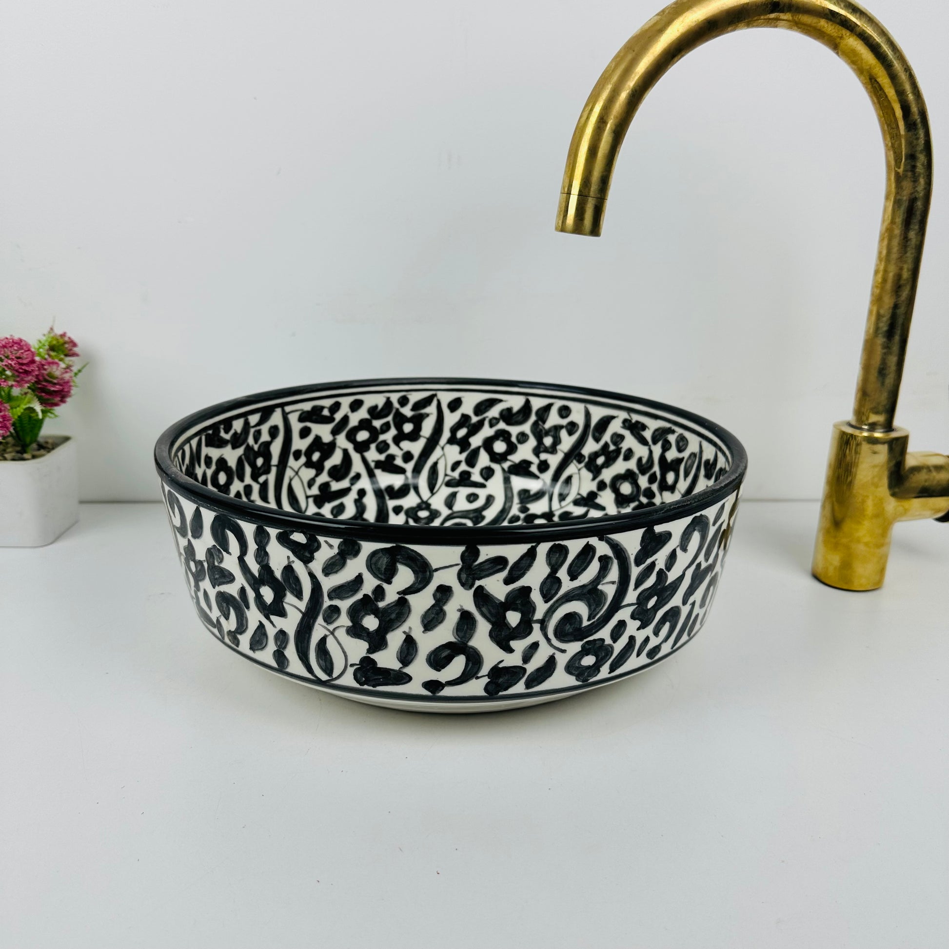 Black Botanical Haven: Handcrafted Ceramic Sink with Garden-Inspired Motifs