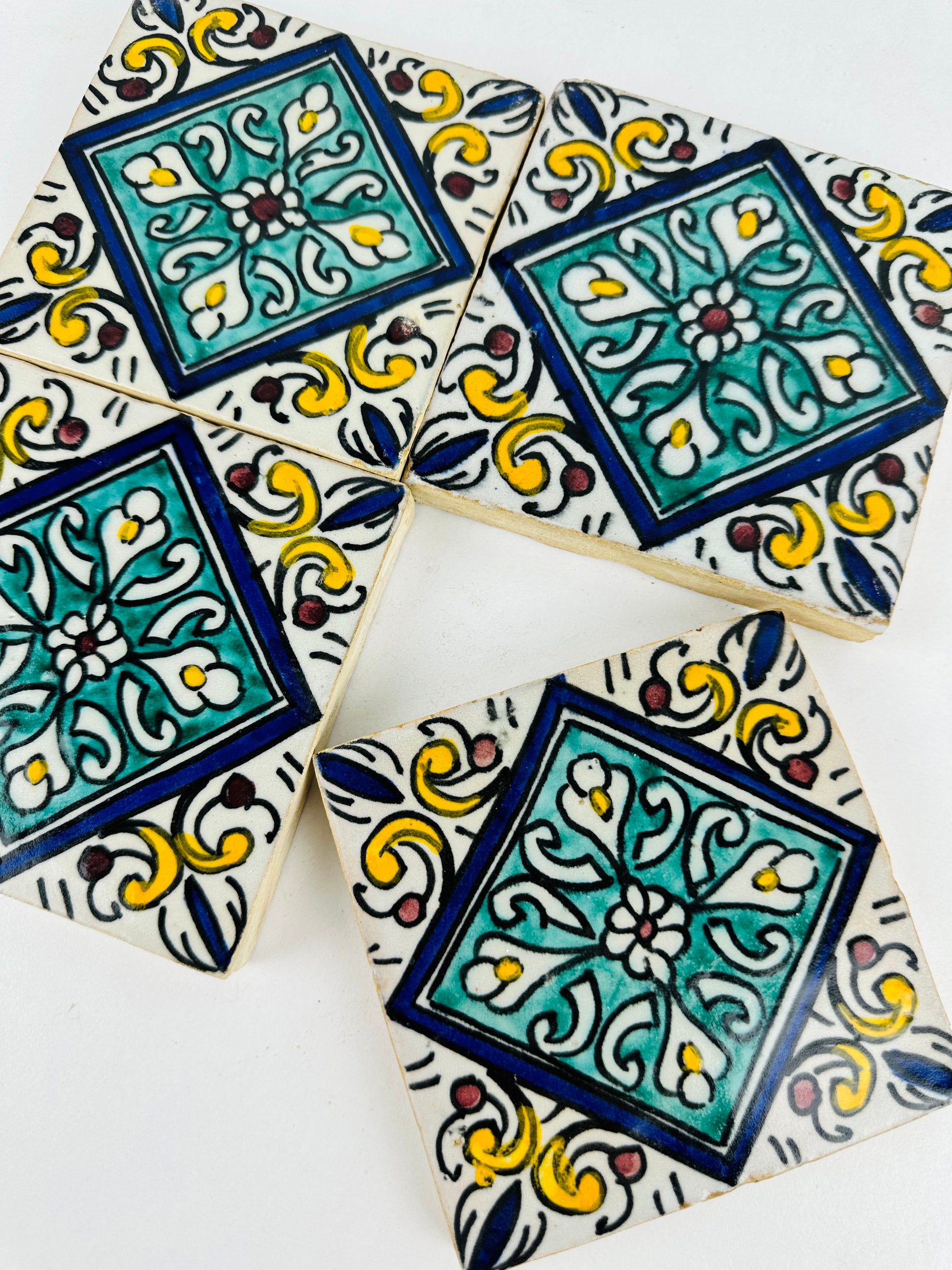 The Emerald Bloom Moroccan Zellige Tiles showcase a timeless blend of intricate floral patterns and bold geometric framing. Each tile is handmade and hand-painted by expert artisans, reflecting the authenticity of Moroccan heritage. With its vibrant green centerpiece surrounded by delicate yellow and blue details, this tile is perfect for adding elegance and character to any space.