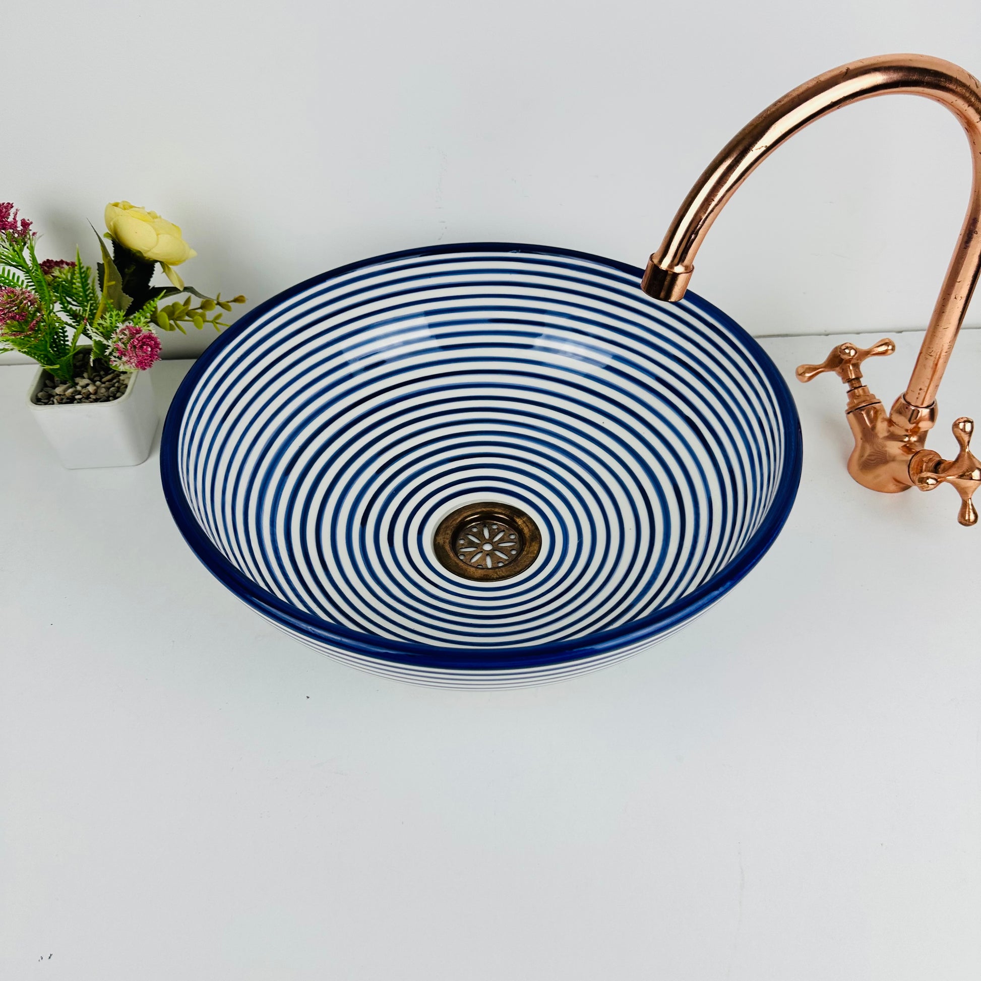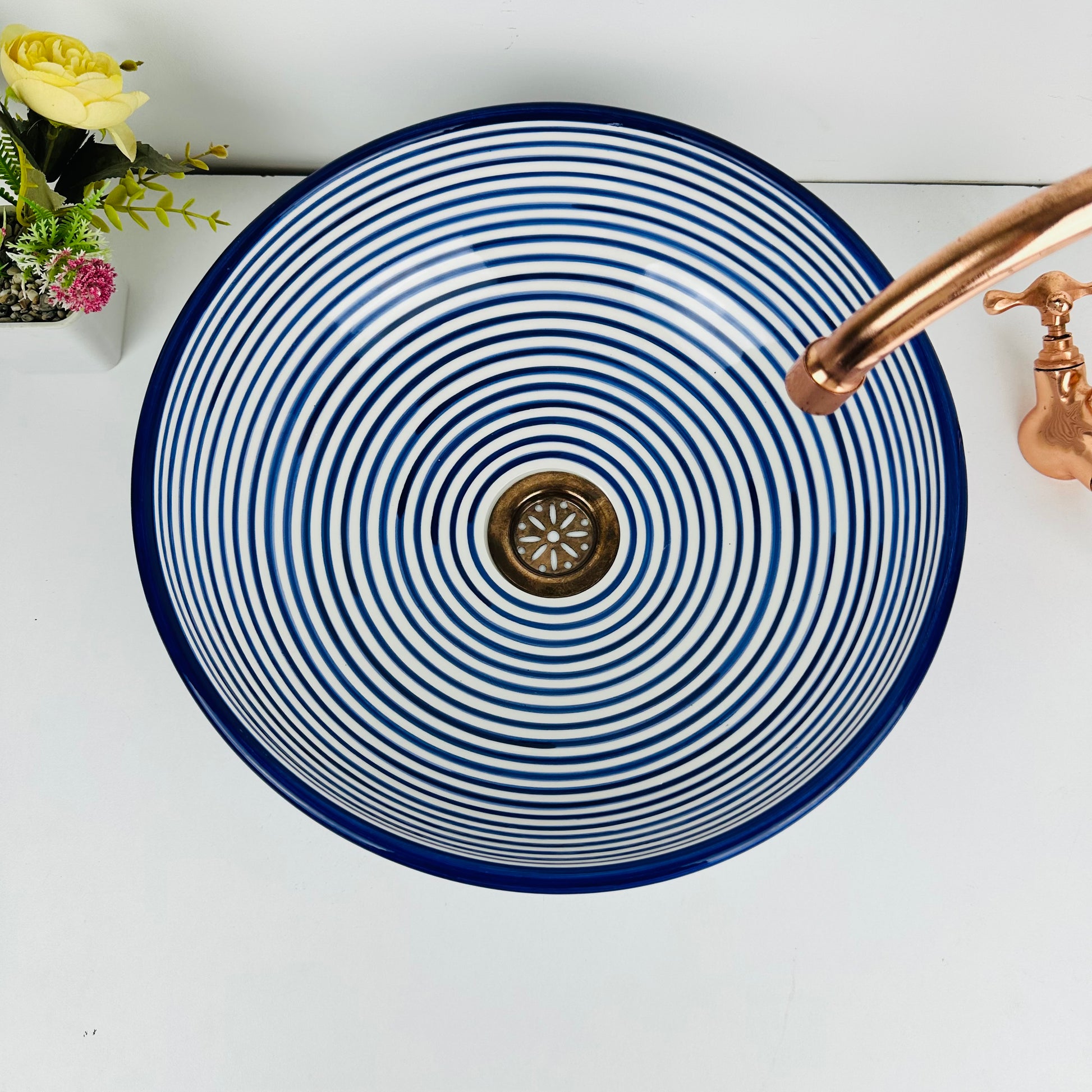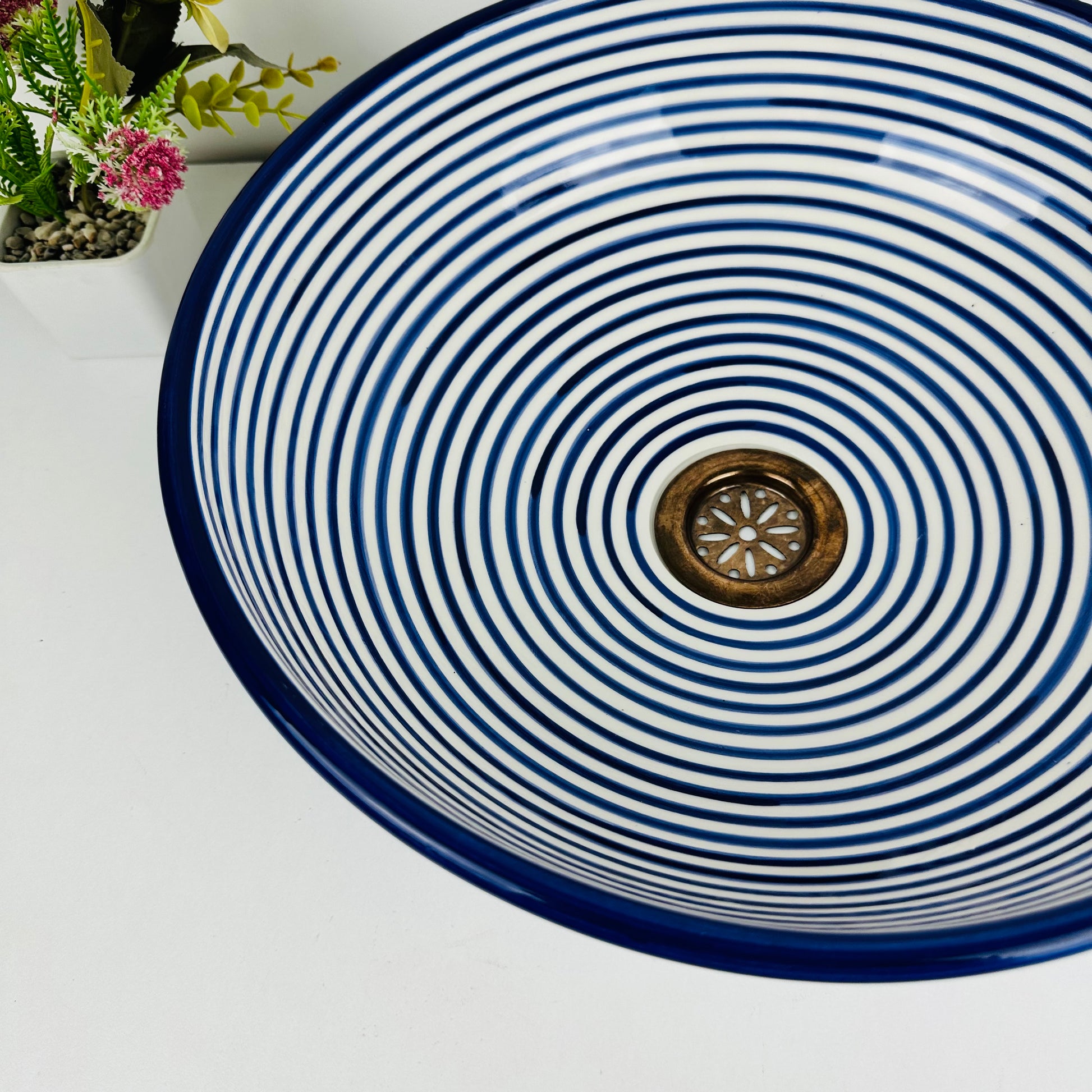 Blue infinite Rings: Handcrafted Ceramic Sink with Circular Design