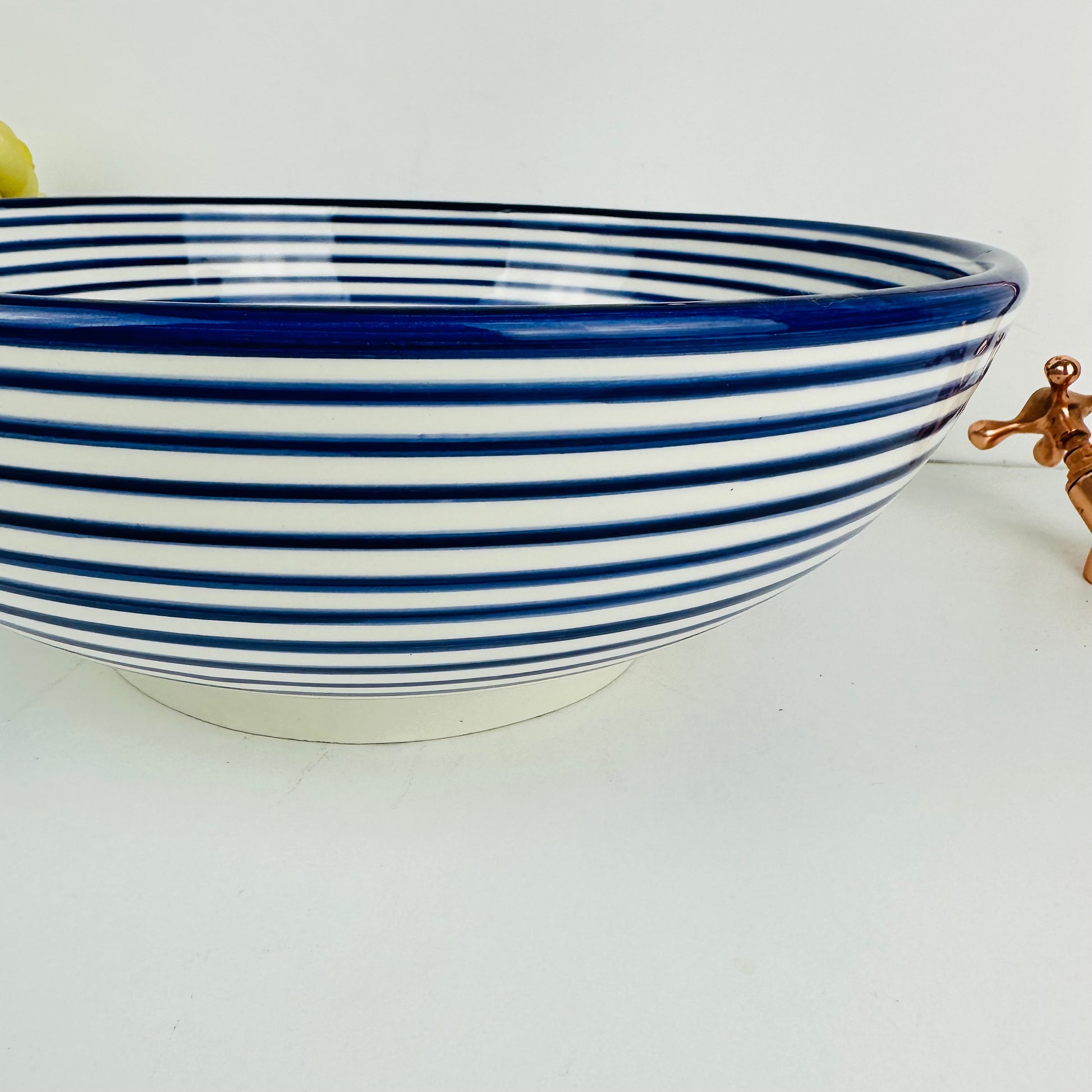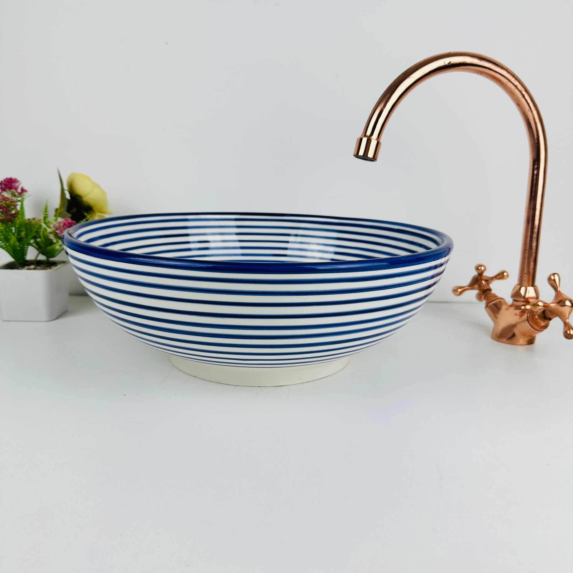 Bring a touch of seaside charm to your bathroom with this Nautical Blue Striped Vessel Sink. Featuring clean blue and white stripes, this sink evokes the refreshing feel of coastal living. Its sleek, contemporary design pairs perfectly with nautical, minimalist, or modern decor themes. The glossy ceramic finish ensures durability and easy maintenance for everyday use.