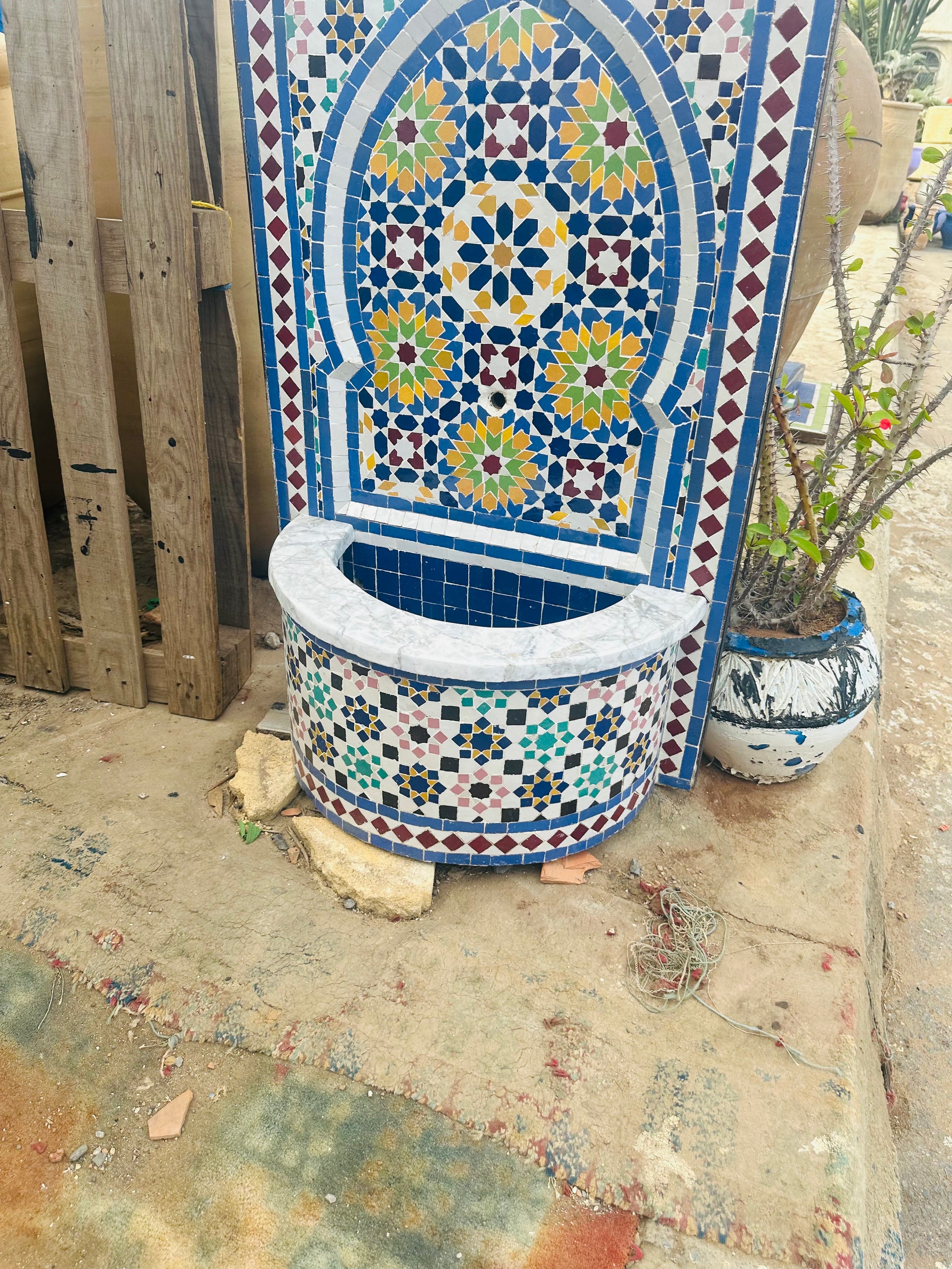 This stunning Moroccan fountain is a perfect blend of traditional craftsmanship and artistic elegance. Featuring intricate Zellige mosaic patterns, it radiates rich colors and geometric beauty, bringing a timeless charm to any space.