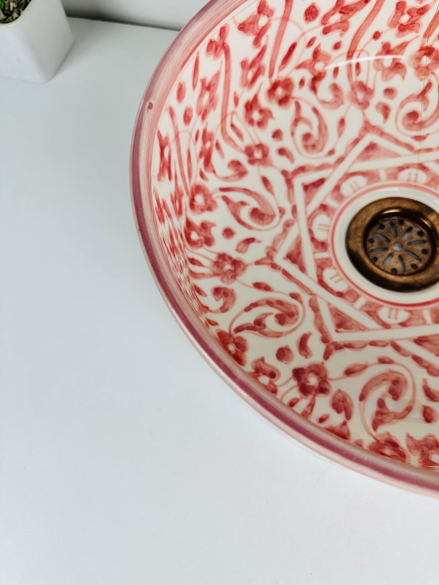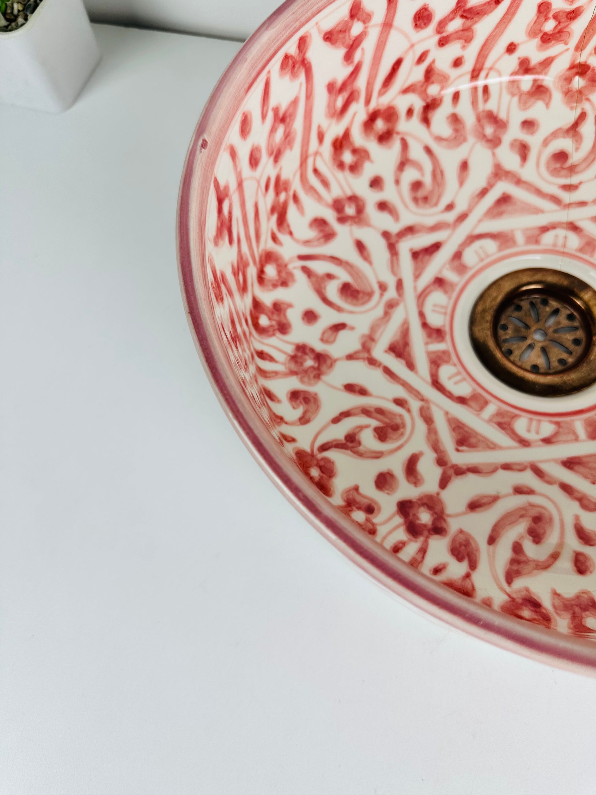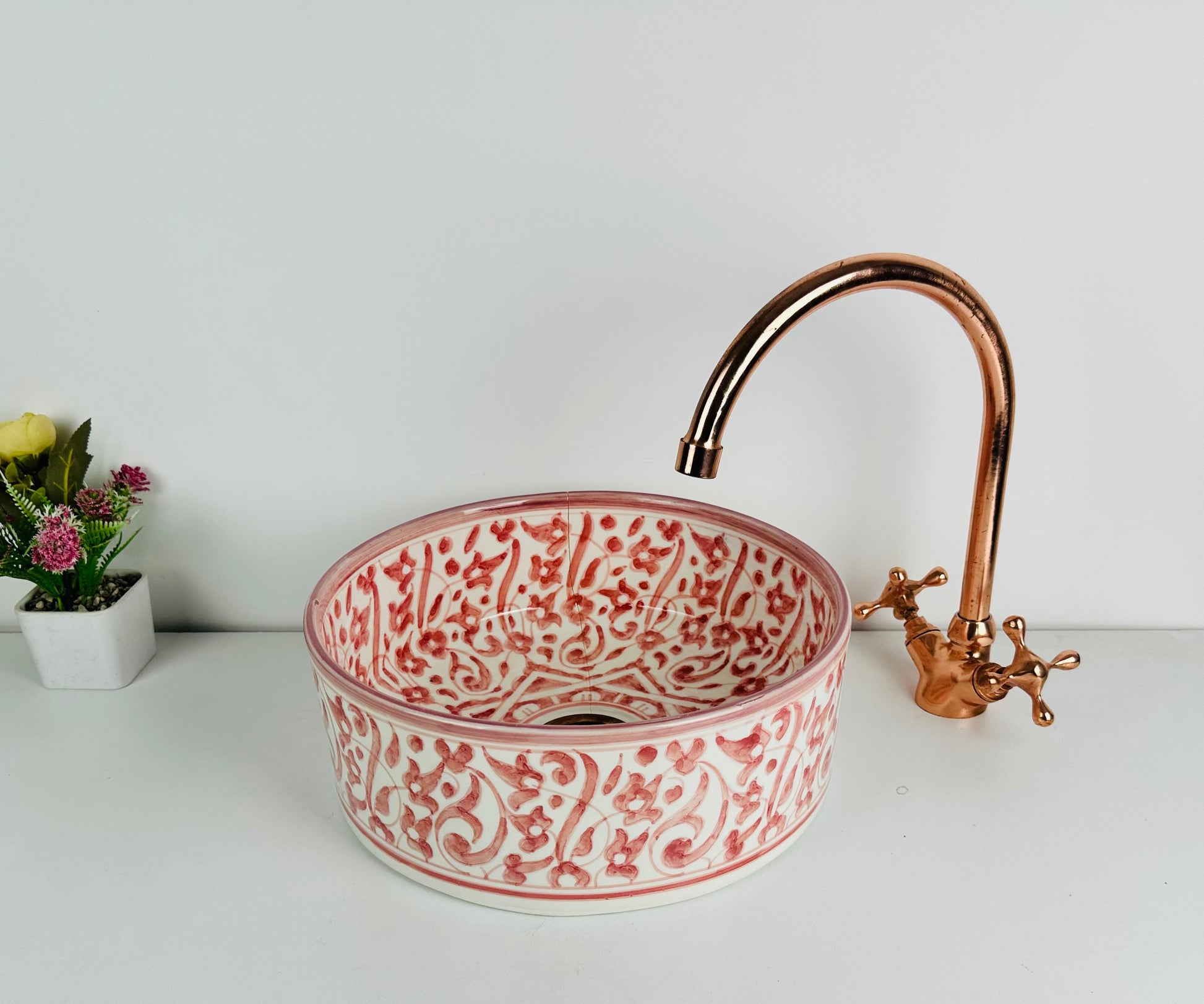 Blushing Red: Handcrafted Ceramic Sink in Blush Red Hue