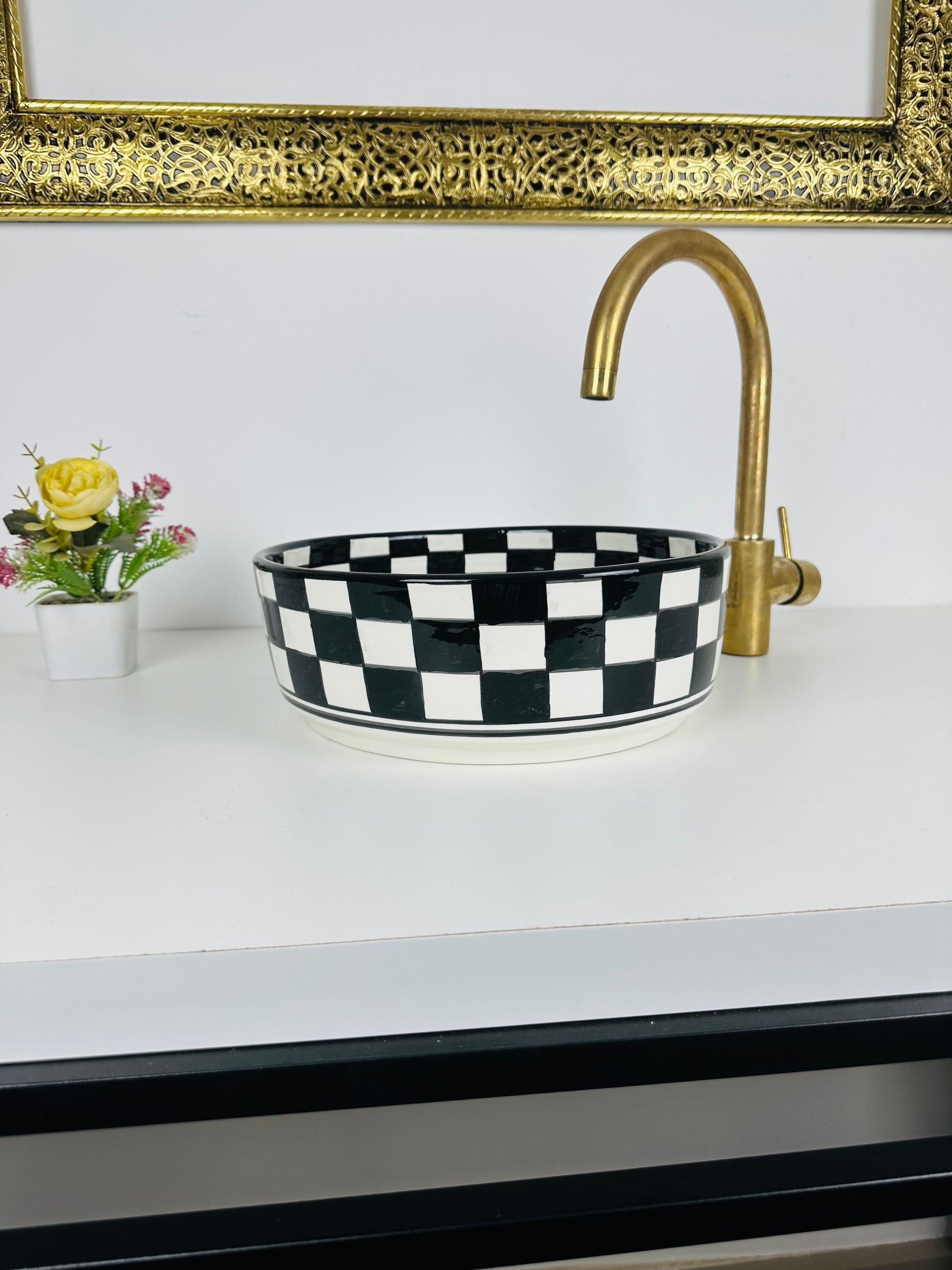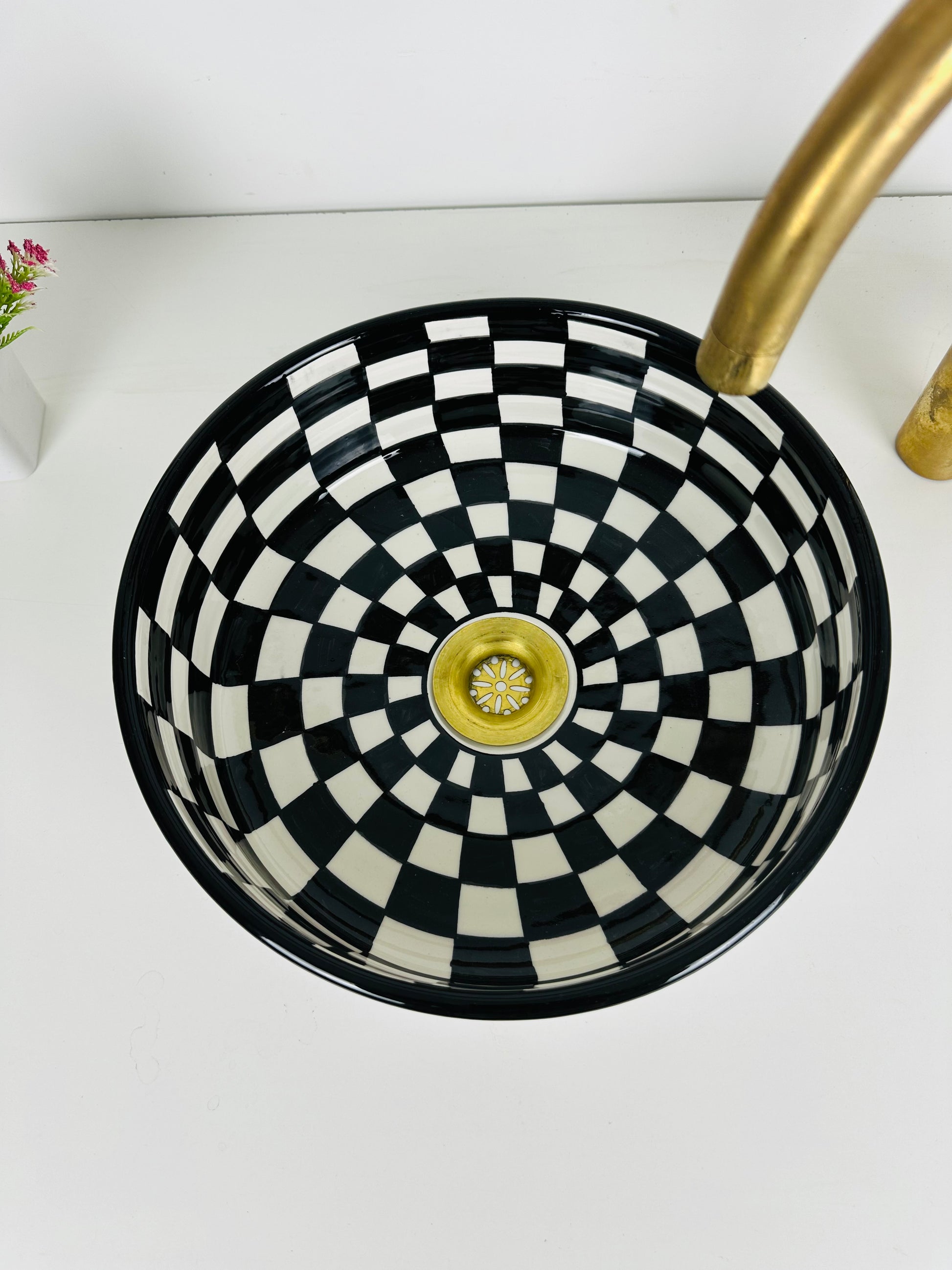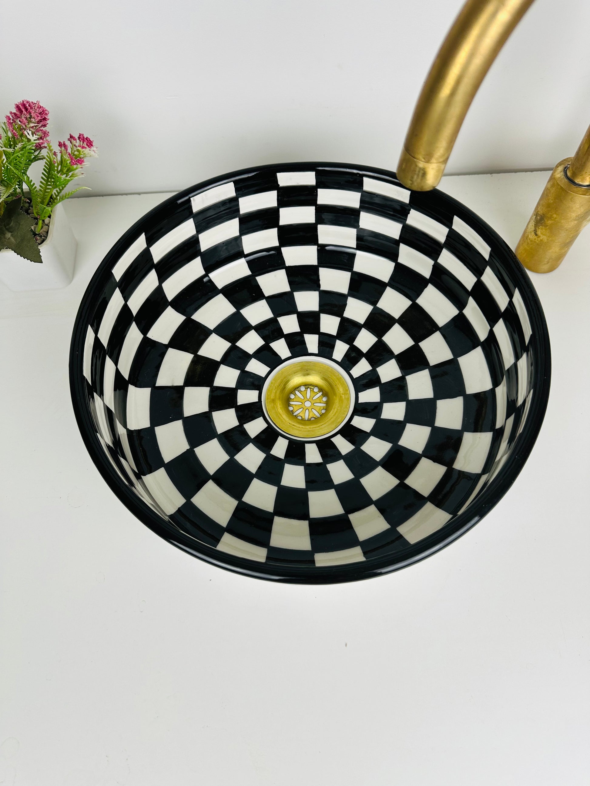 Checkerboard style: Handcrafted Black and White Mosaic Ceramic Sink