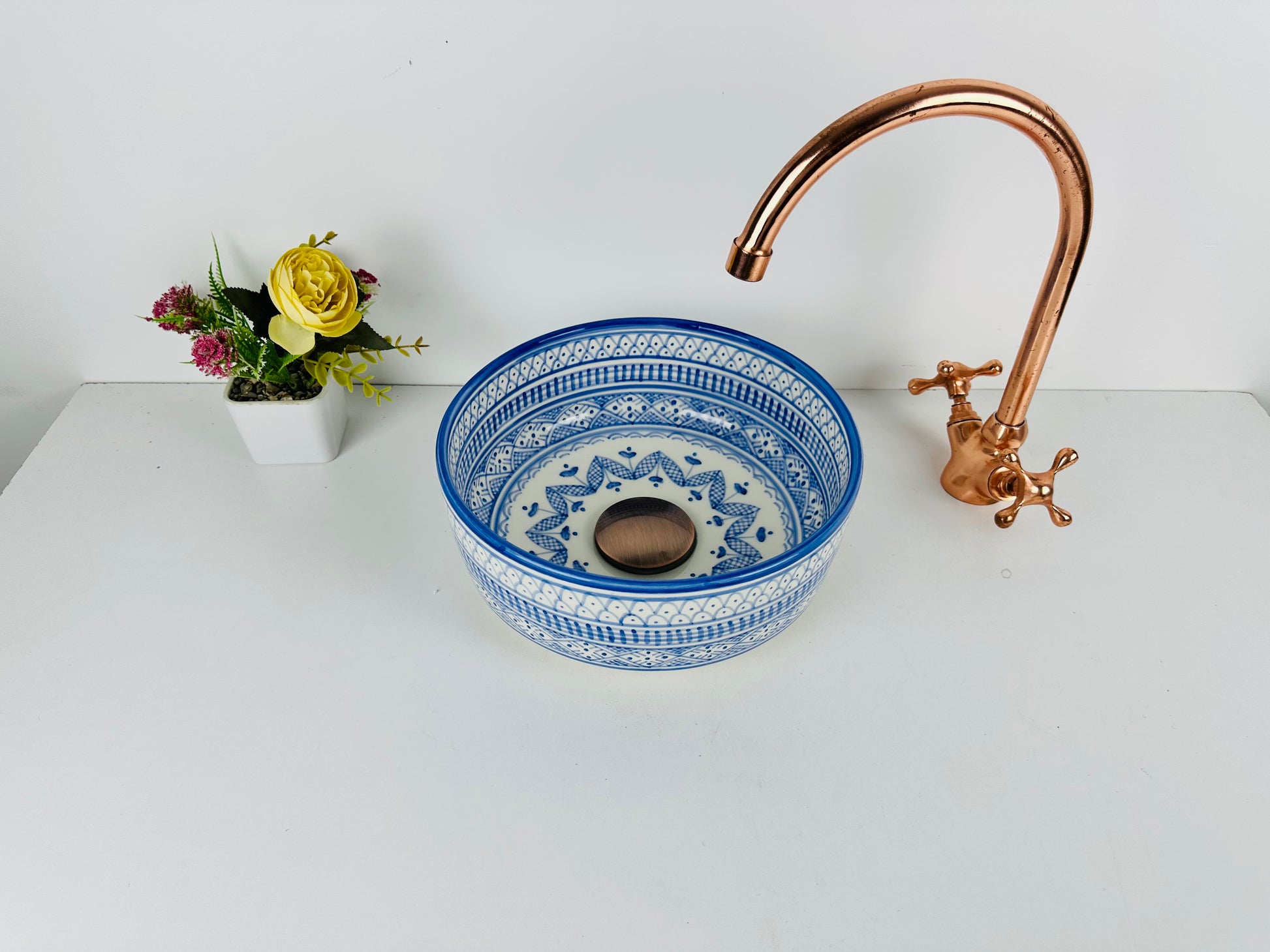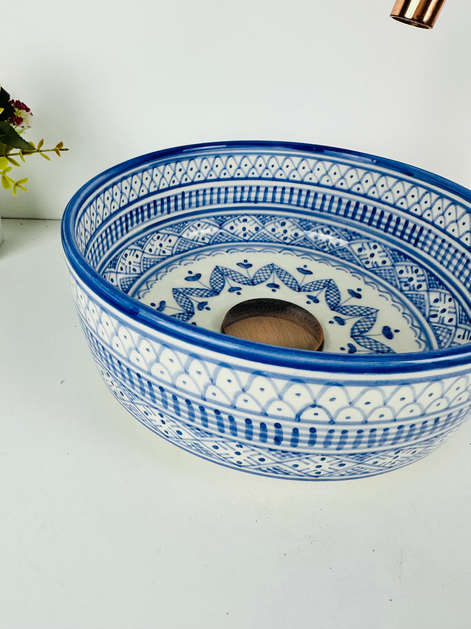 Classic Azure: Handcrafted Ceramic Sink with Traditional Blue Design