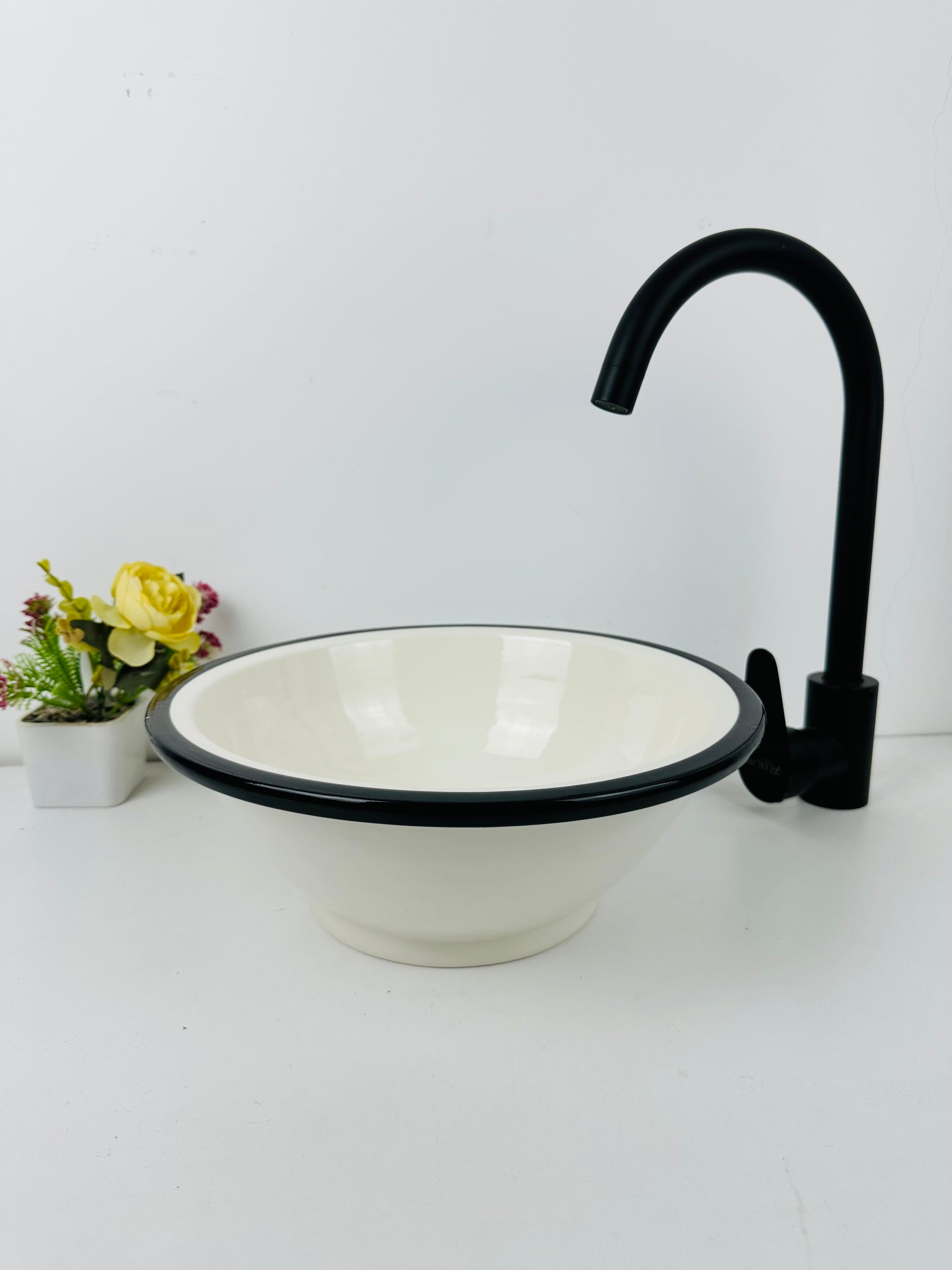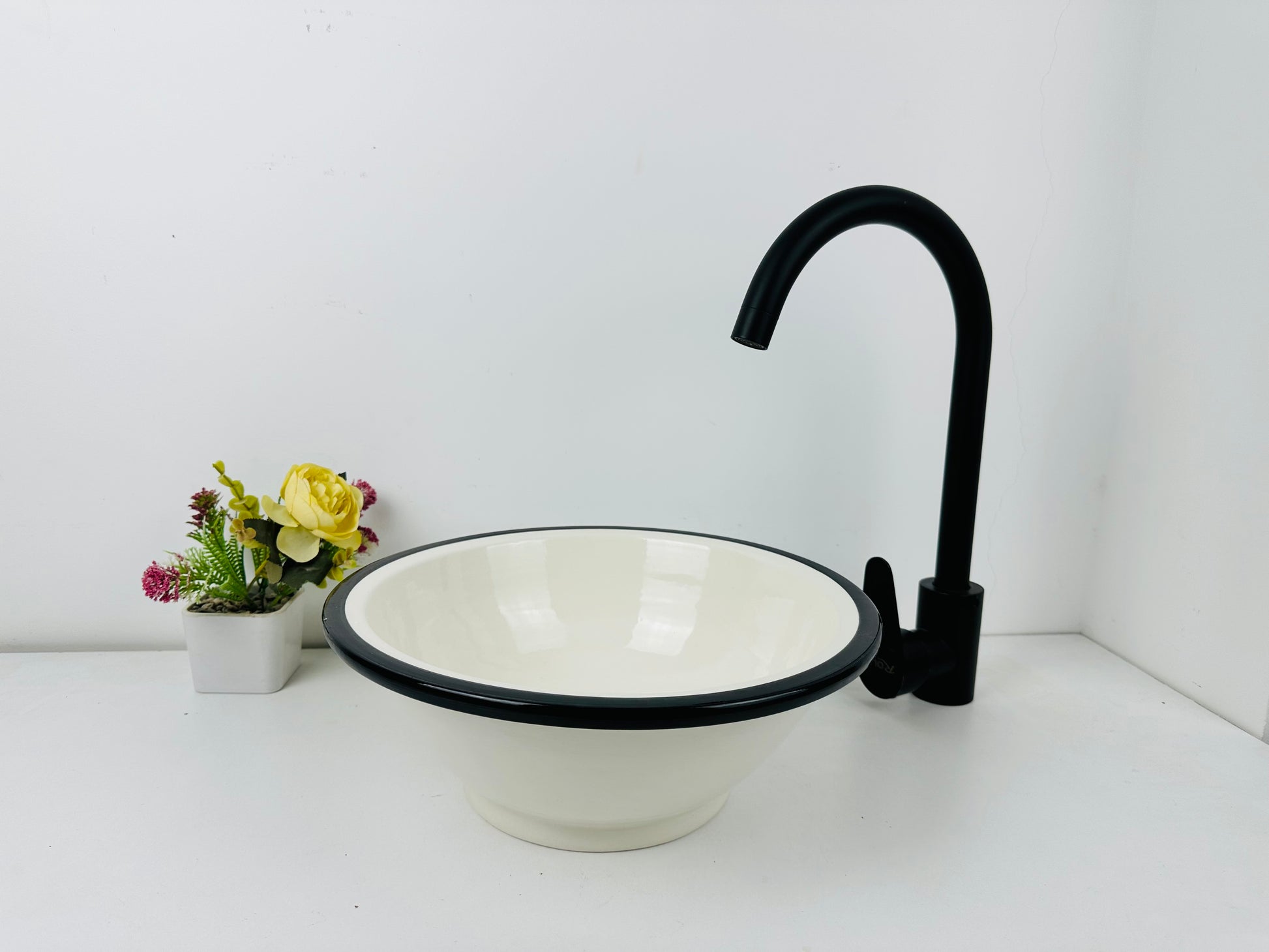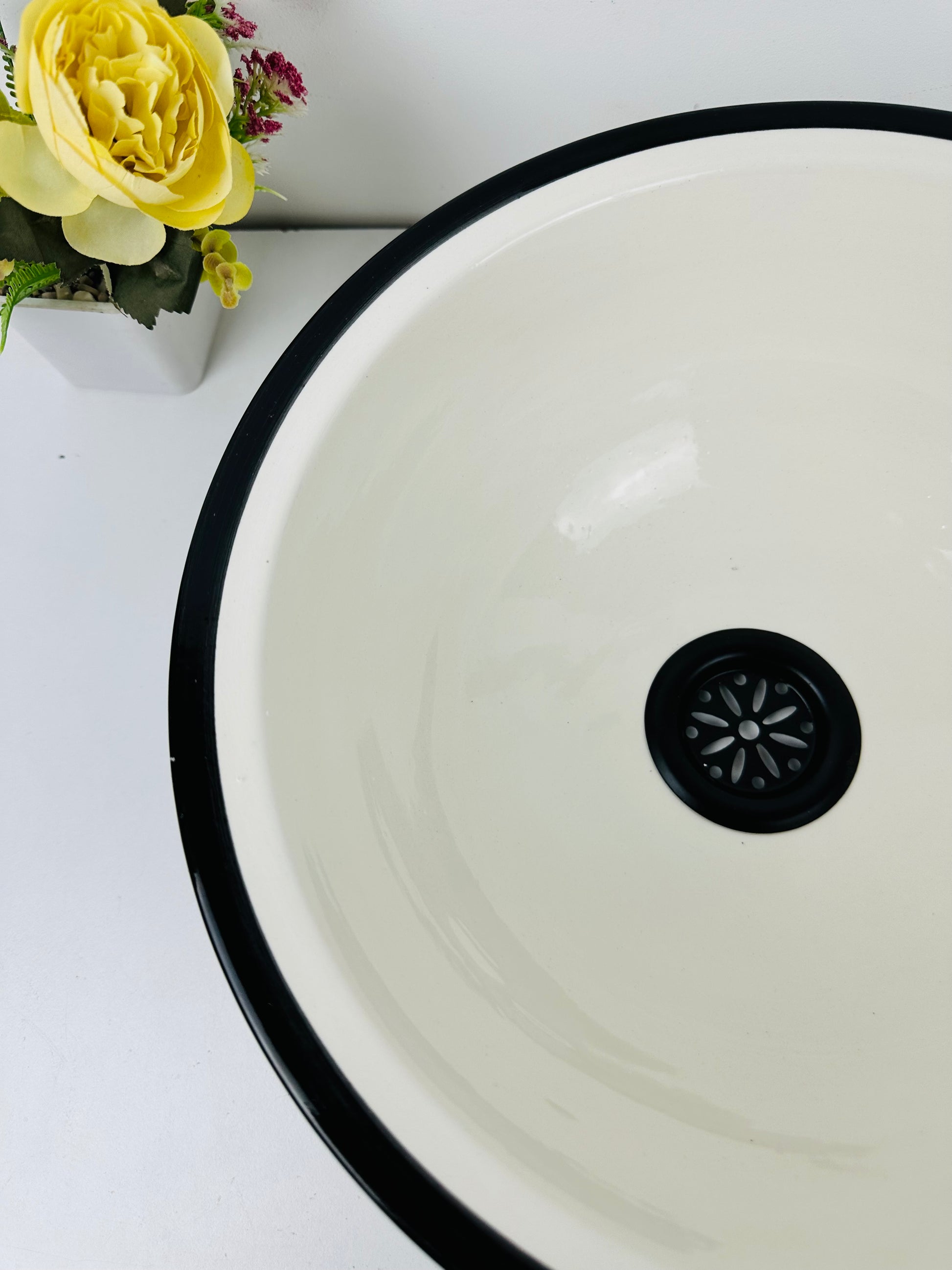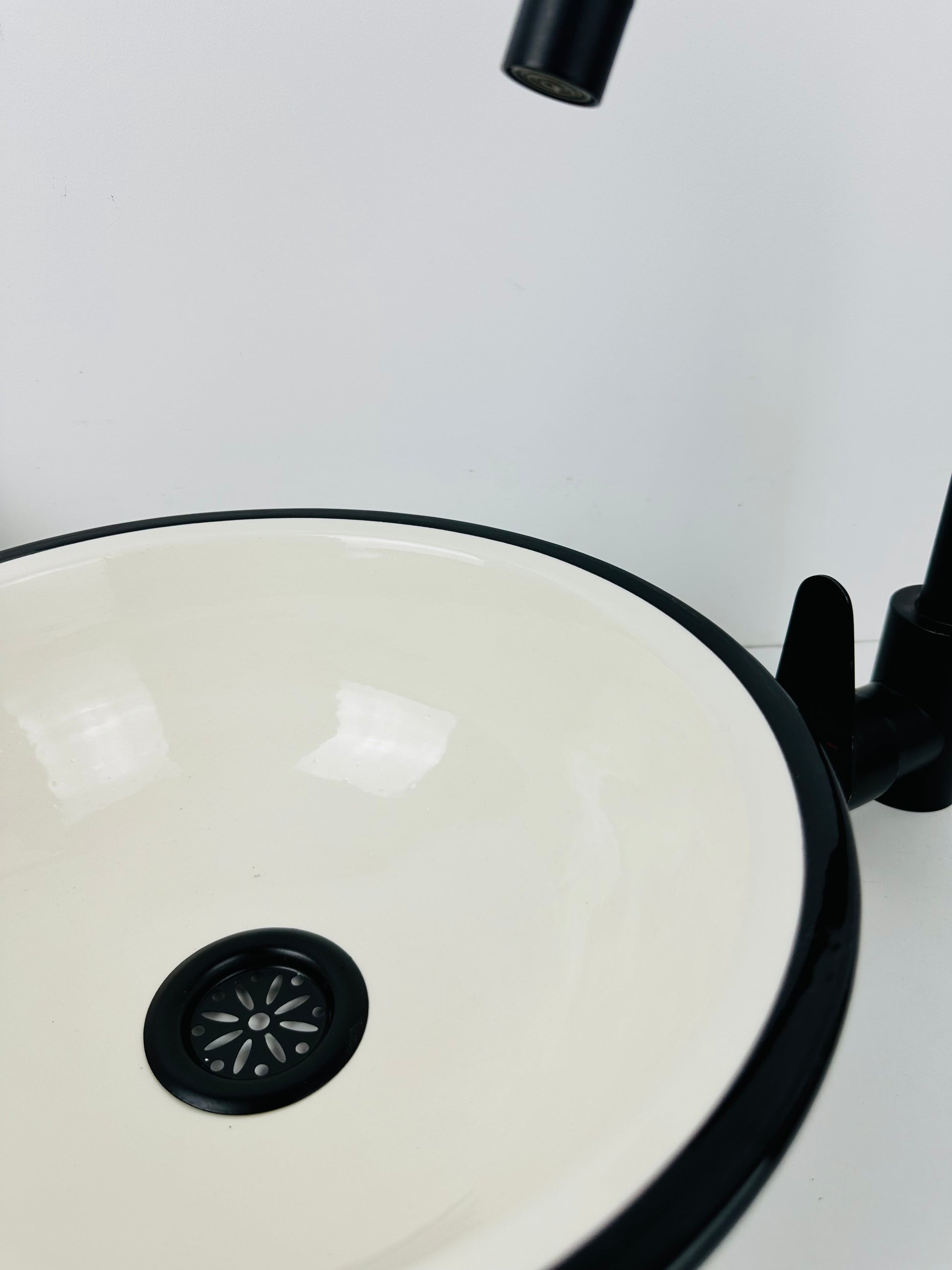 Classic Contrast: Handcrafted Ceramic Sink in Timeless Black and White Design