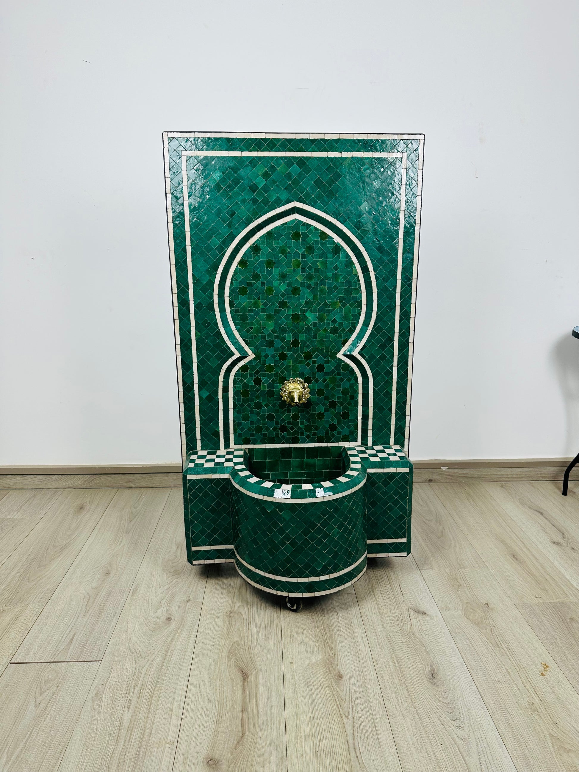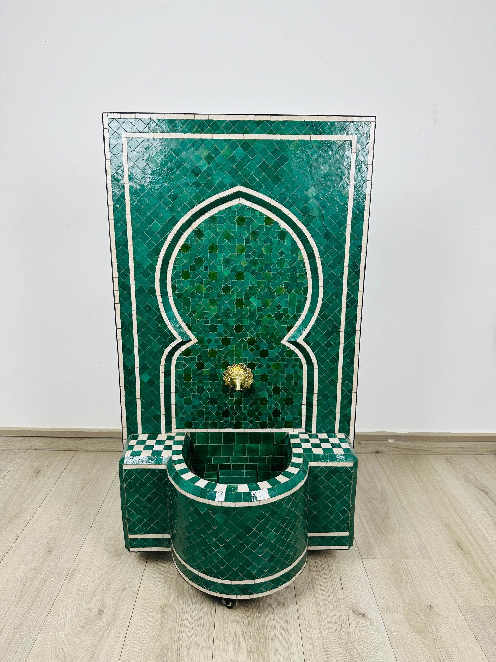 Bring a touch of Moroccan luxury to your home with this handcrafted emerald green Zellige fountain. With its bold geometric arch design and rich green tiles, this fountain is the perfect blend of tradition and sophistication.