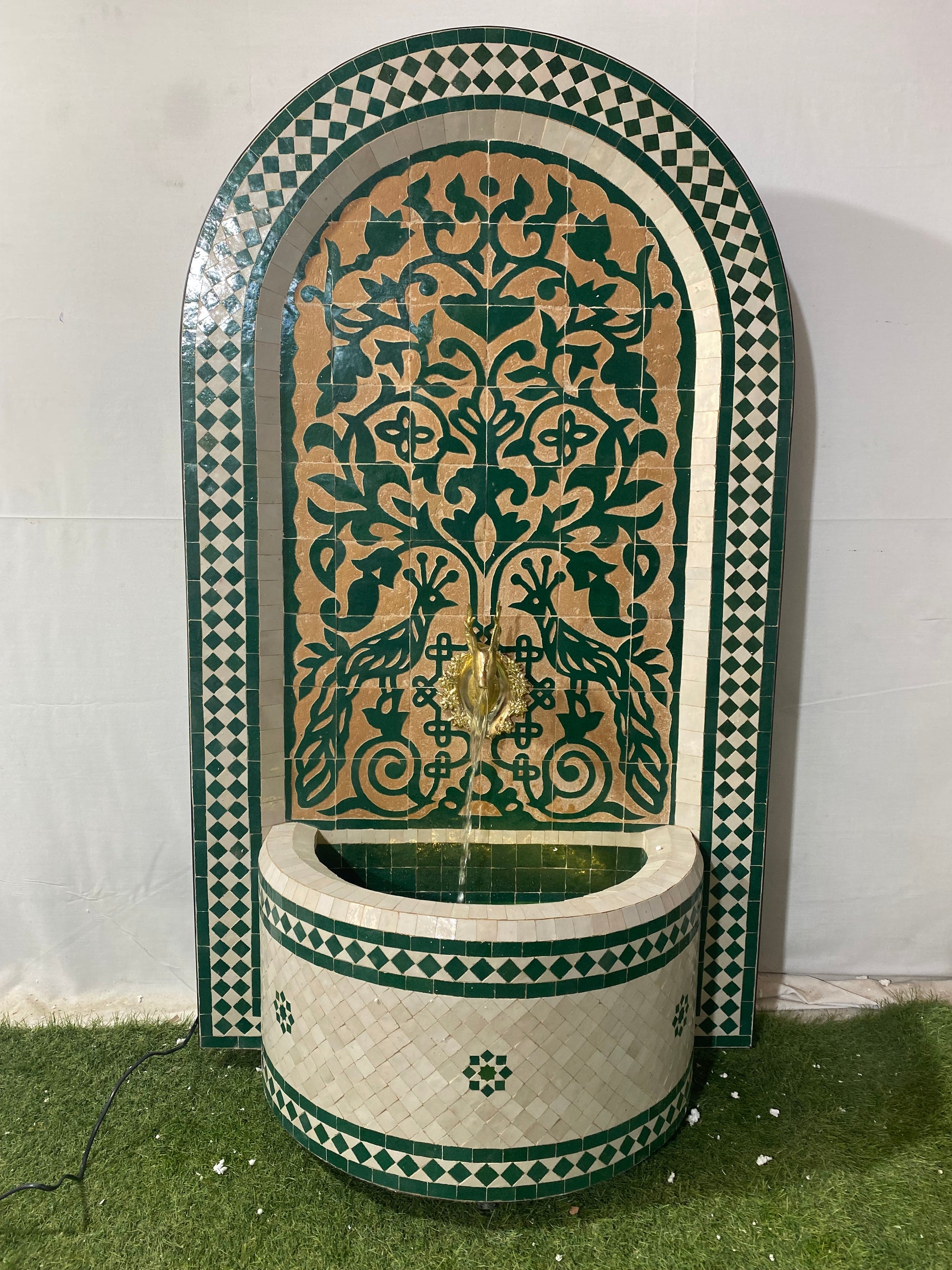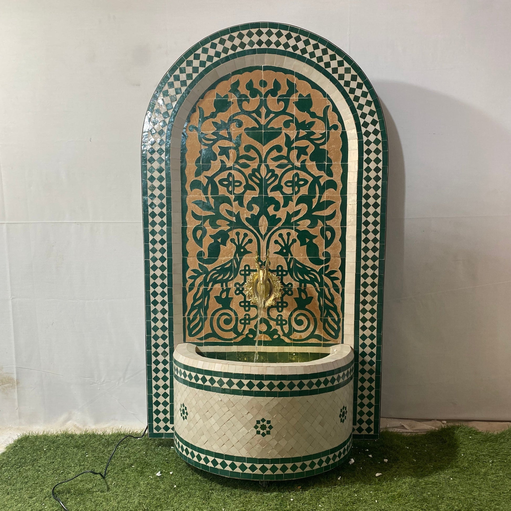 ✔ Intricate Mosaic Artwork: Classic green and beige Moroccan motifs, framed with a beautifully arched border