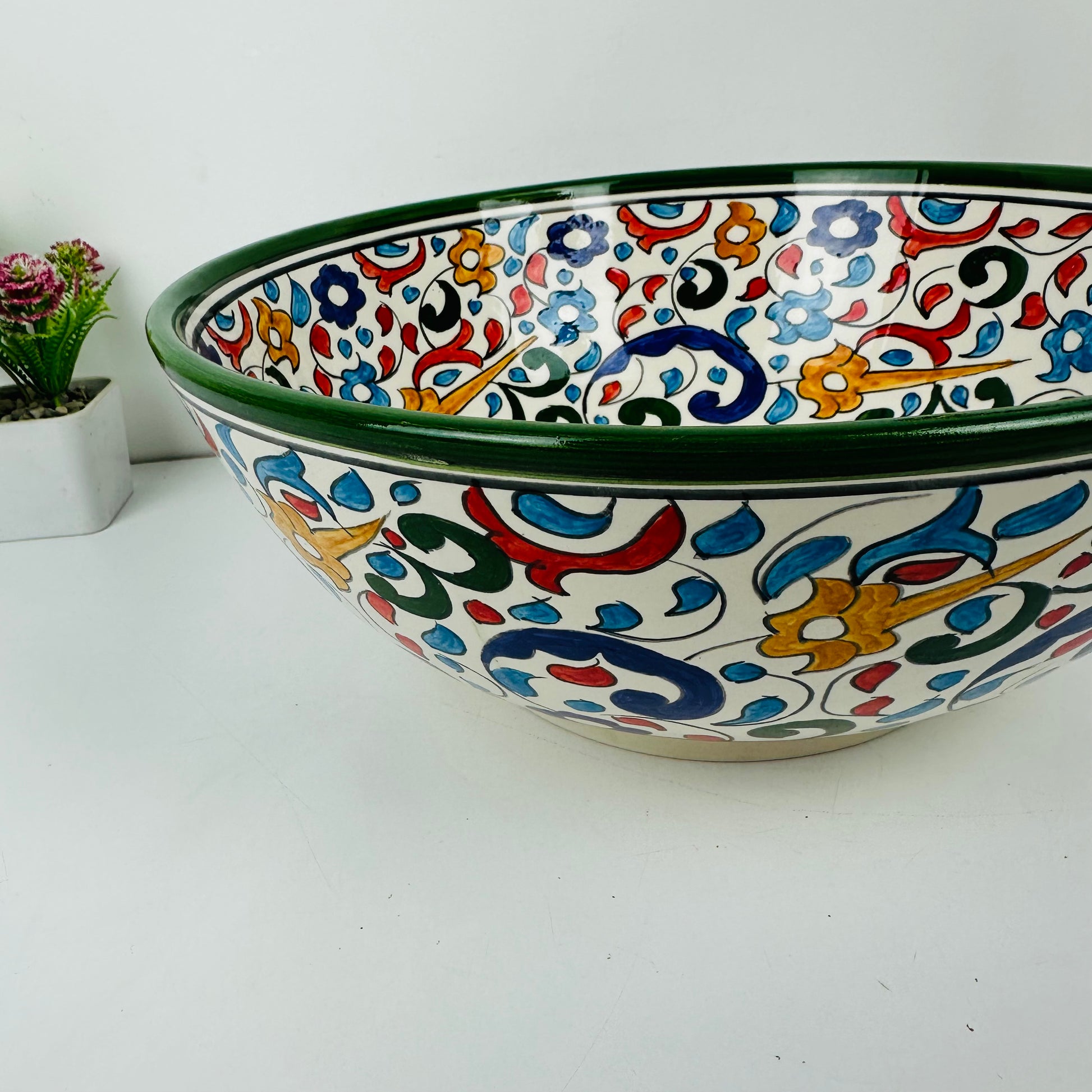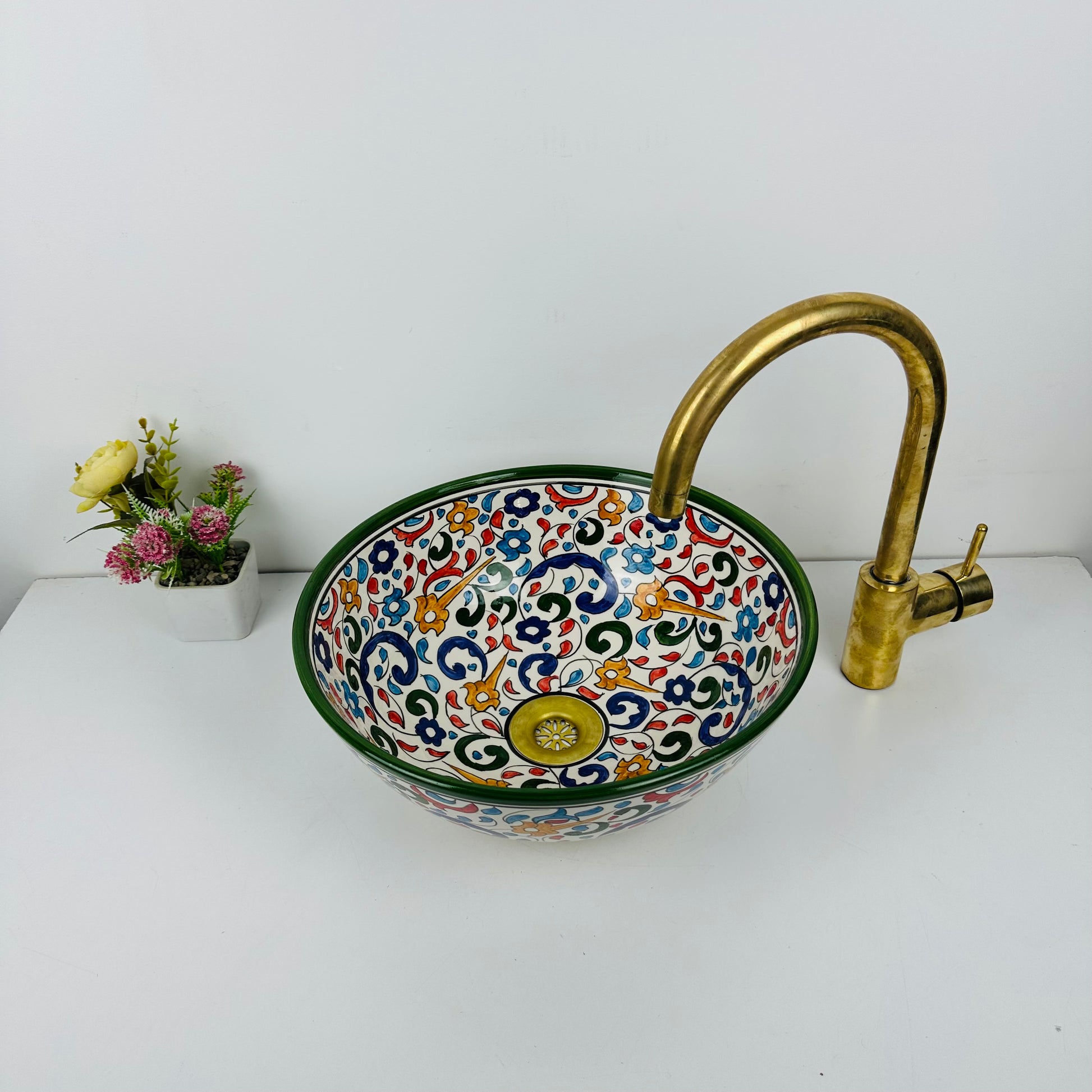 Enchanted Garden: Handcrafted Ceramic Sink with Flower Motifs and Green Finish