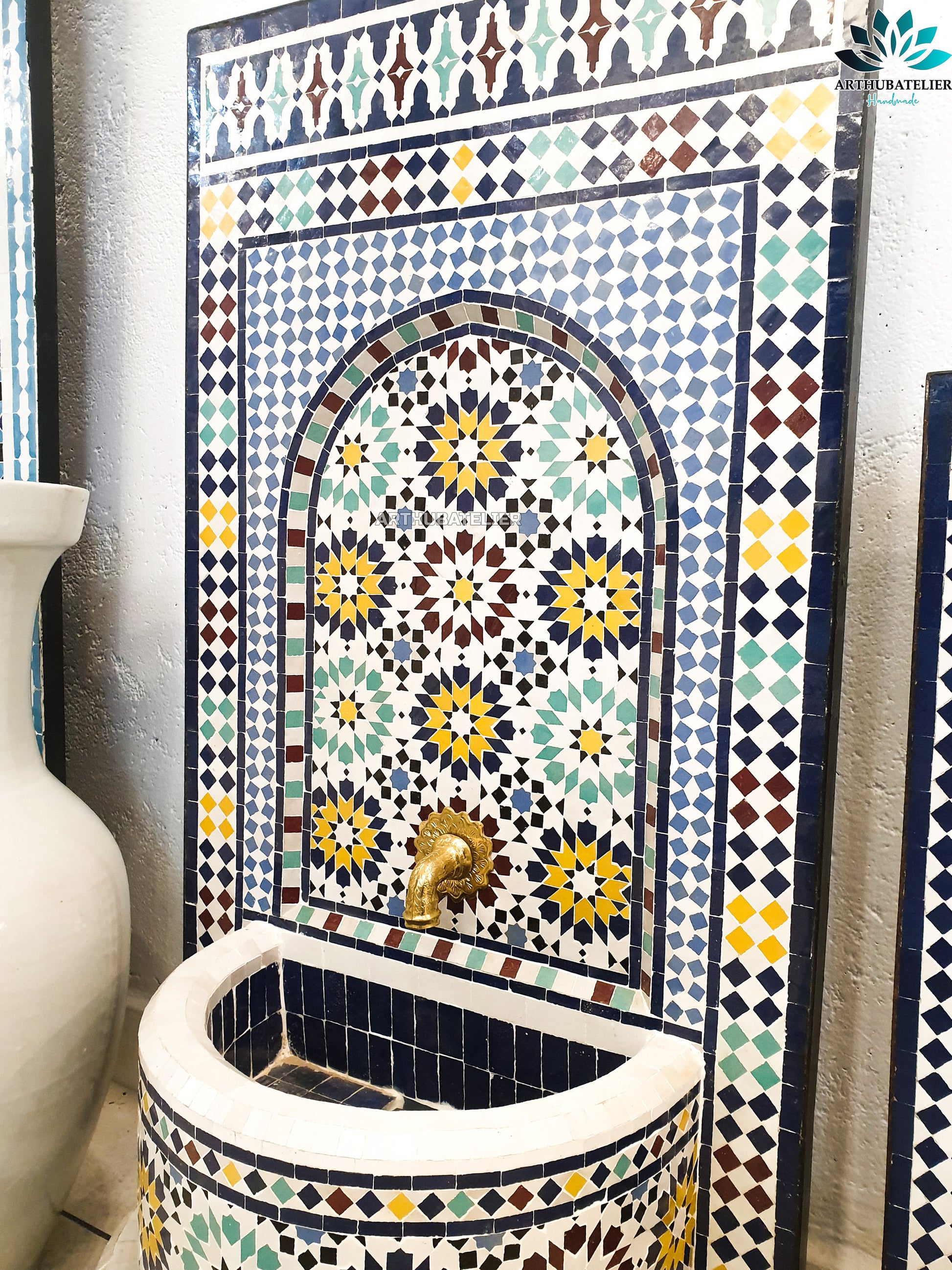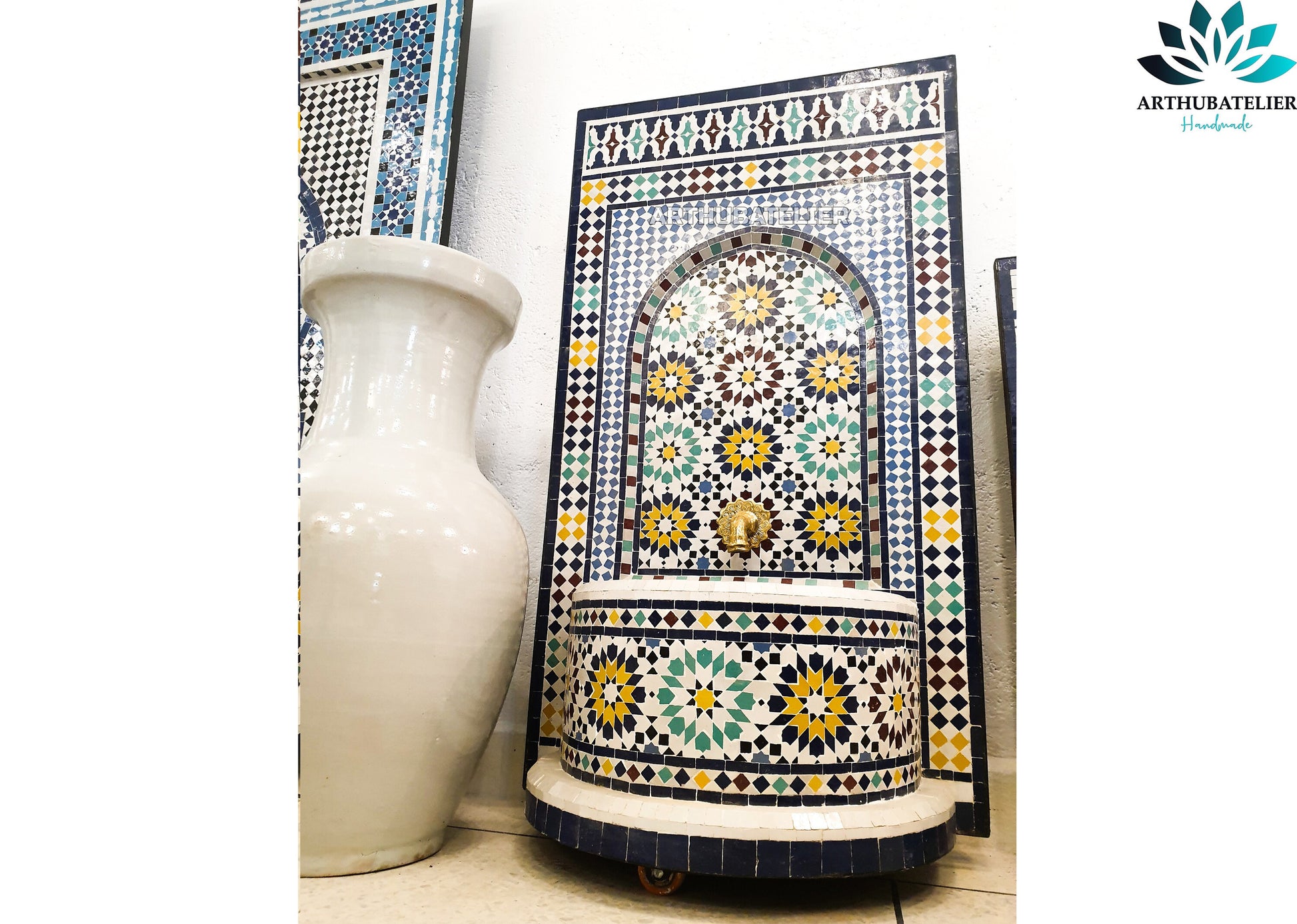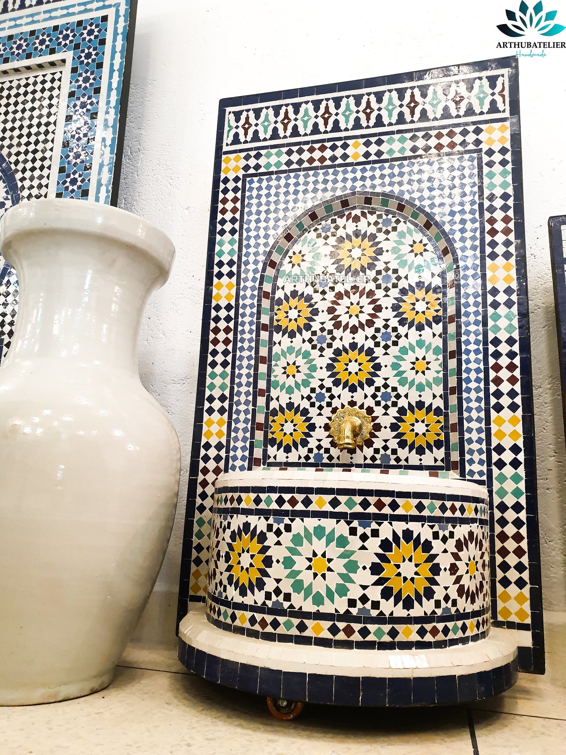 Handmade Moroccan Zellige Fountain – Classic Multicolor Mosaic