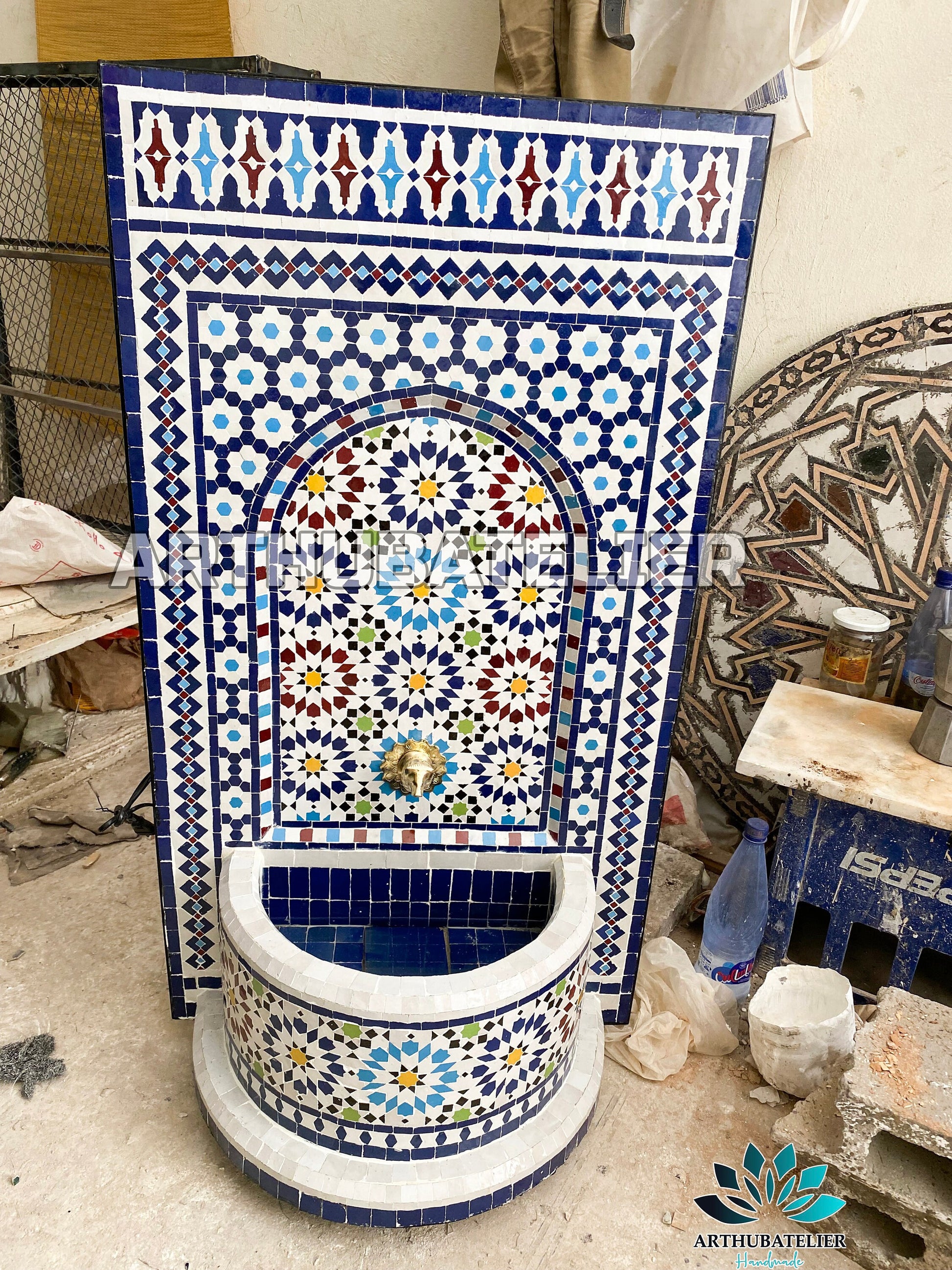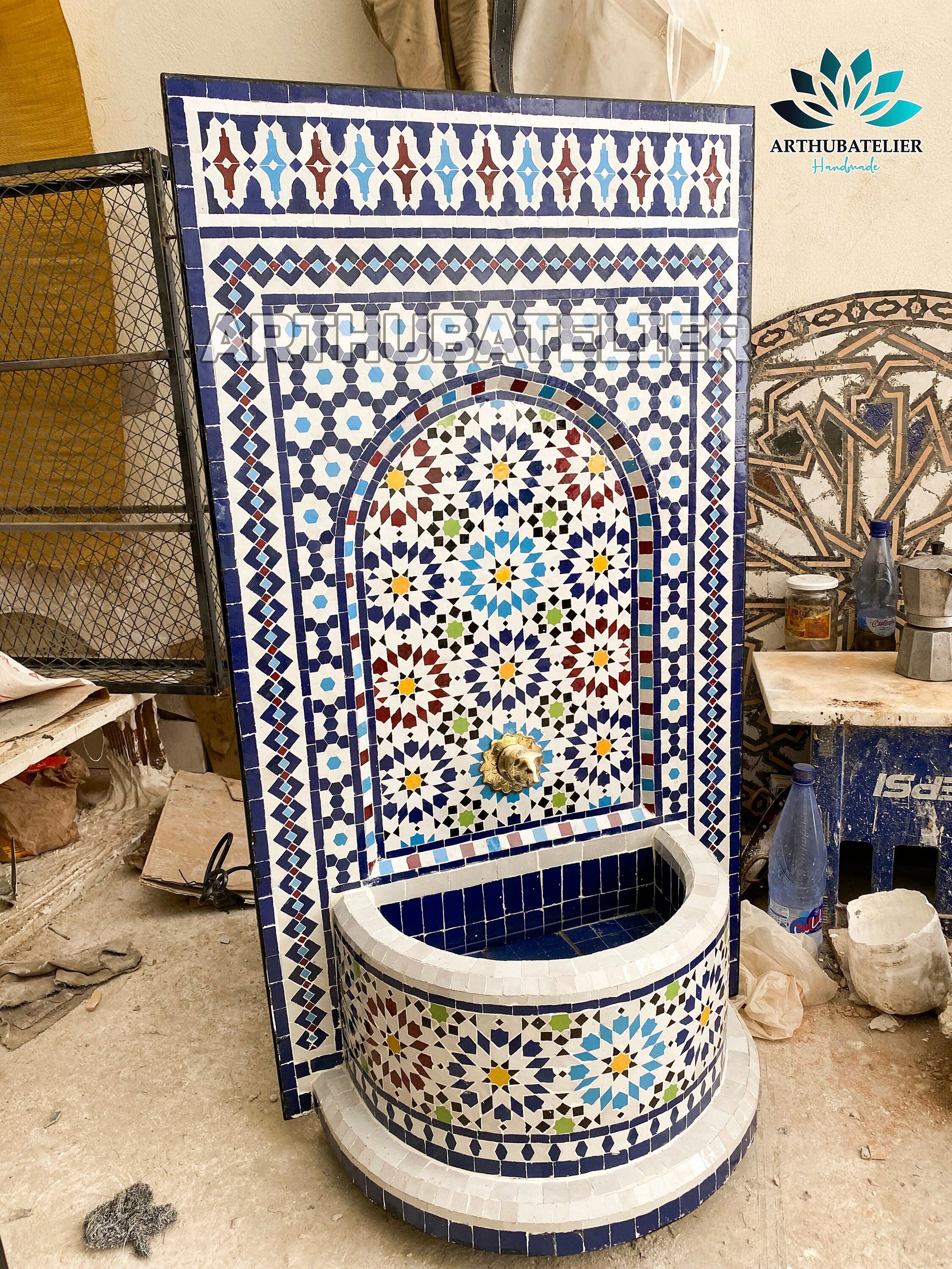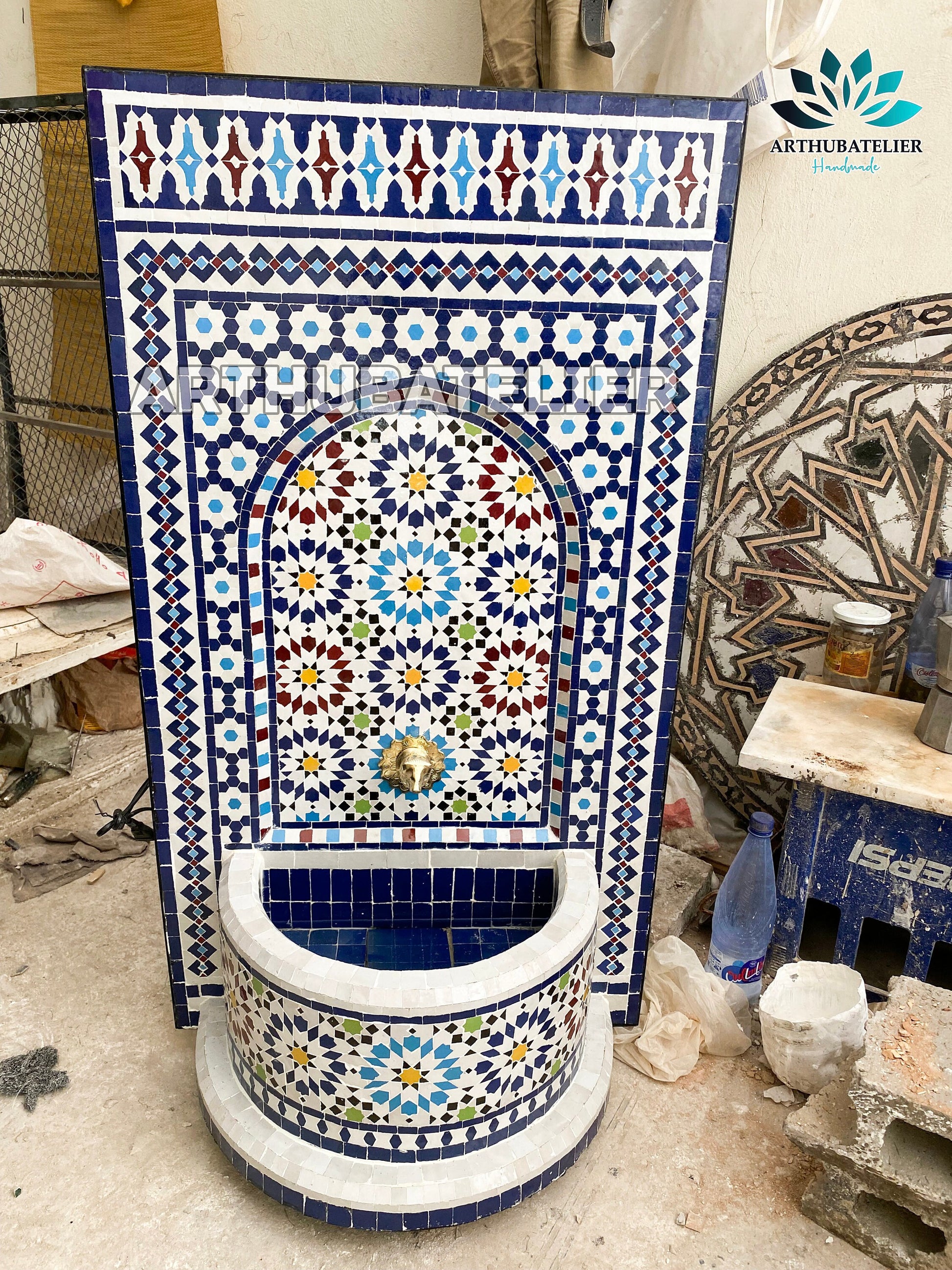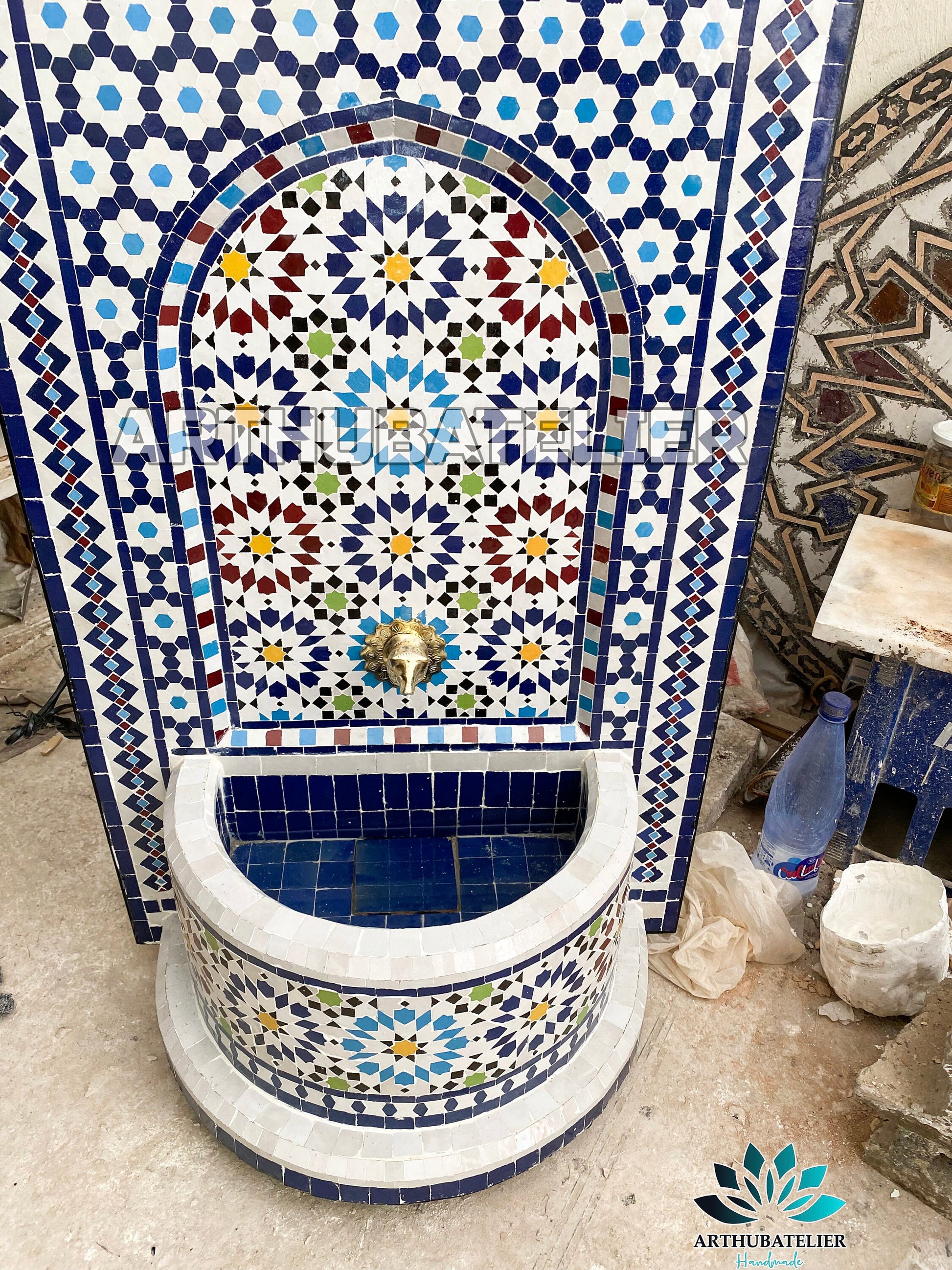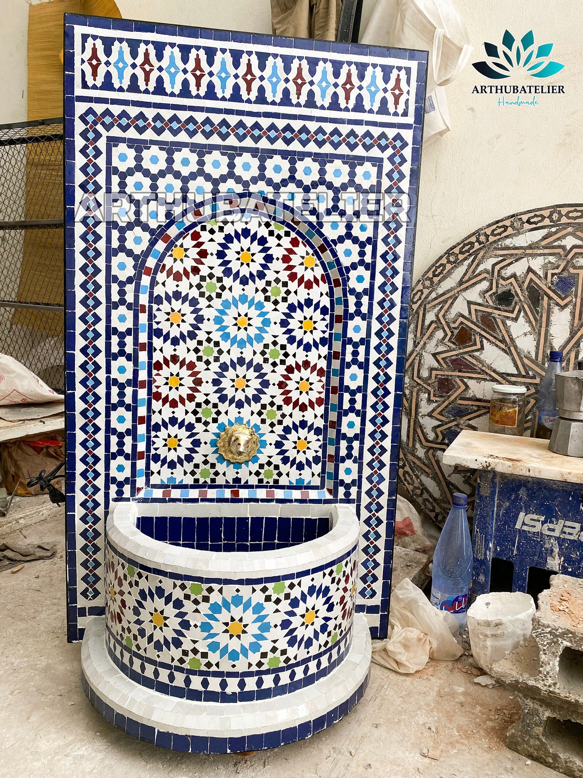 Handmade Moroccan Zellige Fountain – Authentic Mosaic Water Feature