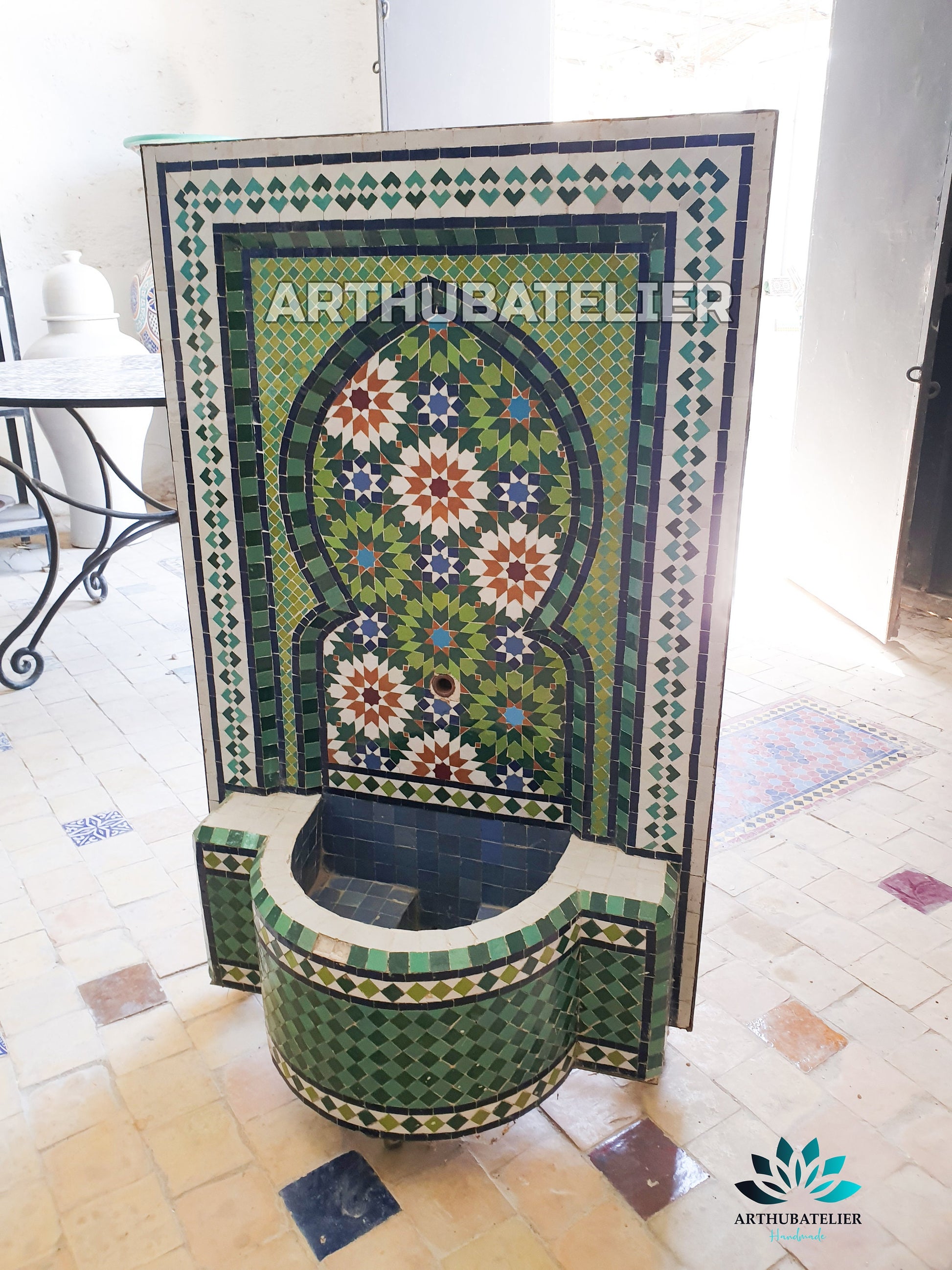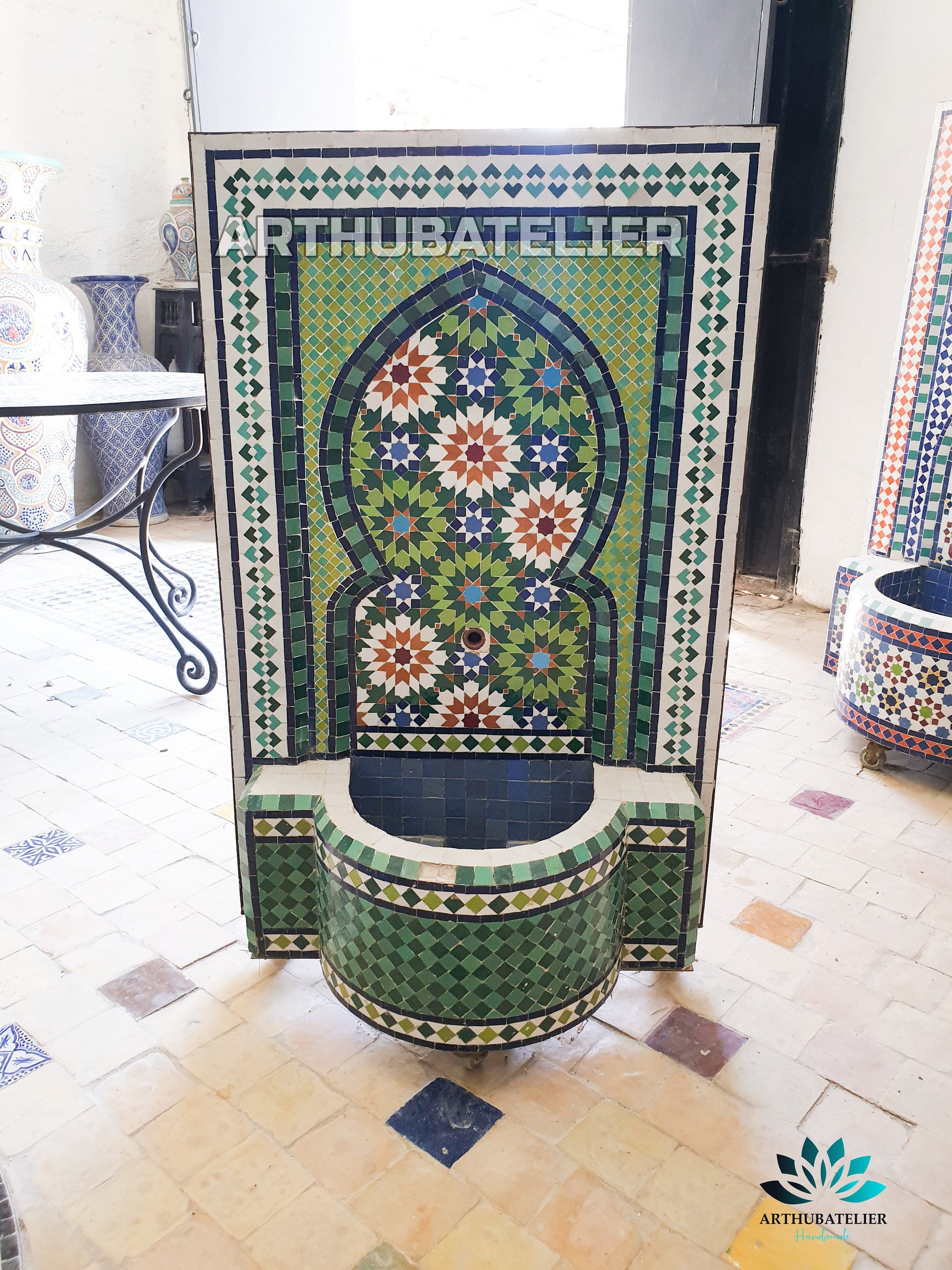 Handcrafted Moroccan Zellige Fountain – Vibrant Green & Mosaic Design