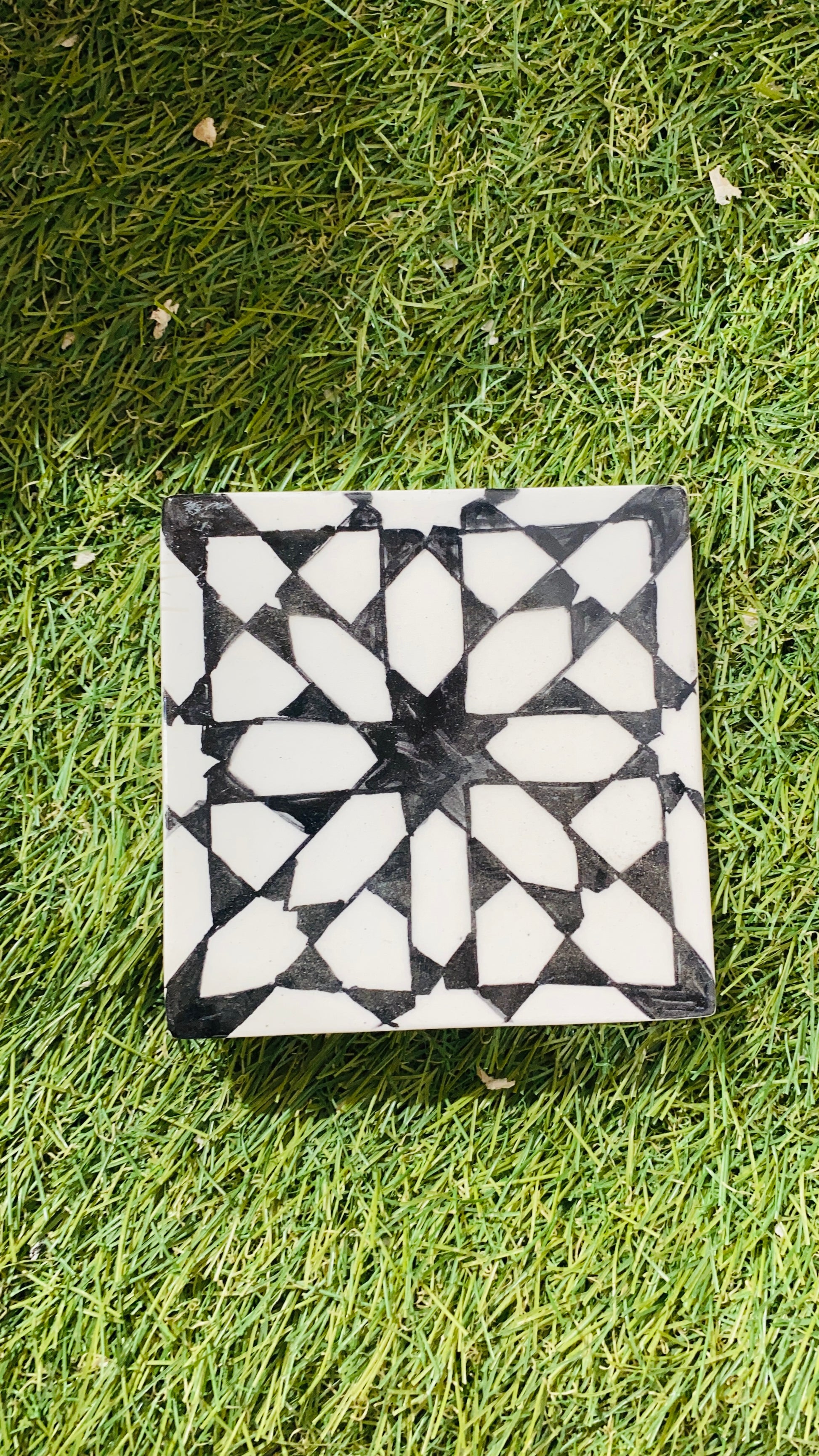 ✨ Bring an air of sophistication to your interiors with this timeless black-and-white Moroccan tile. Contact us for custom orders today!