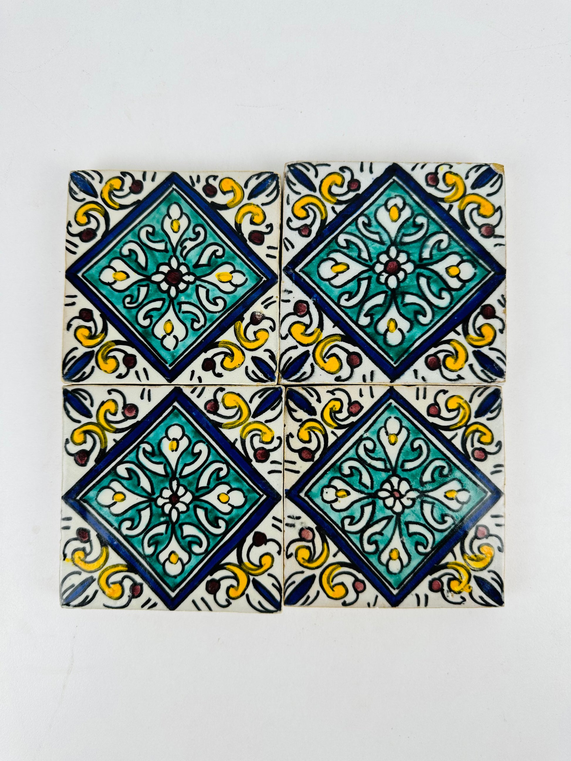 Hand-Painted Moroccan Floral Diamond Tile Set