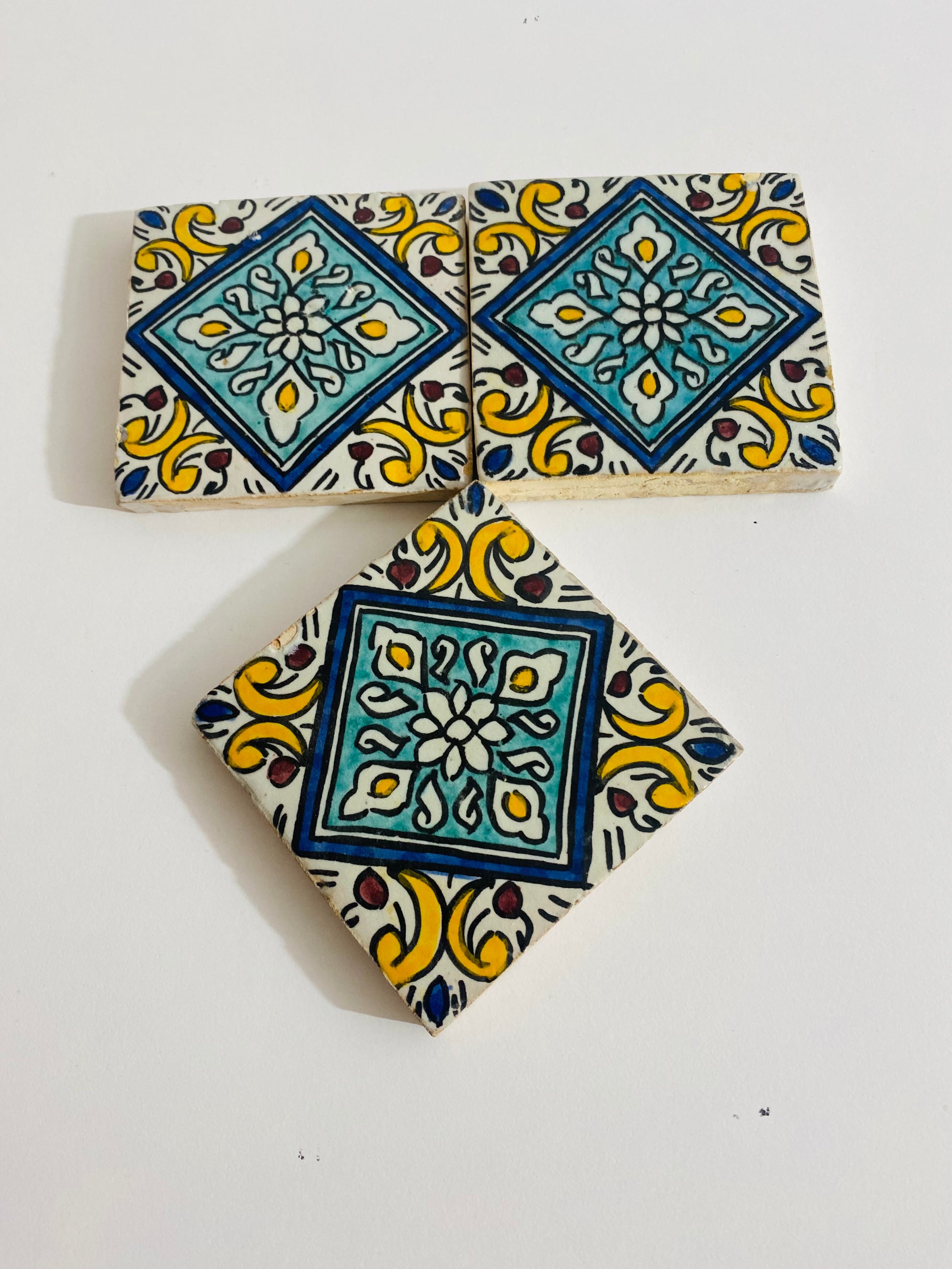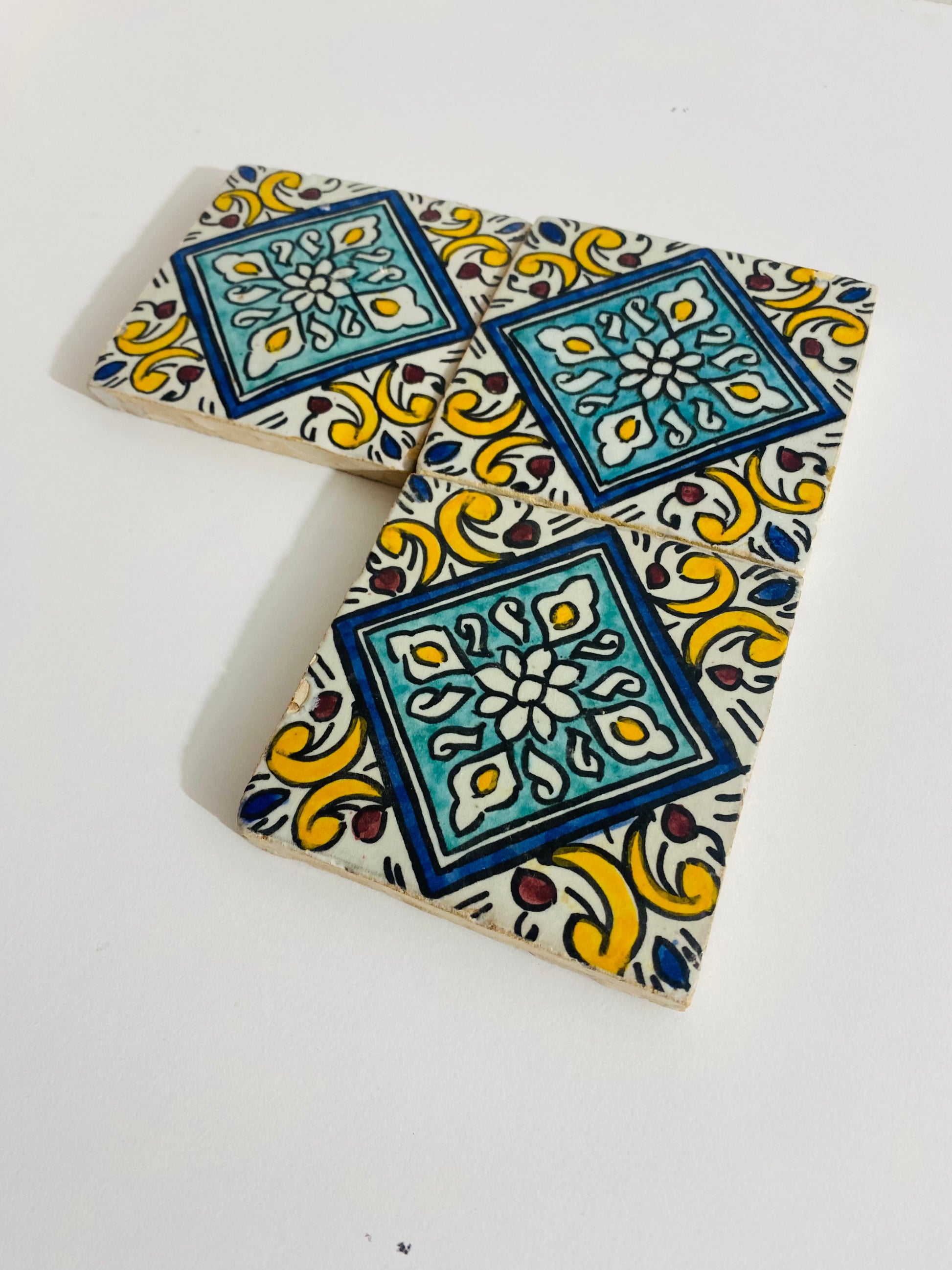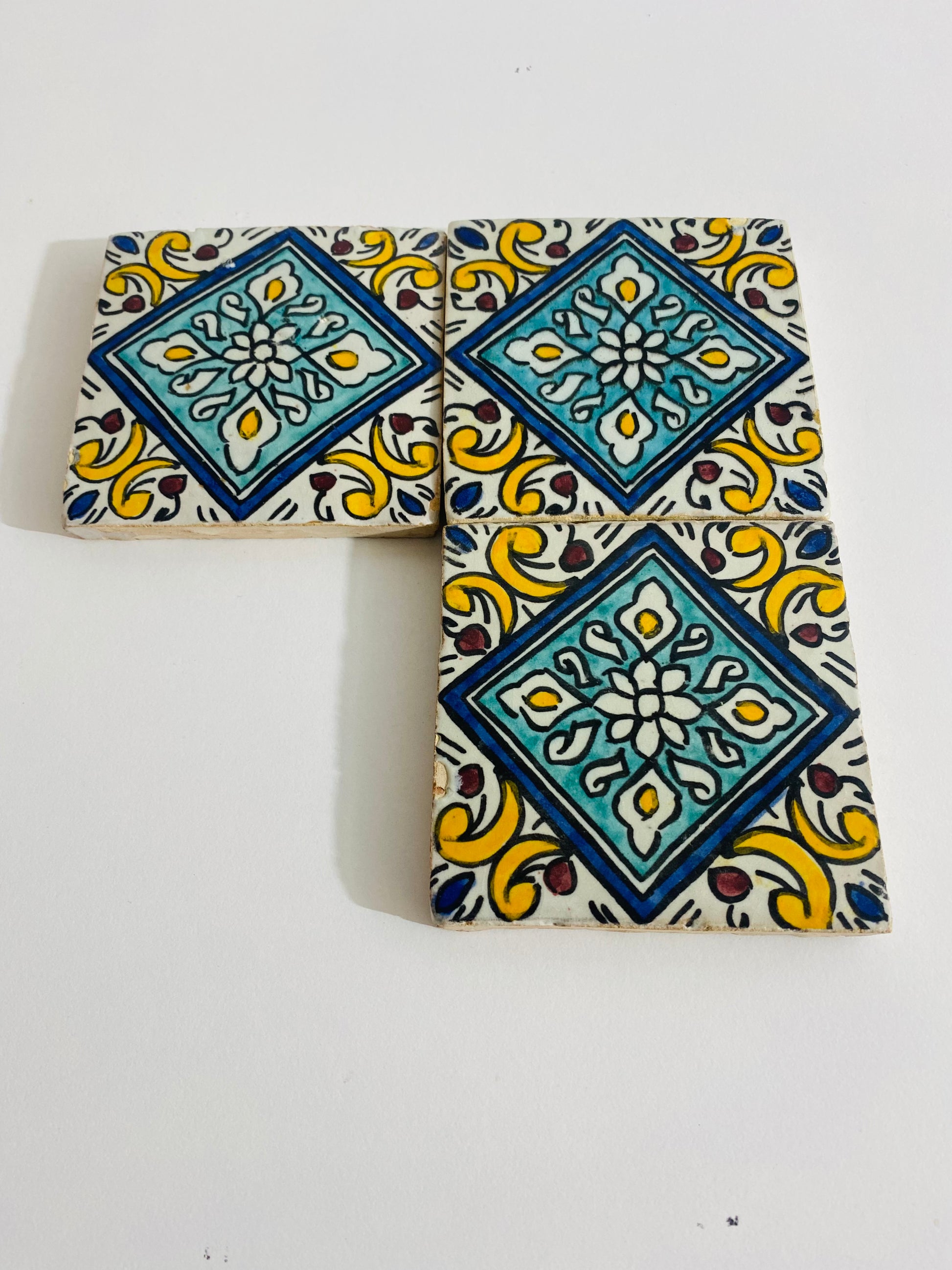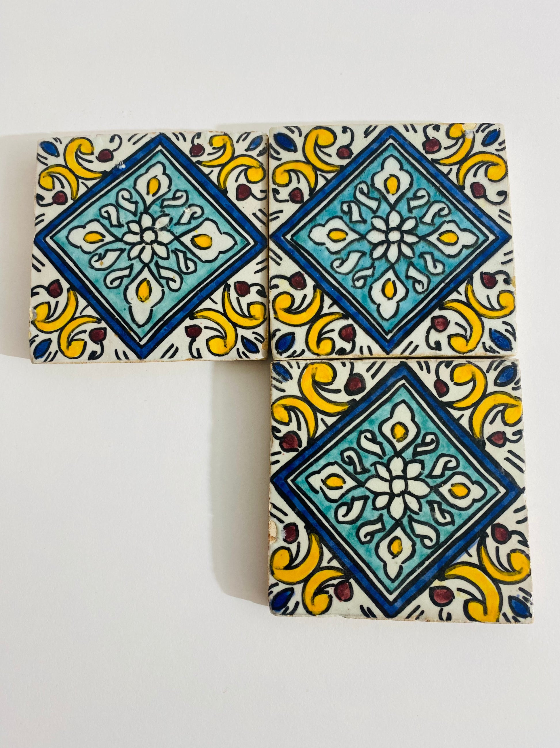 Hand-Painted Moroccan Ceramic Tiles – Blue & Yellow Floral Design