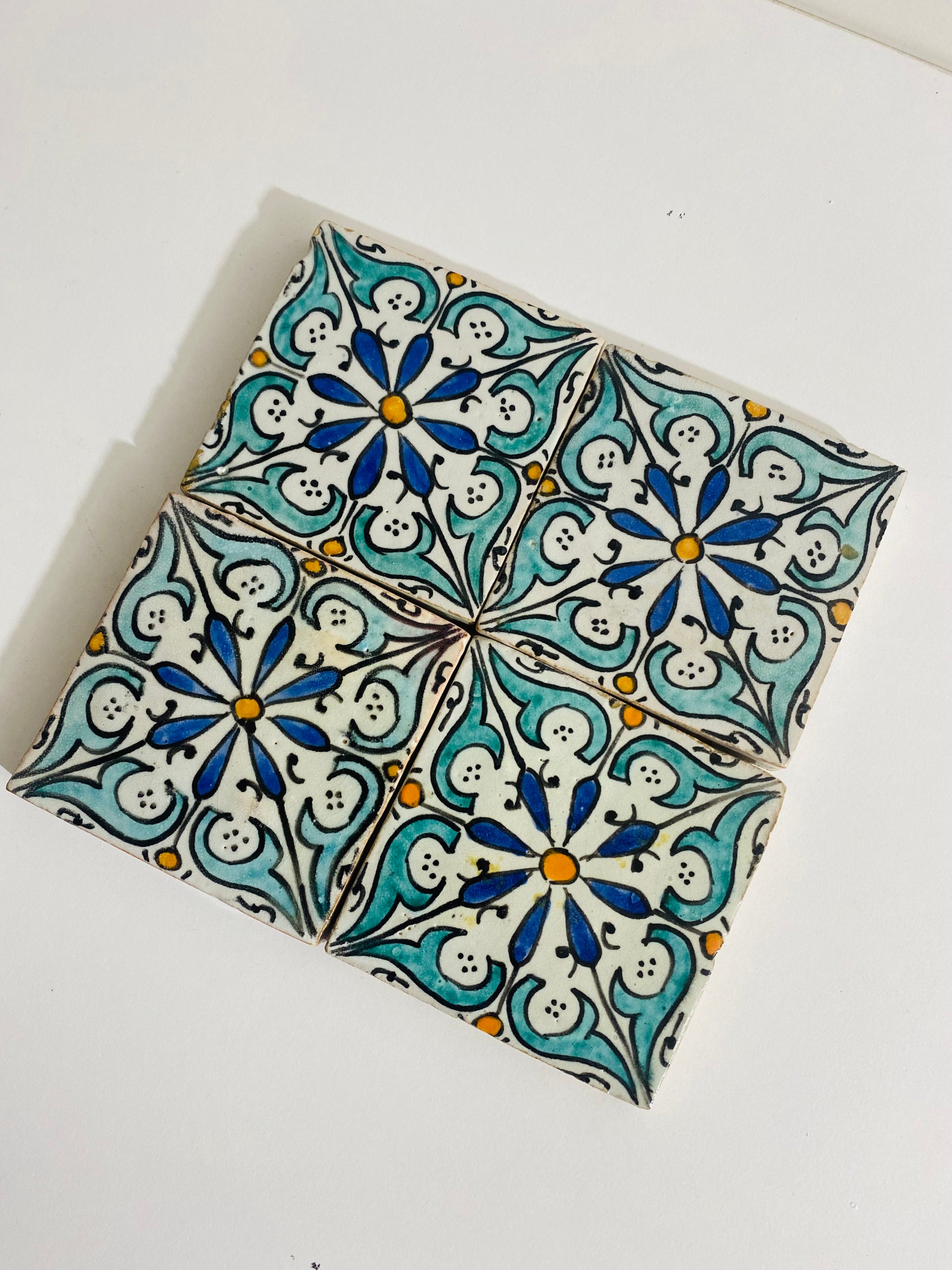 The Hand-Painted Moroccan Floral Elegance Tile is a breathtaking tribute to traditional Moroccan tile artistry, featuring a delicate floral motif that radiates balance and grace. With its intricate blue, yellow, and teal swirls set against a soft white background, this tile brings a refreshing and elegant aesthetic to any space. Each piece is hand-glazed and painted by skilled Moroccan artisans, making every tile unique and filled with character.