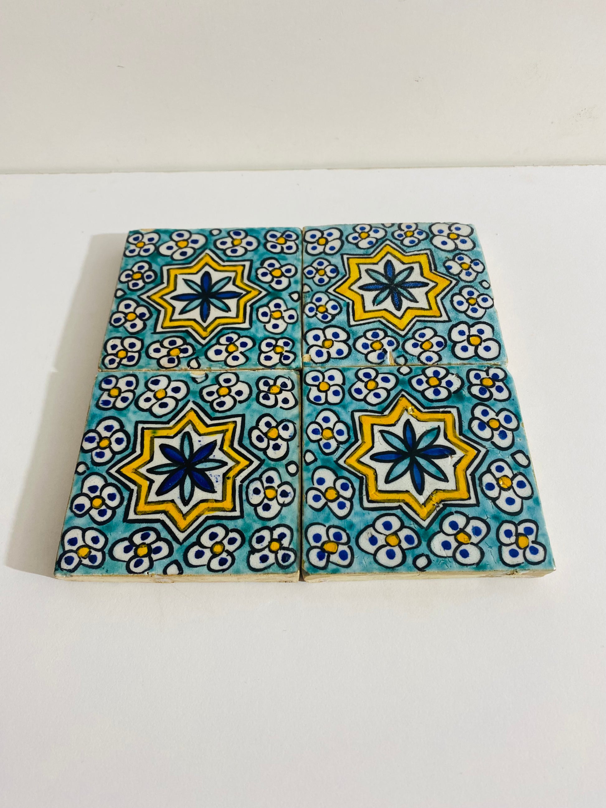 The Hand-Painted Moroccan Starry Bloom Tile is a mesmerizing fusion of traditional artistry and floral elegance. Showcasing an eight-pointed star motif at its heart, surrounded by delicate white blossoms on a rich turquoise background, this tile brings a sense of harmony and warmth to any interior. Its intricate hand-glazed detailing and vibrant colors reflect the timeless beauty of Moroccan craftsmanship, making it a perfect addition to walls, kitchen backsplashes, fireplaces, or tabletops.
