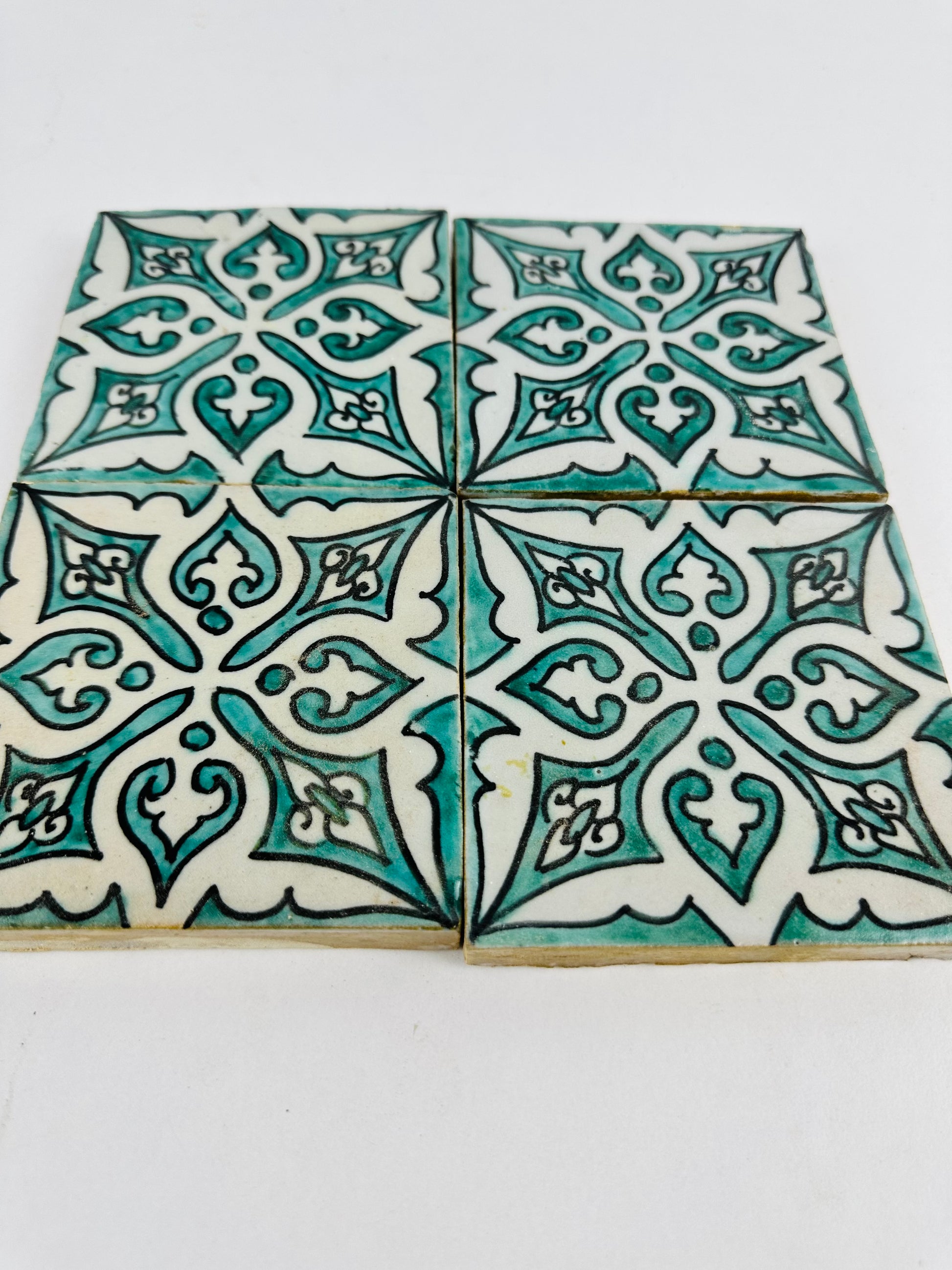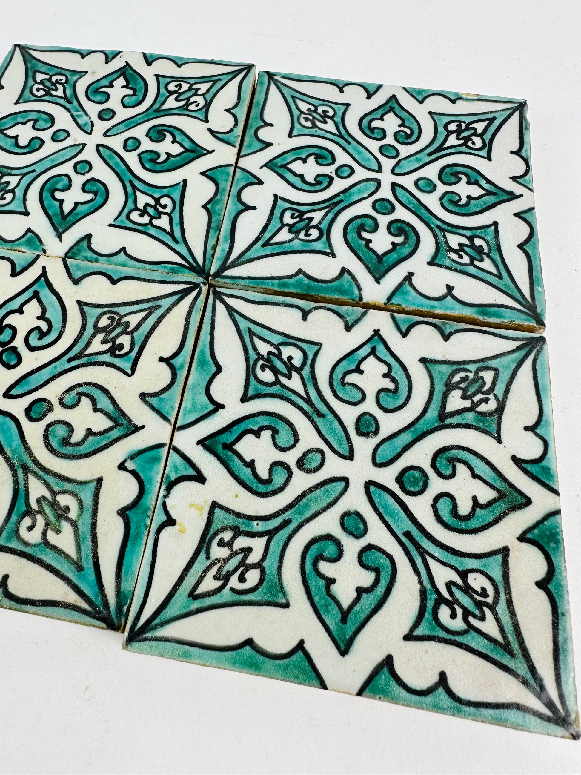 The Hand-Painted Moroccan Emerald Elegance Tile is a true representation of classic Moroccan geometry with its intricate floral-inspired motifs and symmetrical design. Featuring rich emerald green tones against a soft white background, the graceful curves and delicate detailing evoke the grandeur of Moorish palaces. The aged glaze finish adds a timeless charm, making this tile an exquisite choice for both vintage and contemporary spaces.