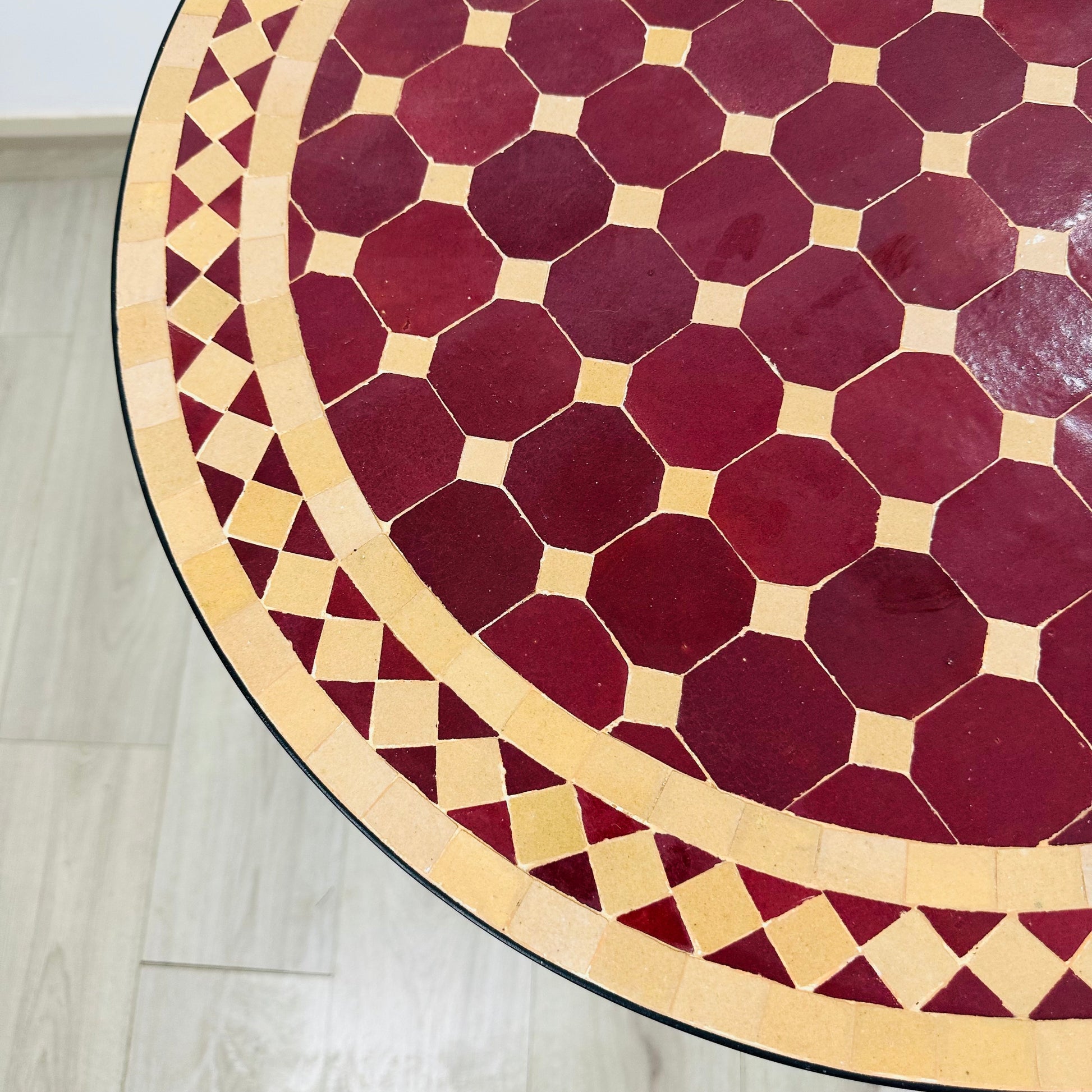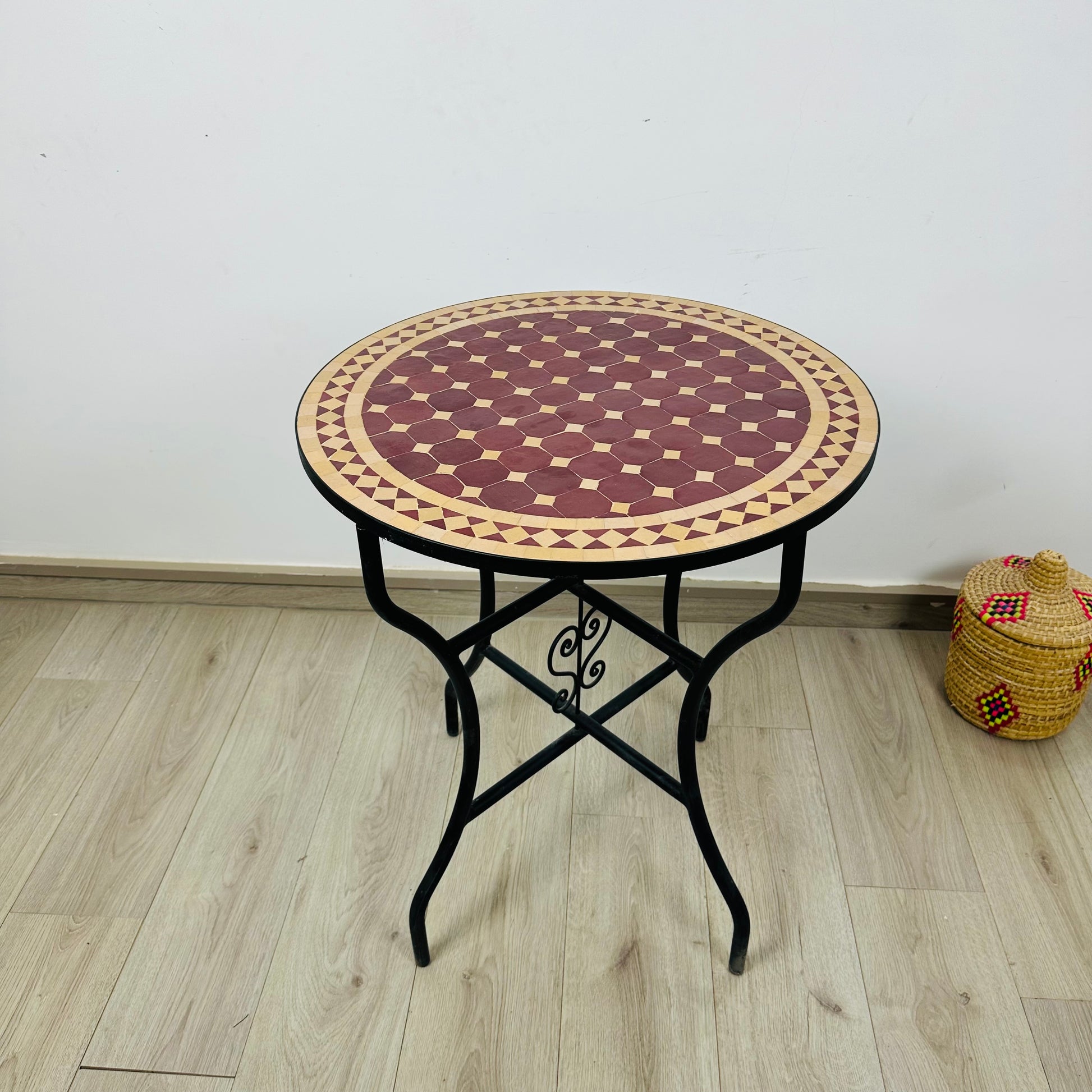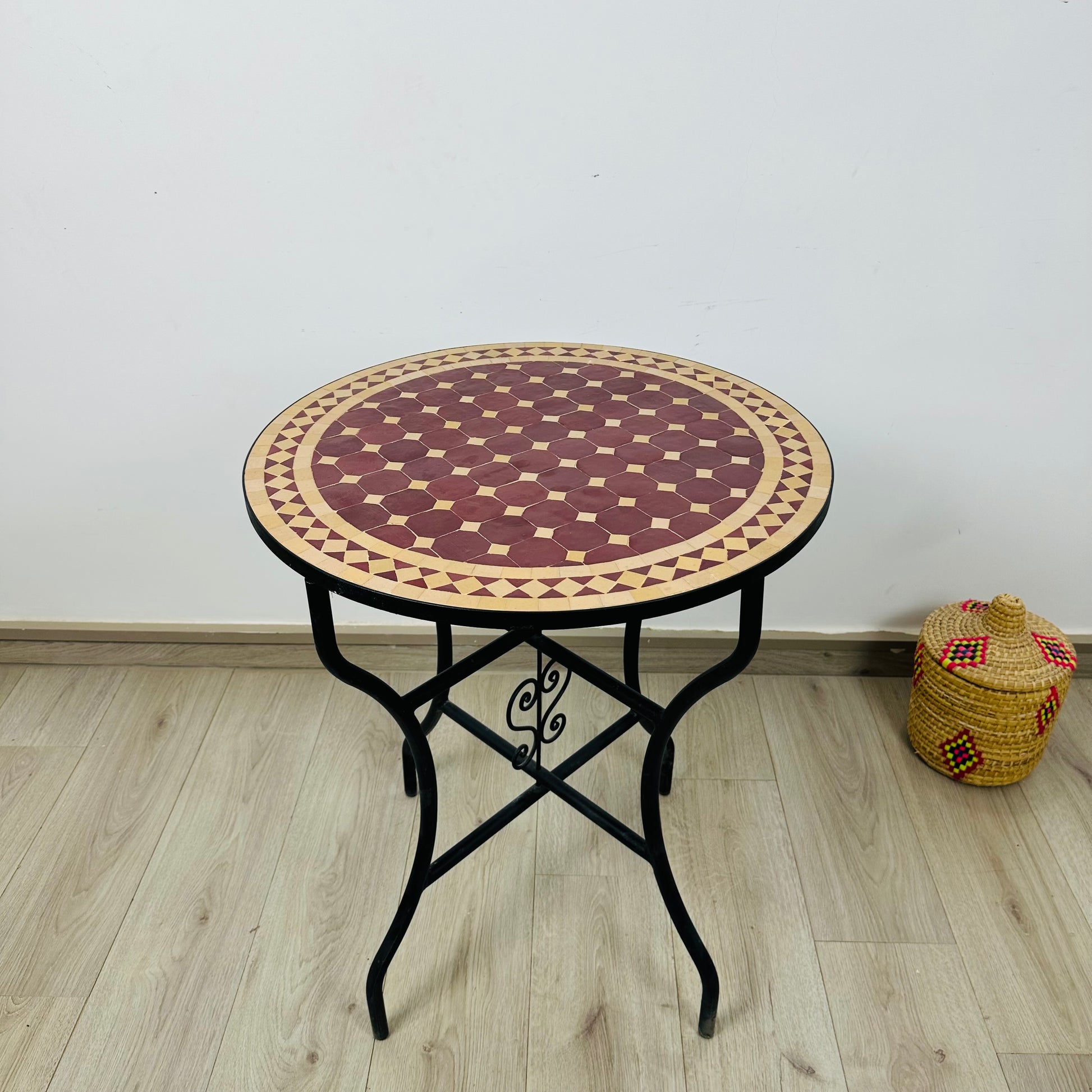 - TABLES : Mosaic, tiles, Clay, Iron, legs cap, metal base.