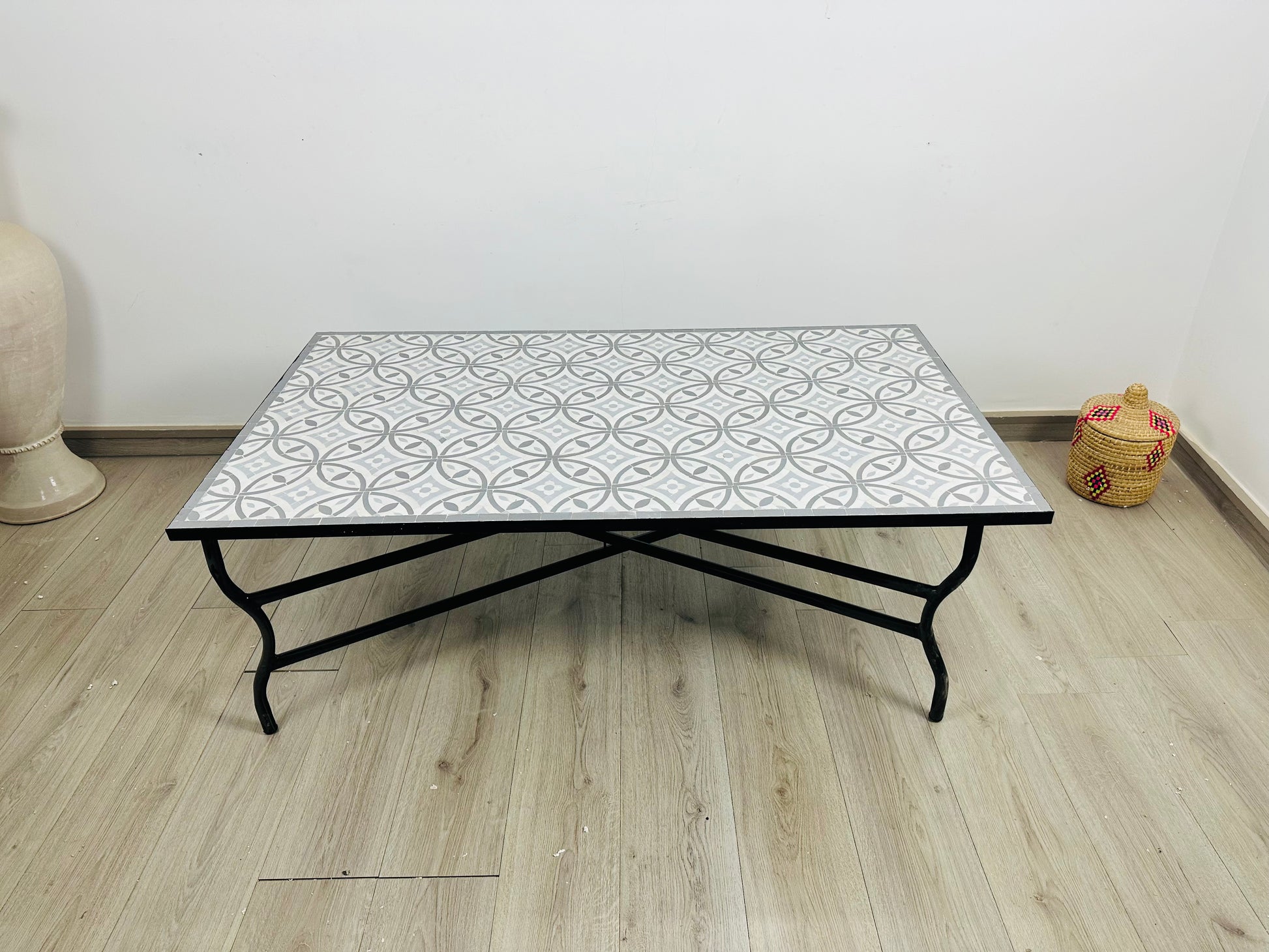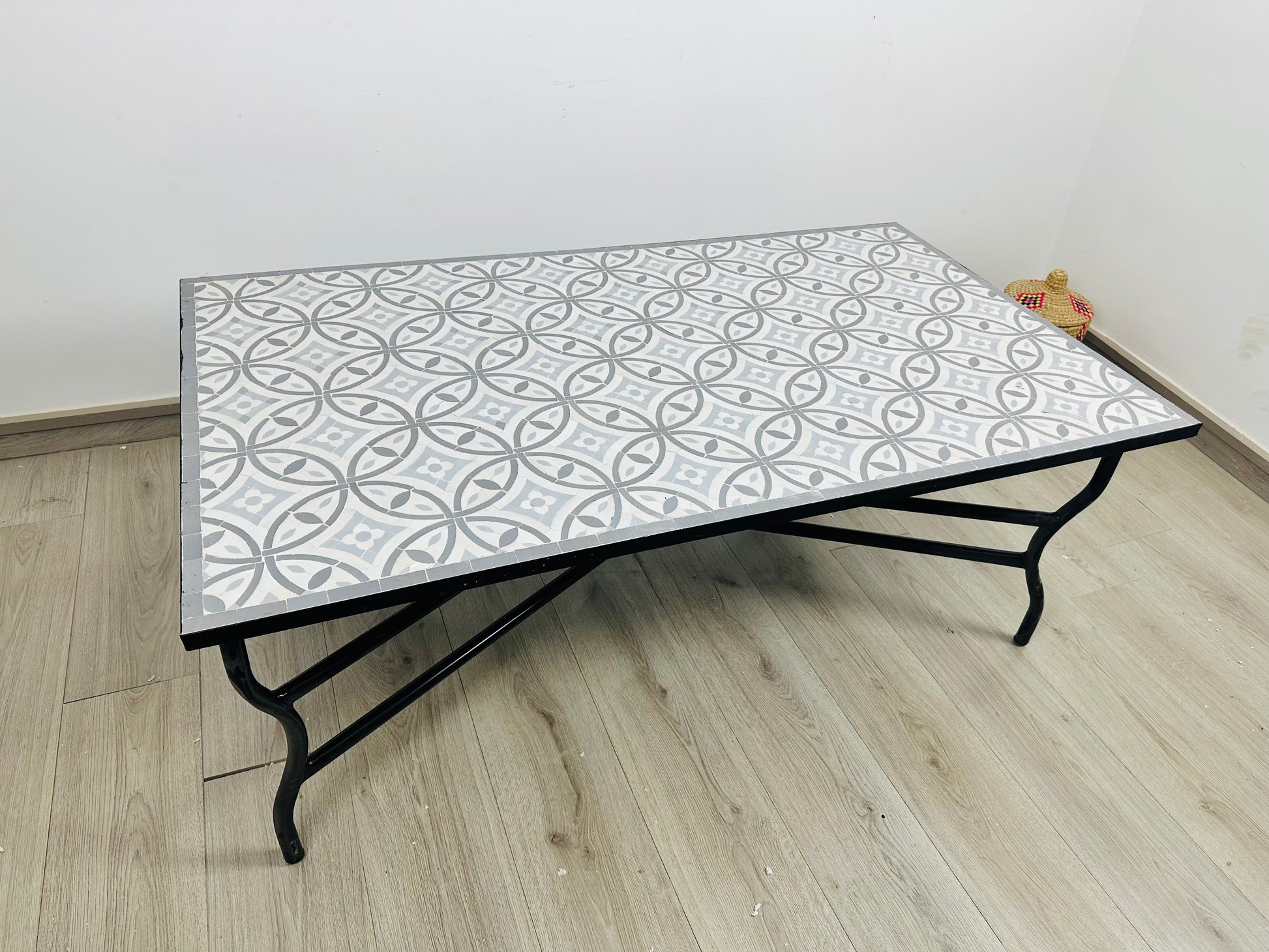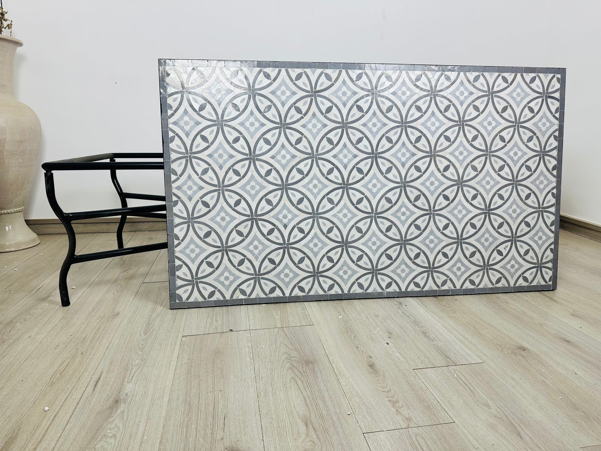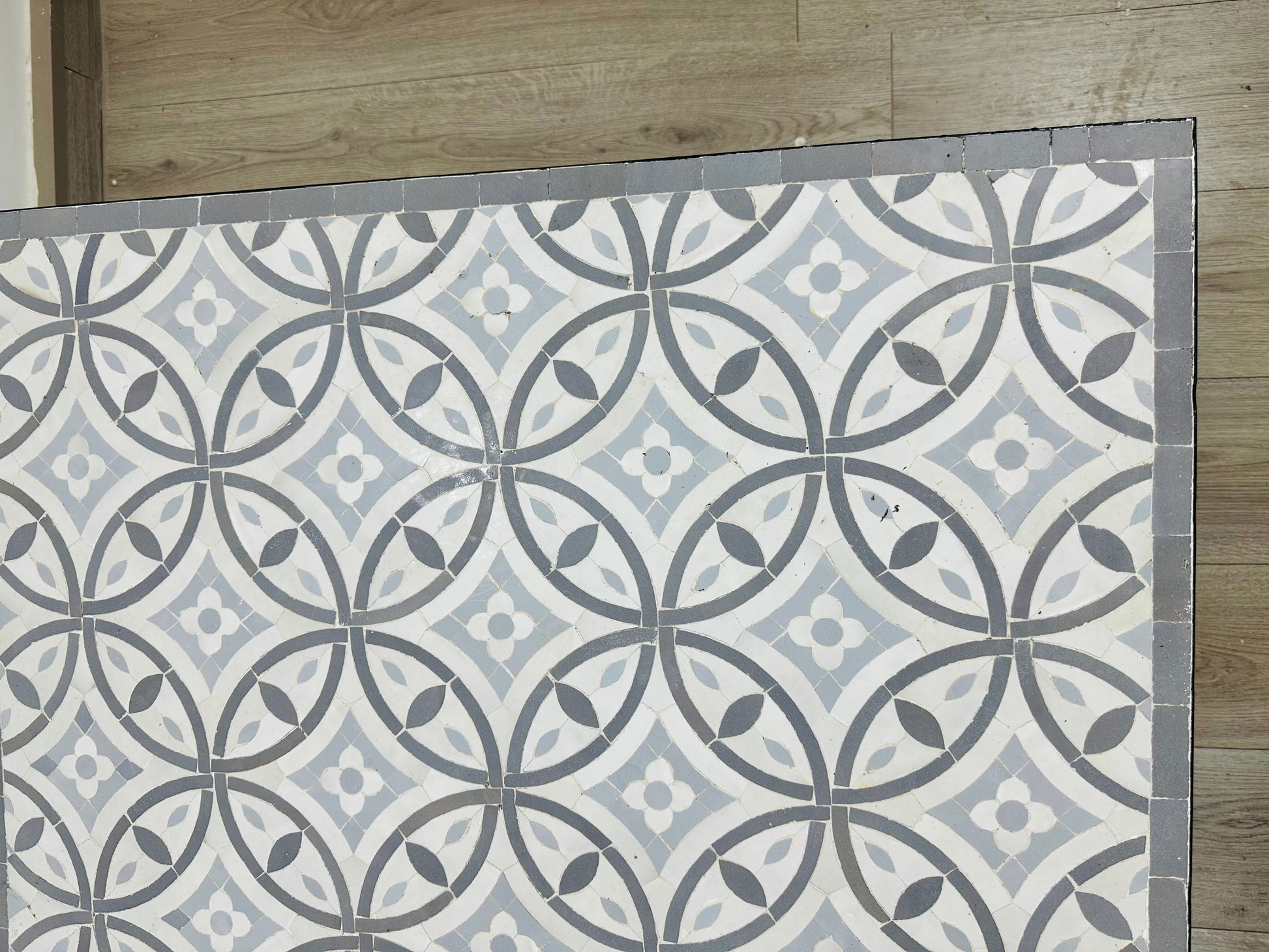 This Moroccan Zellige mosaic table blends traditional craftsmanship with a modern monochrome aesthetic. The intricate yet subtle geometric floral pattern in shades of white and gray creates a refined and minimalist look, perfect for both classic and contemporary spaces. Whether used as a dining table, coffee table, or accent piece, this handcrafted mosaic masterpiece adds timeless elegance to any setting.