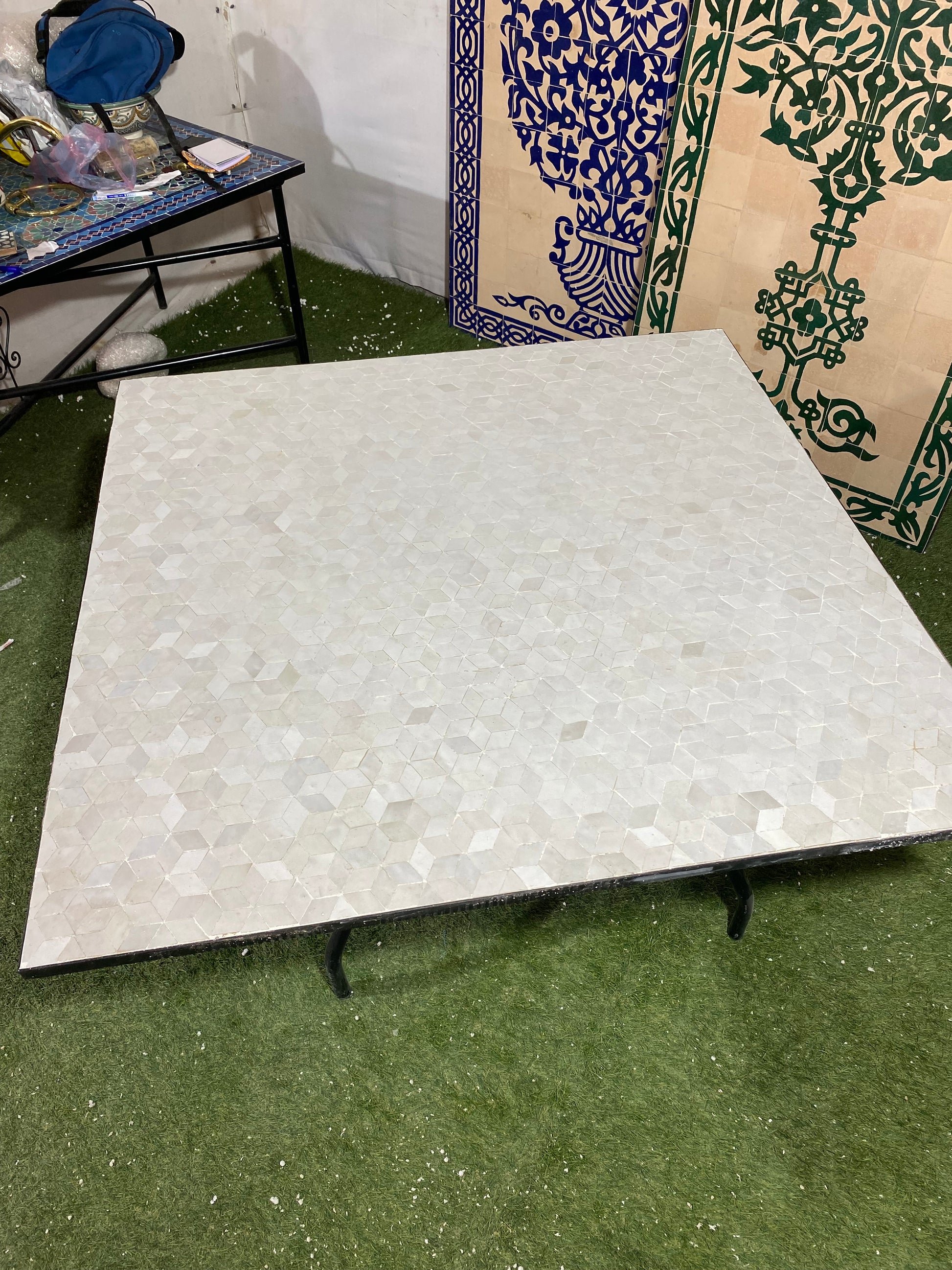 Handmade Moroccan Zellige Mosaic Table – Elegant White 3D Effect