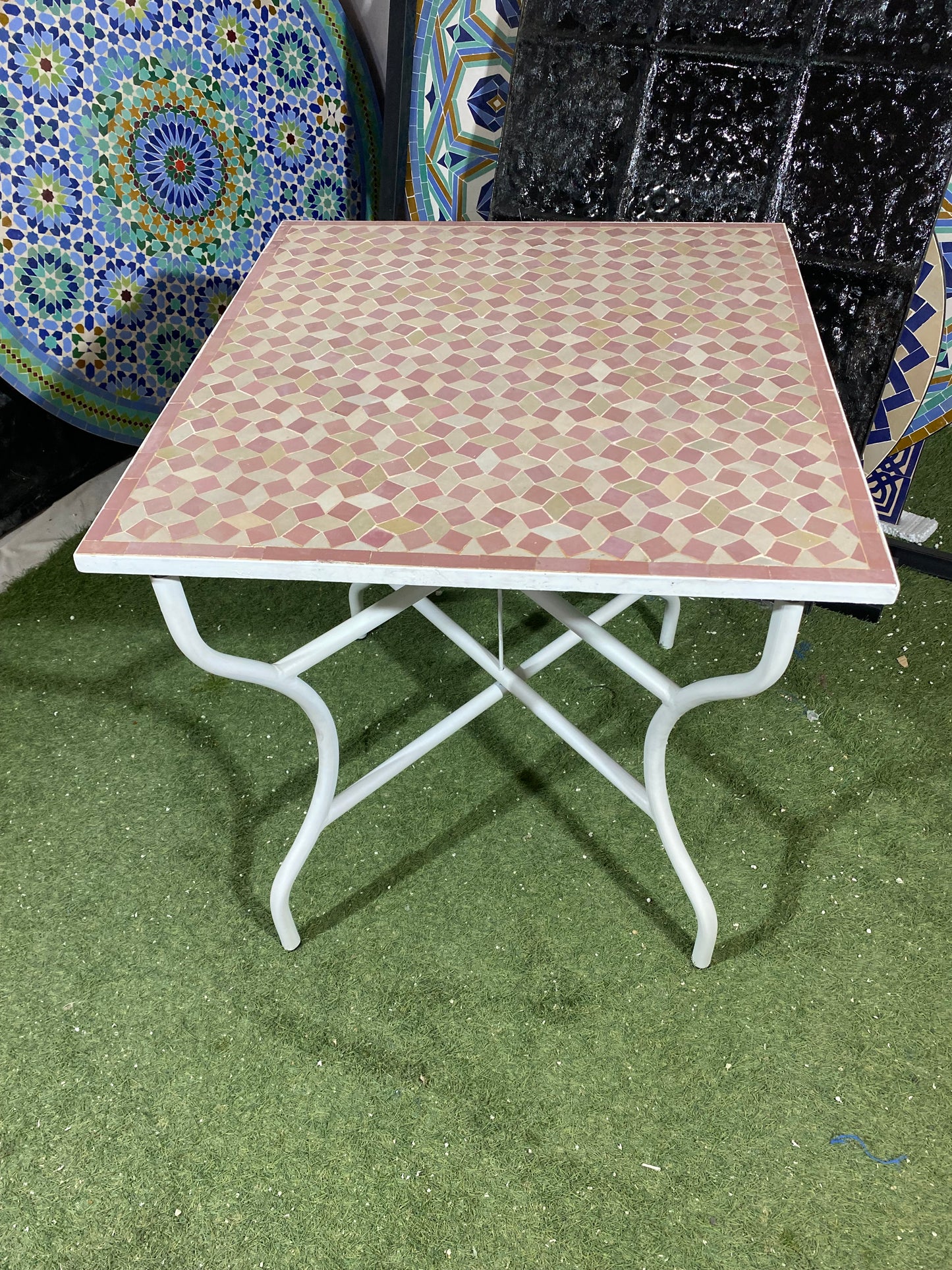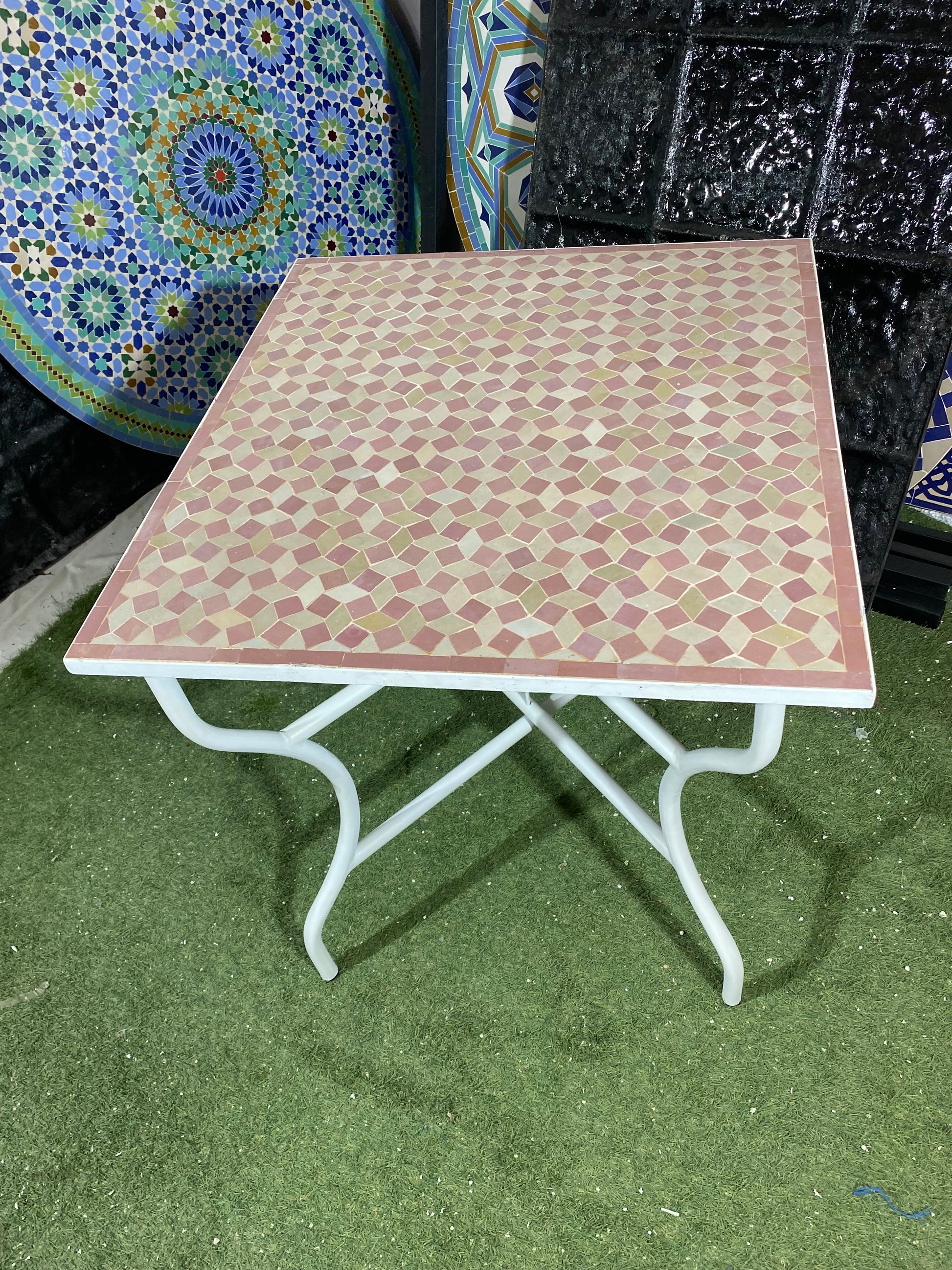 Handmade Moroccan Zellige Mosaic Table – Blush Geometric Illusion