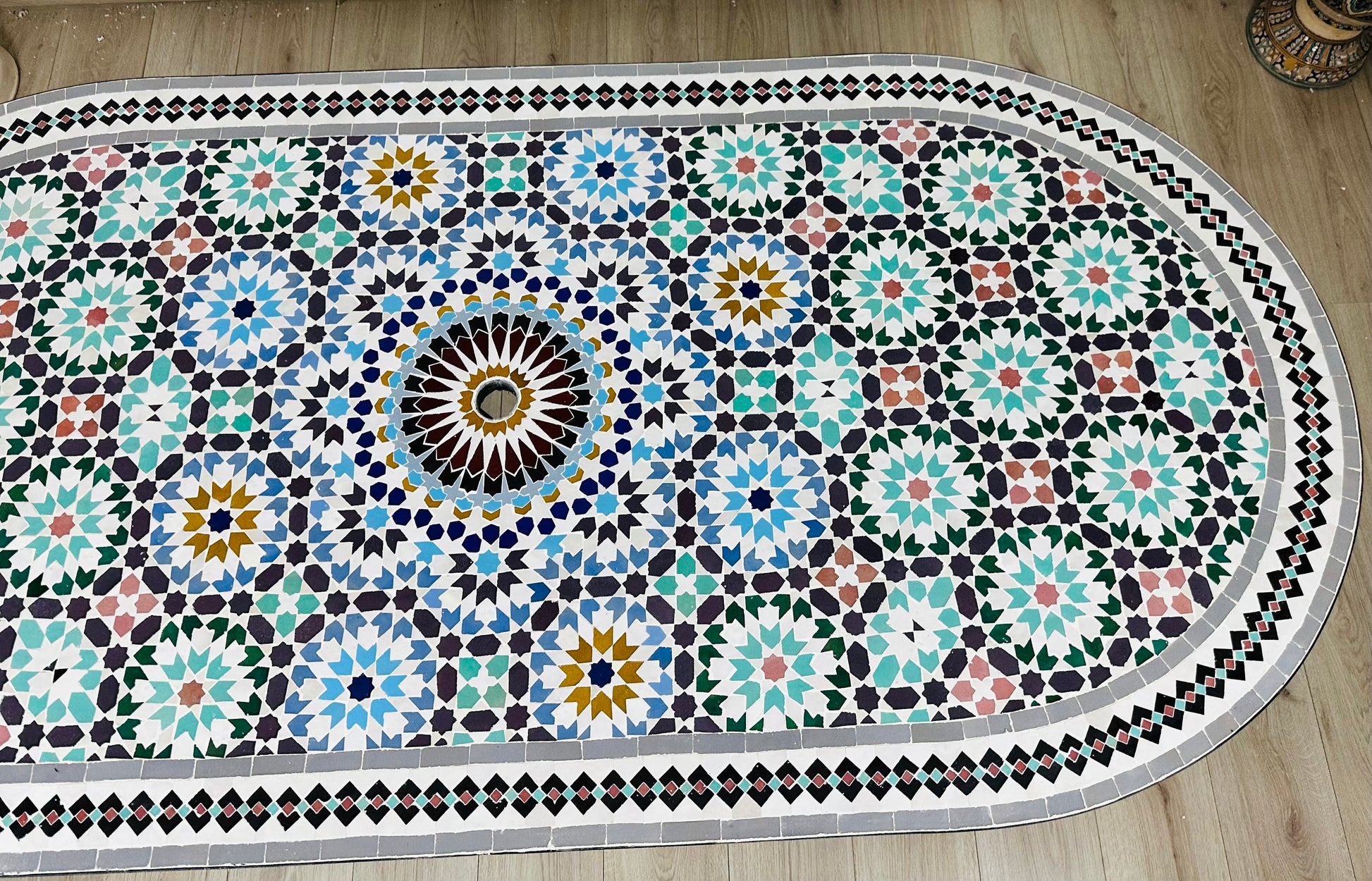 Handmade Moroccan Zellige Mosaic Table with umbrella hole – Classic Elegance & Timeless Craftsmanship
