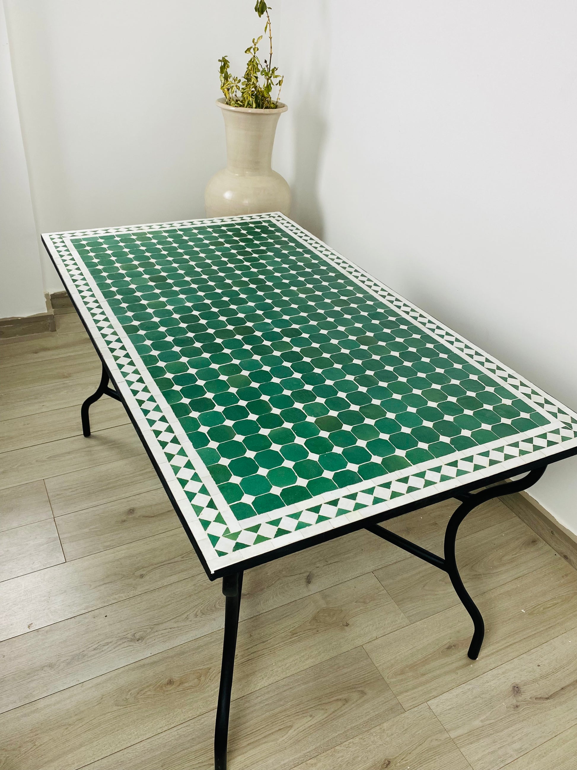 Handmade Moroccan Zellige Mosaic Table – Classic Green & White Harmony