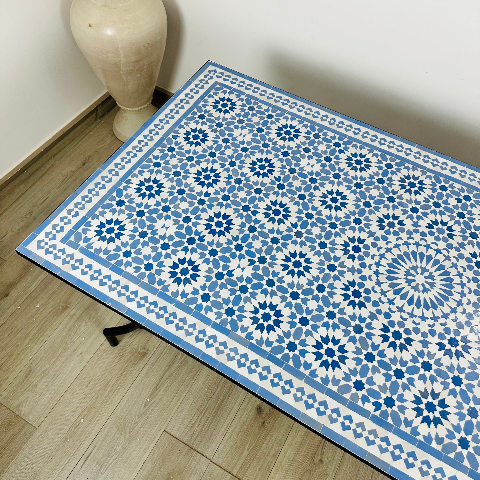 Handmade Moroccan Zellige Mosaic Table – Timeless Blue & White Elegance