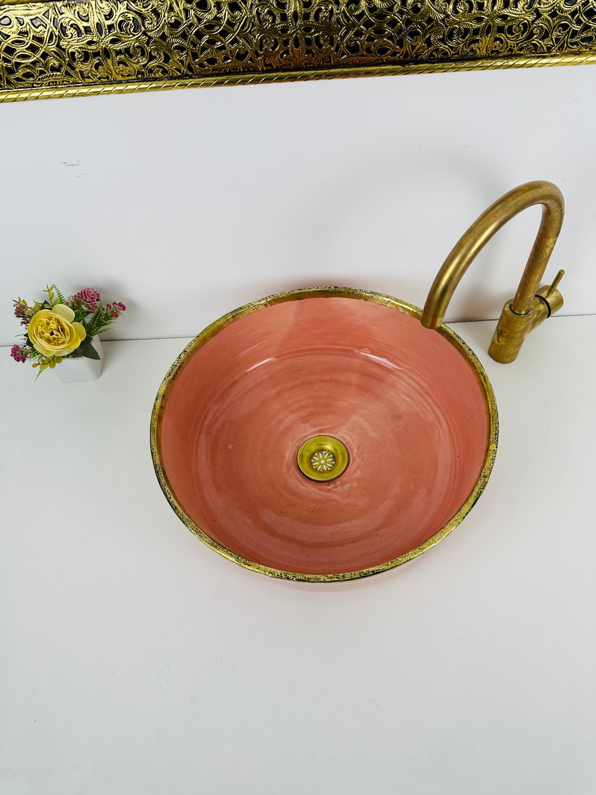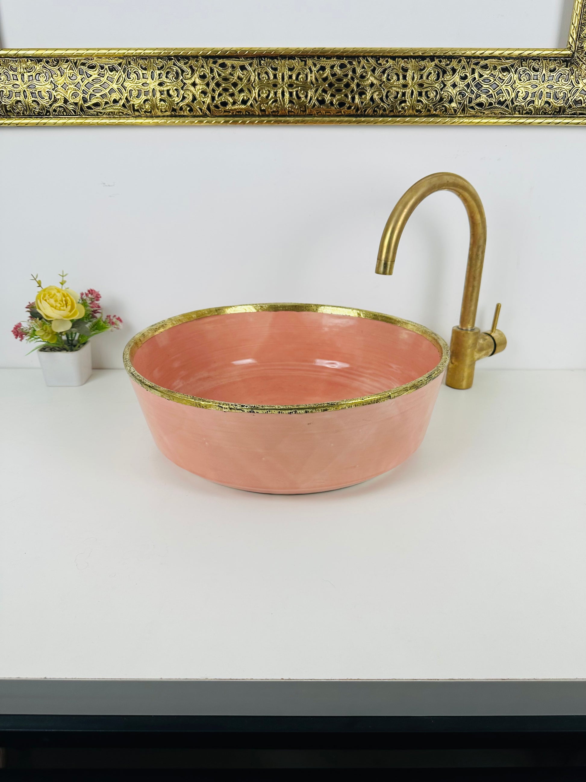 light orange vessel 100% handmade/hand painted - brass rimmed basin