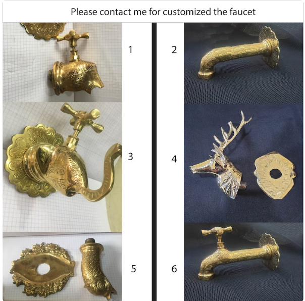 ✔ Hand-Sculpted Brass Faucet: Elegant gold-tone brass spout with intricate detailing